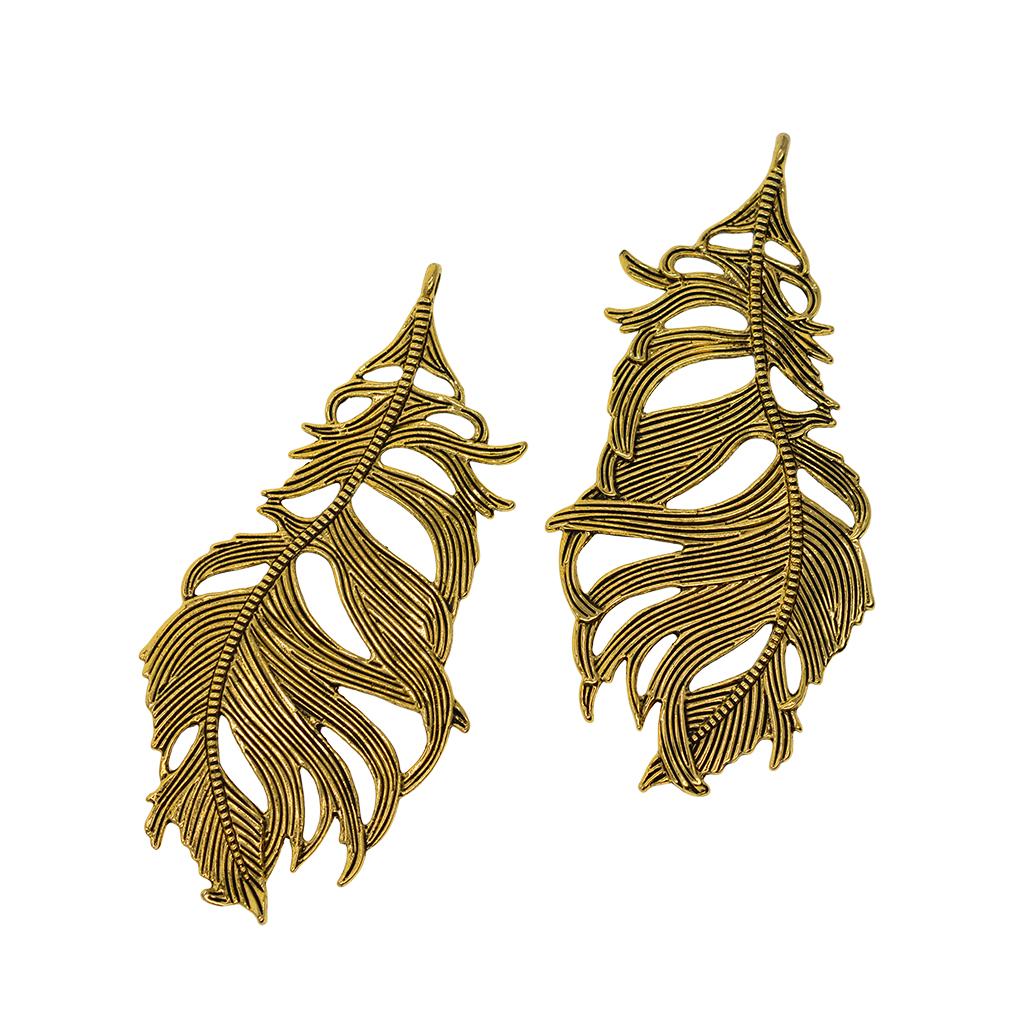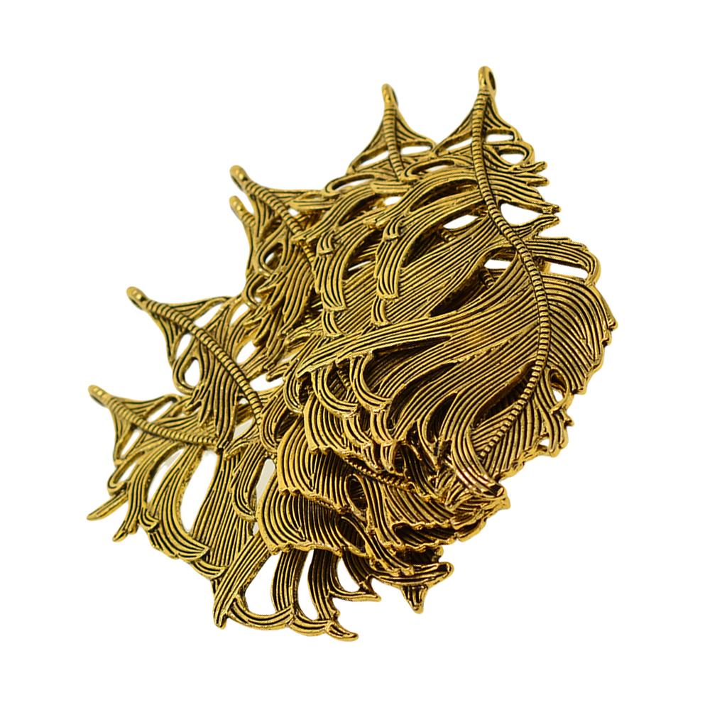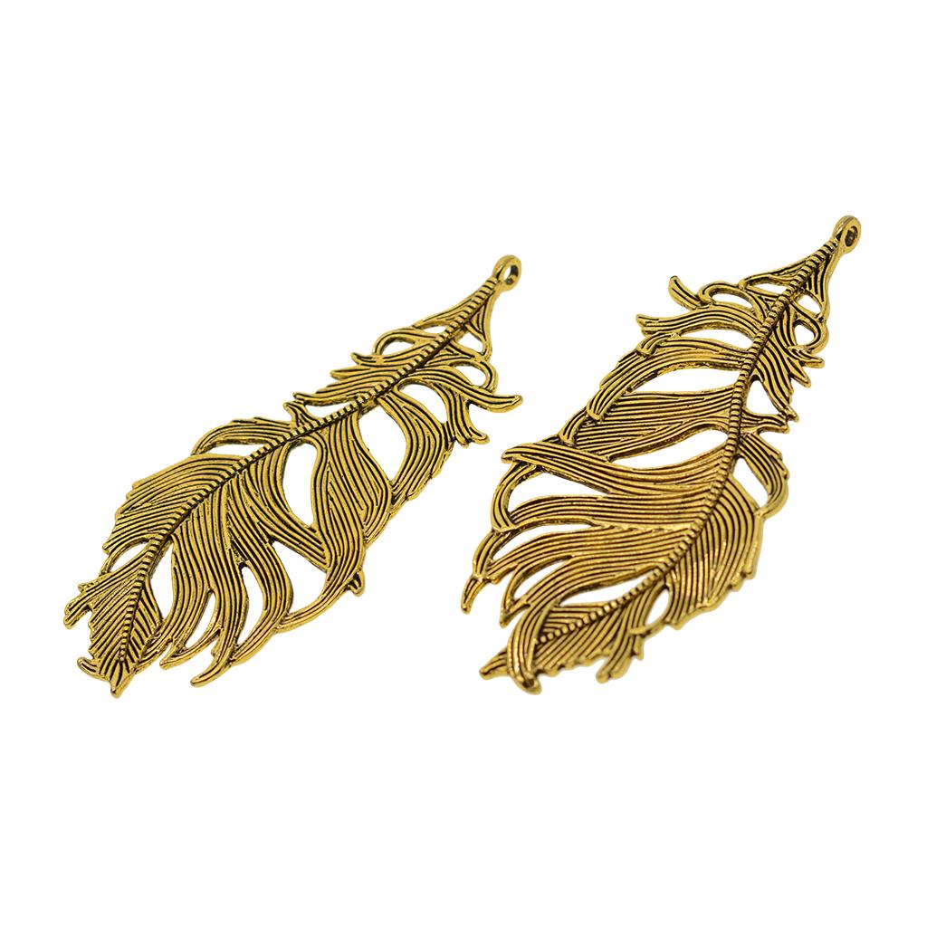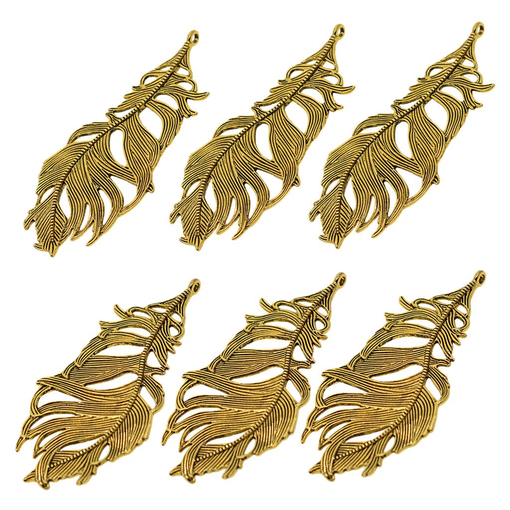6 Pieces Antique Gold Large Feather Charms Pendants For DIY Jewelry Findings