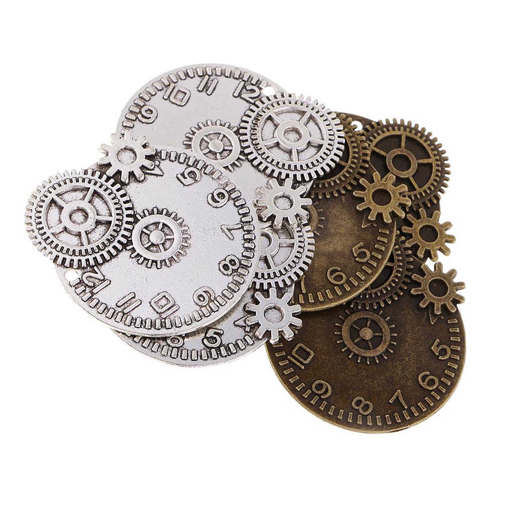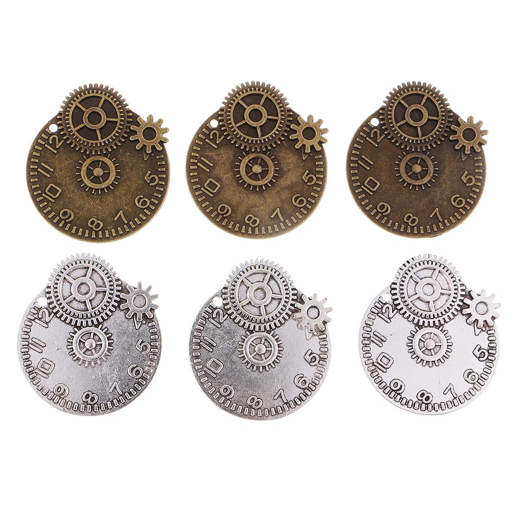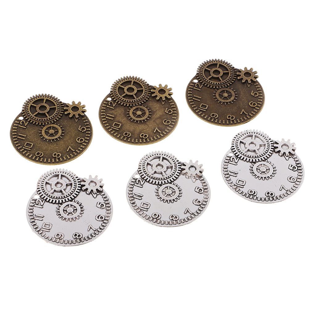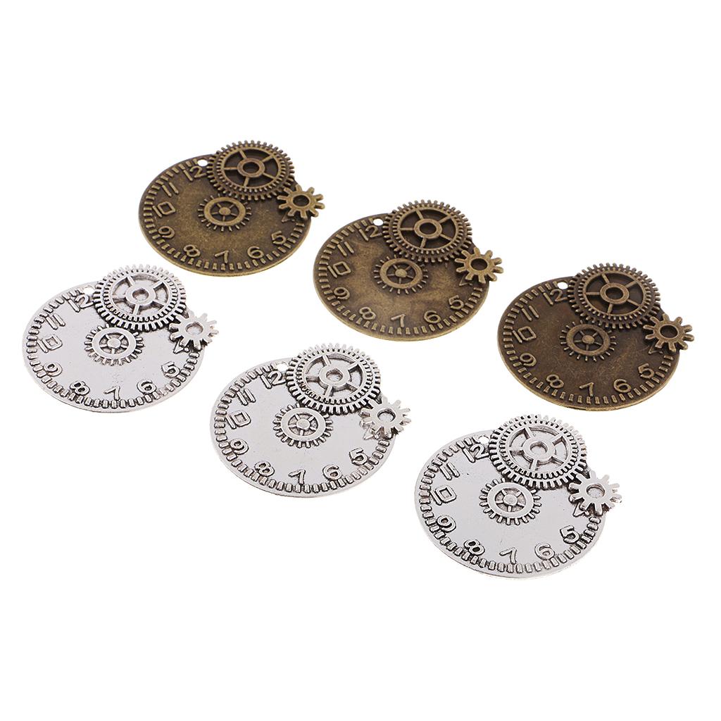 6 Pieces Clock Gears Charms Pendants