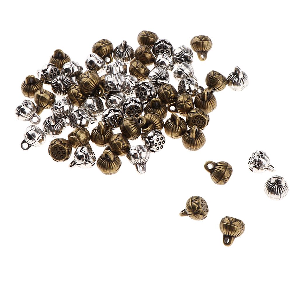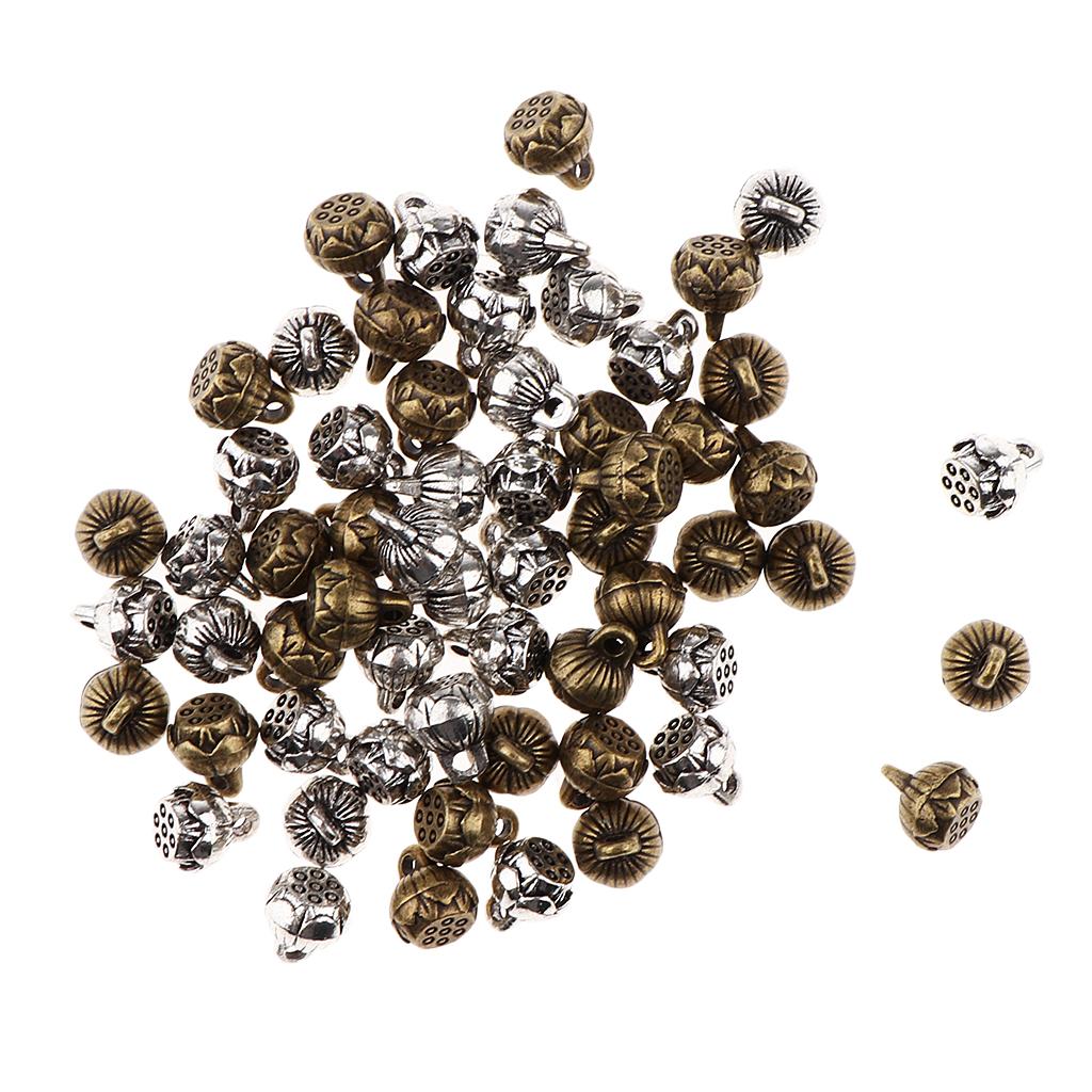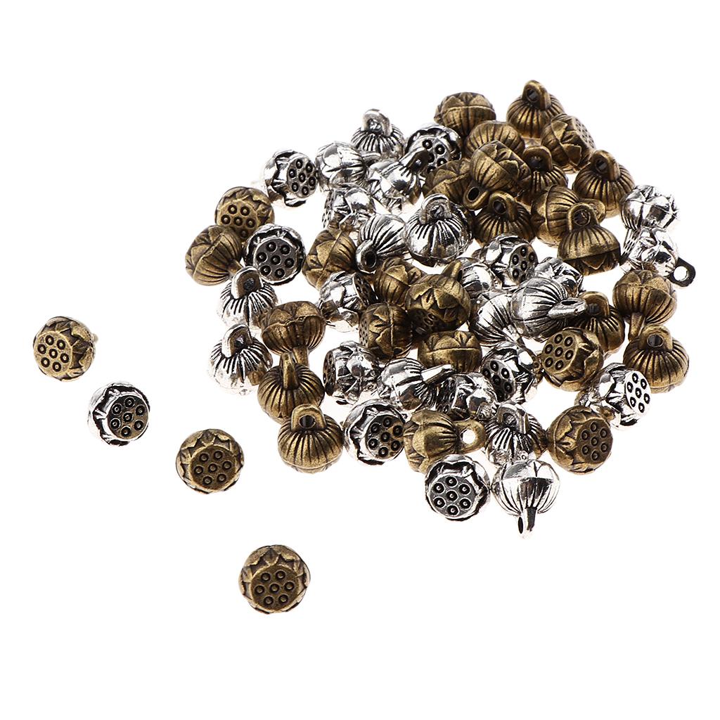 Antique silver and bronze Yoga reflection lotus seedpod charms pendants.