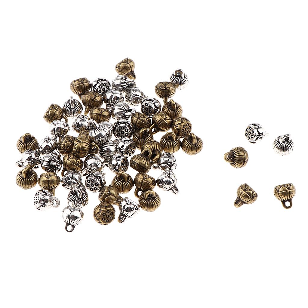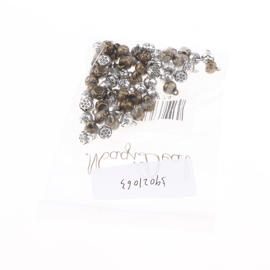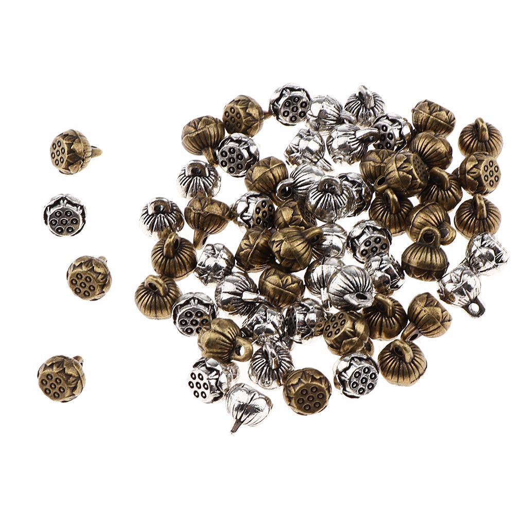 Antique silver and bronze Yoga reflection lotus seedpod charms pendants.