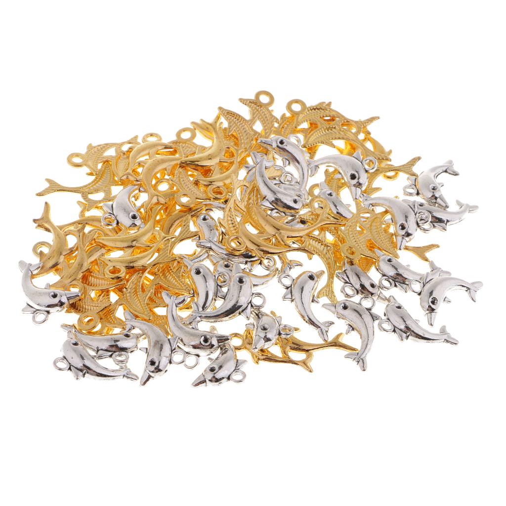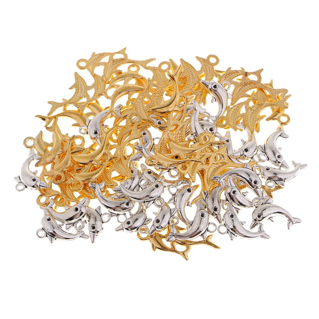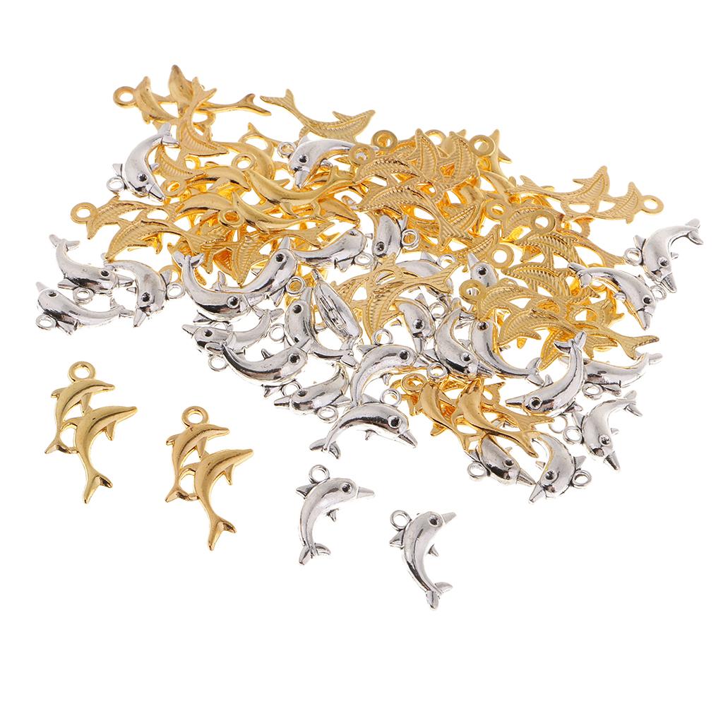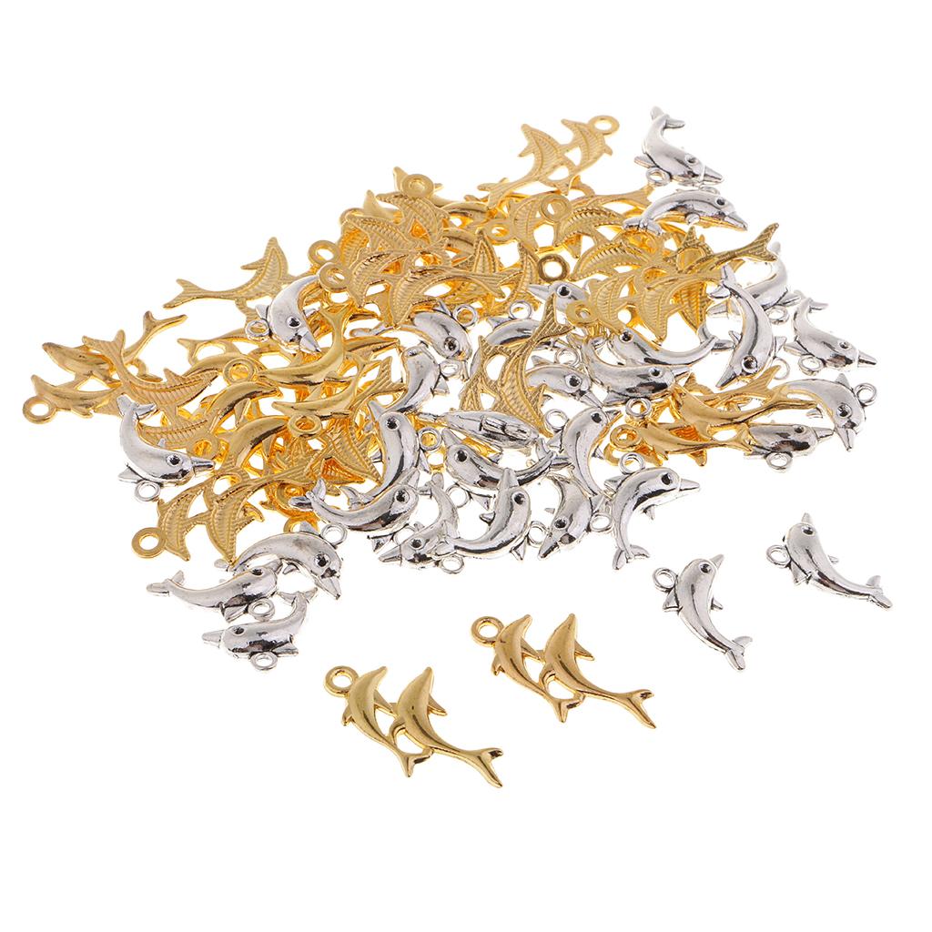 60 Pieces (Gold & Silver) Alloy Dolphin Charms Pendant for Jewelry Making Accessories Charming Unique