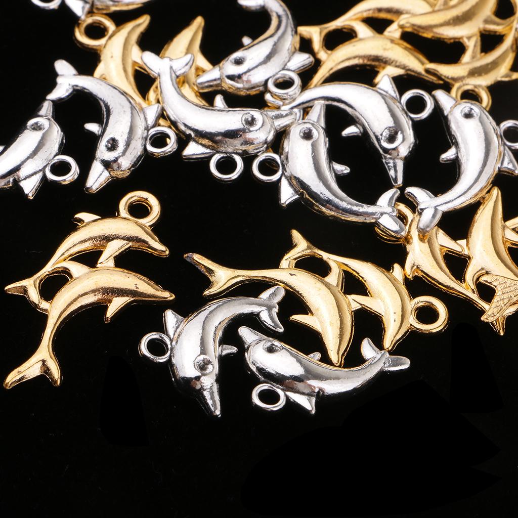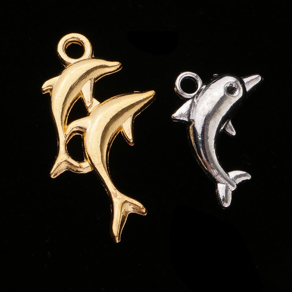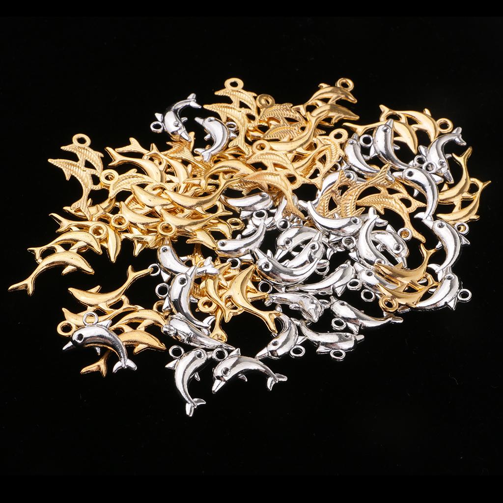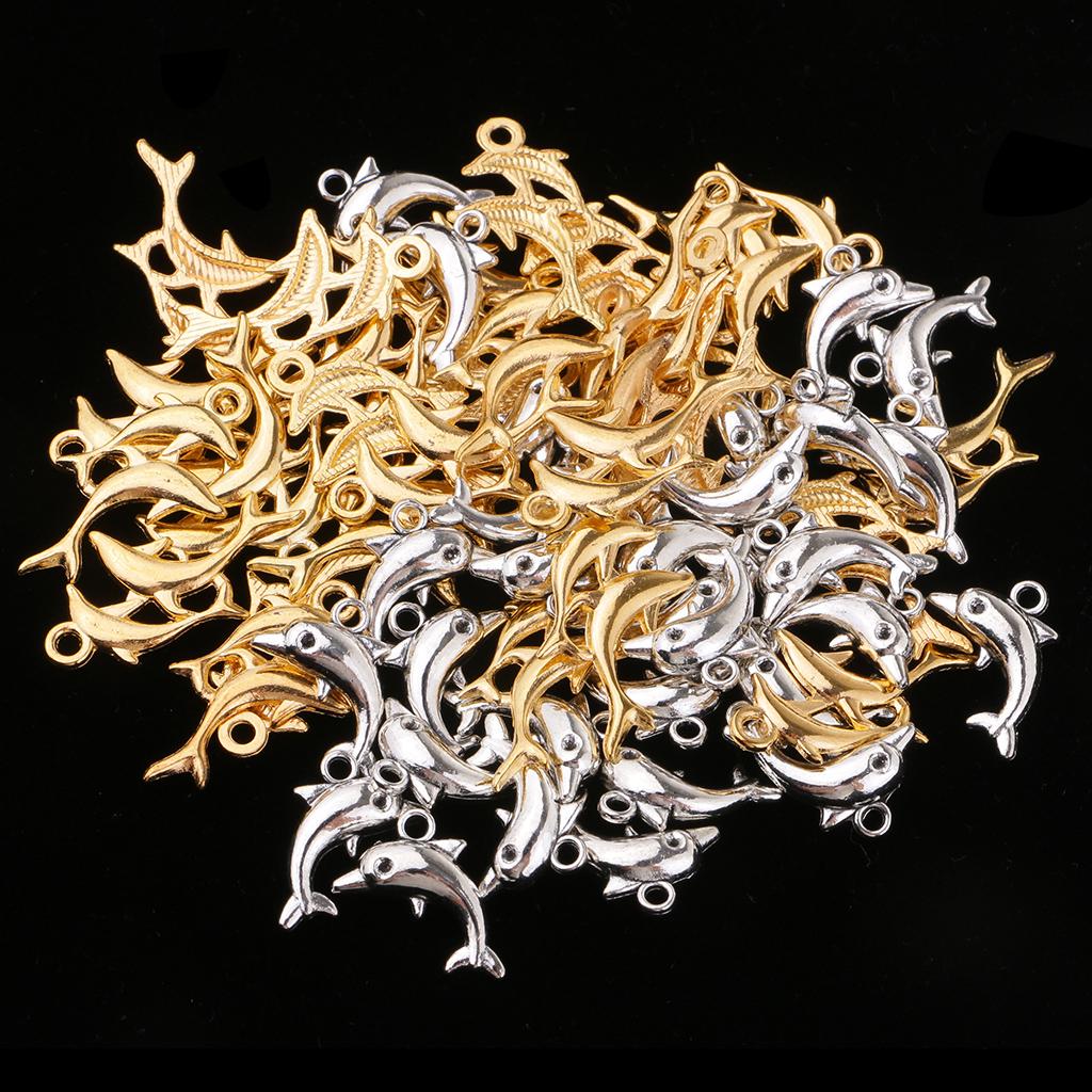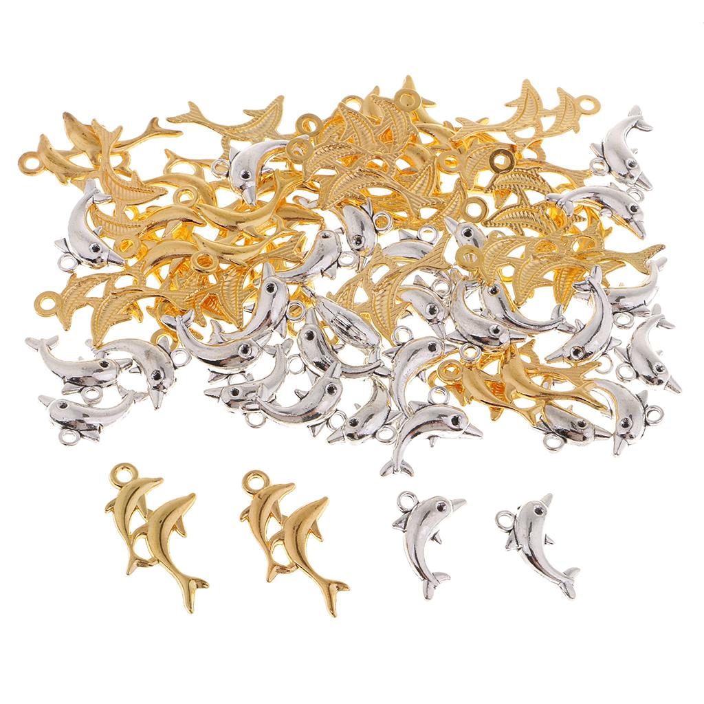 60 Pieces (Gold & Silver) Alloy Dolphin Charms Pendant for Jewelry Making Accessories Charming Unique