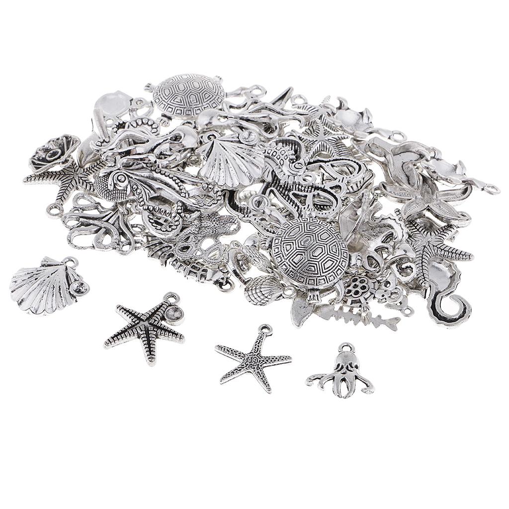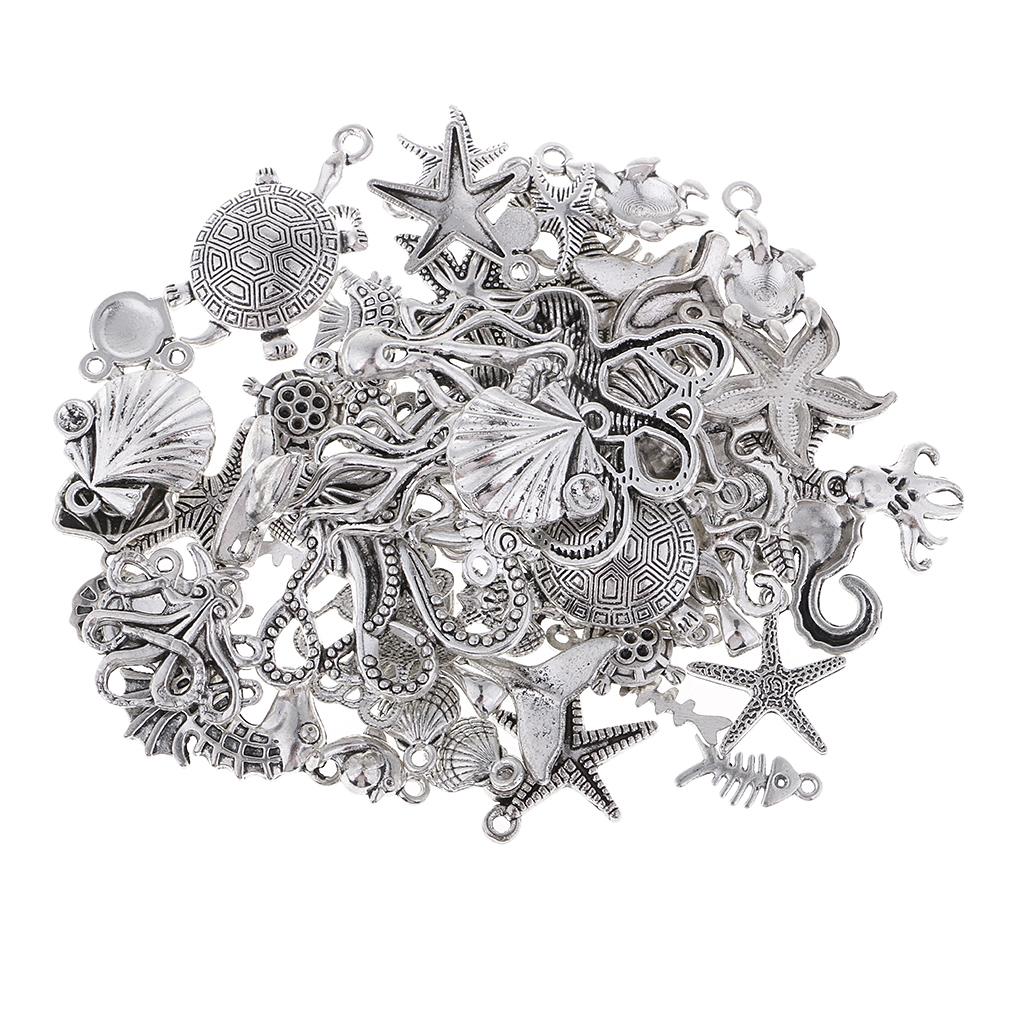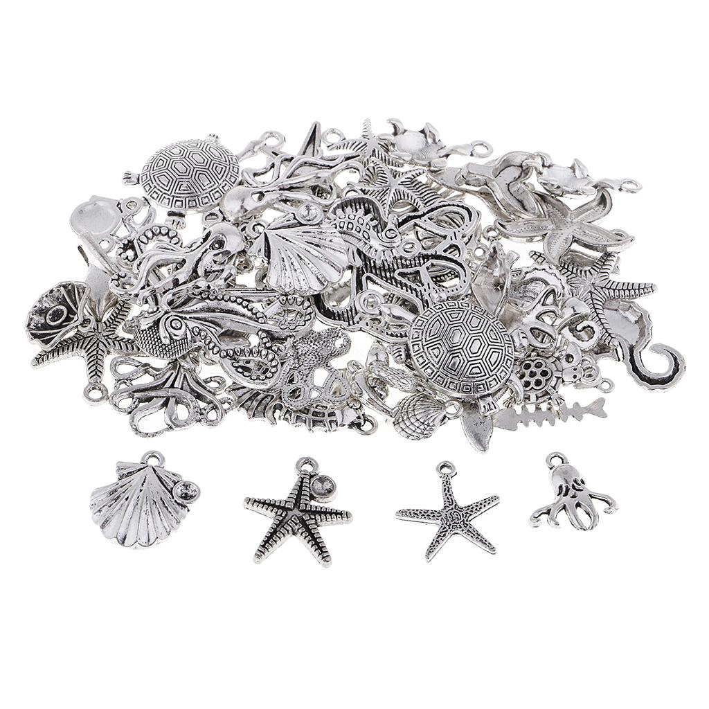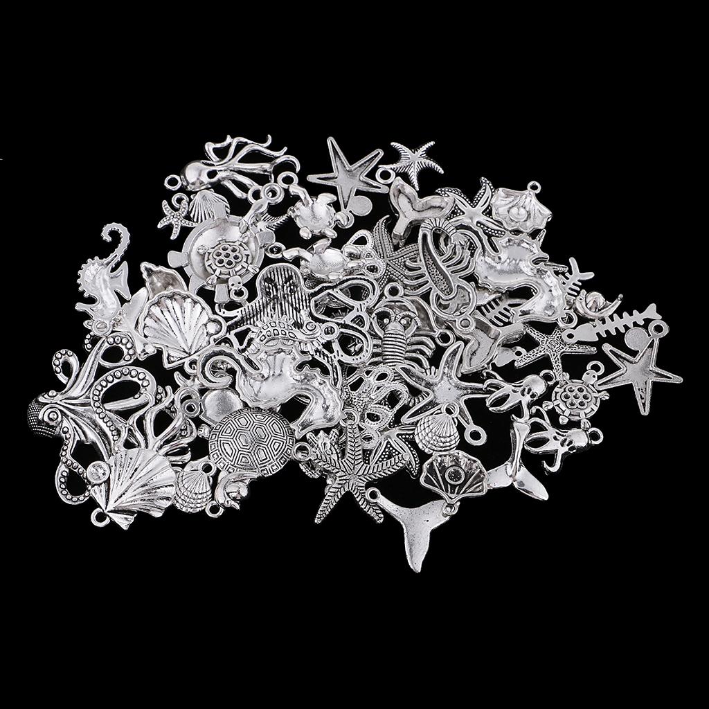 60Pcs Tibetan Silver Alloy Ocean Series Charms Pendants For Jewelry Findings