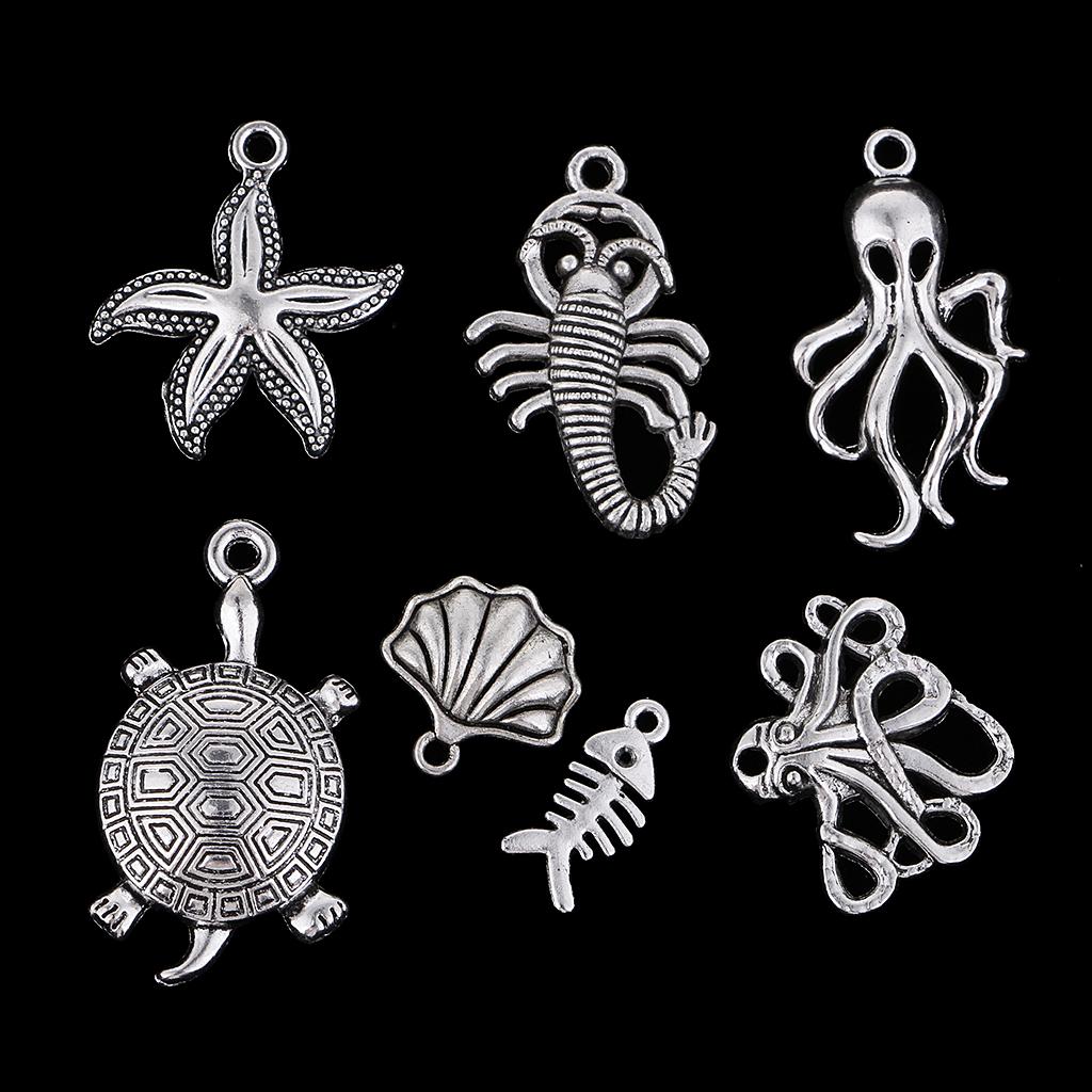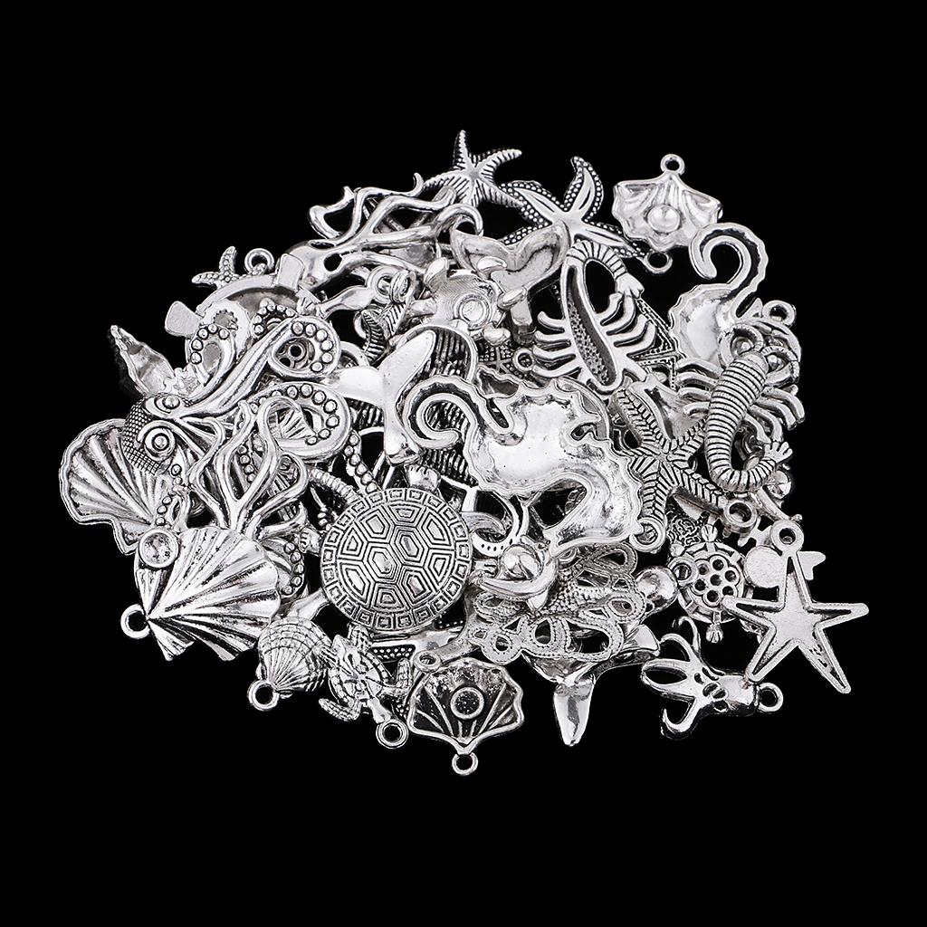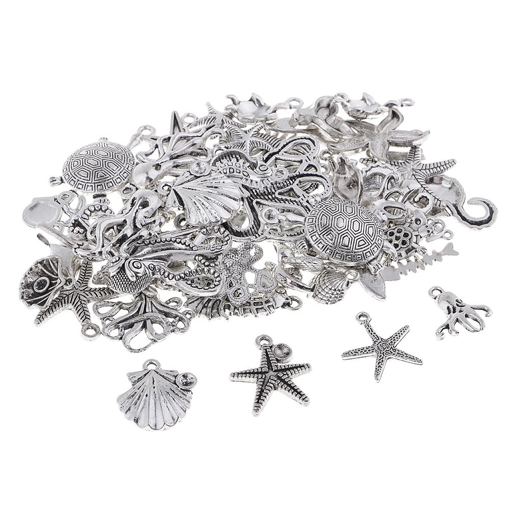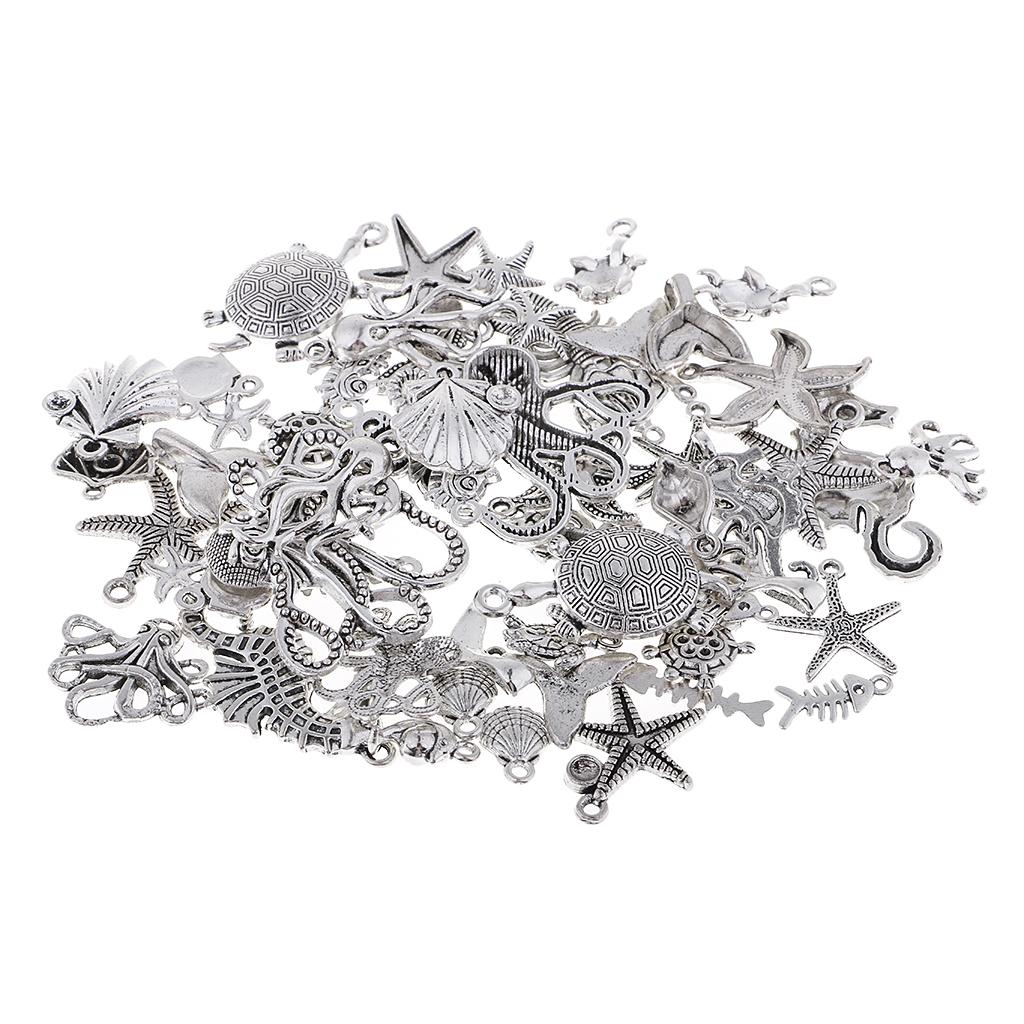 60Pcs Tibetan Silver Alloy Ocean Series Charms Pendants For Jewelry Findings