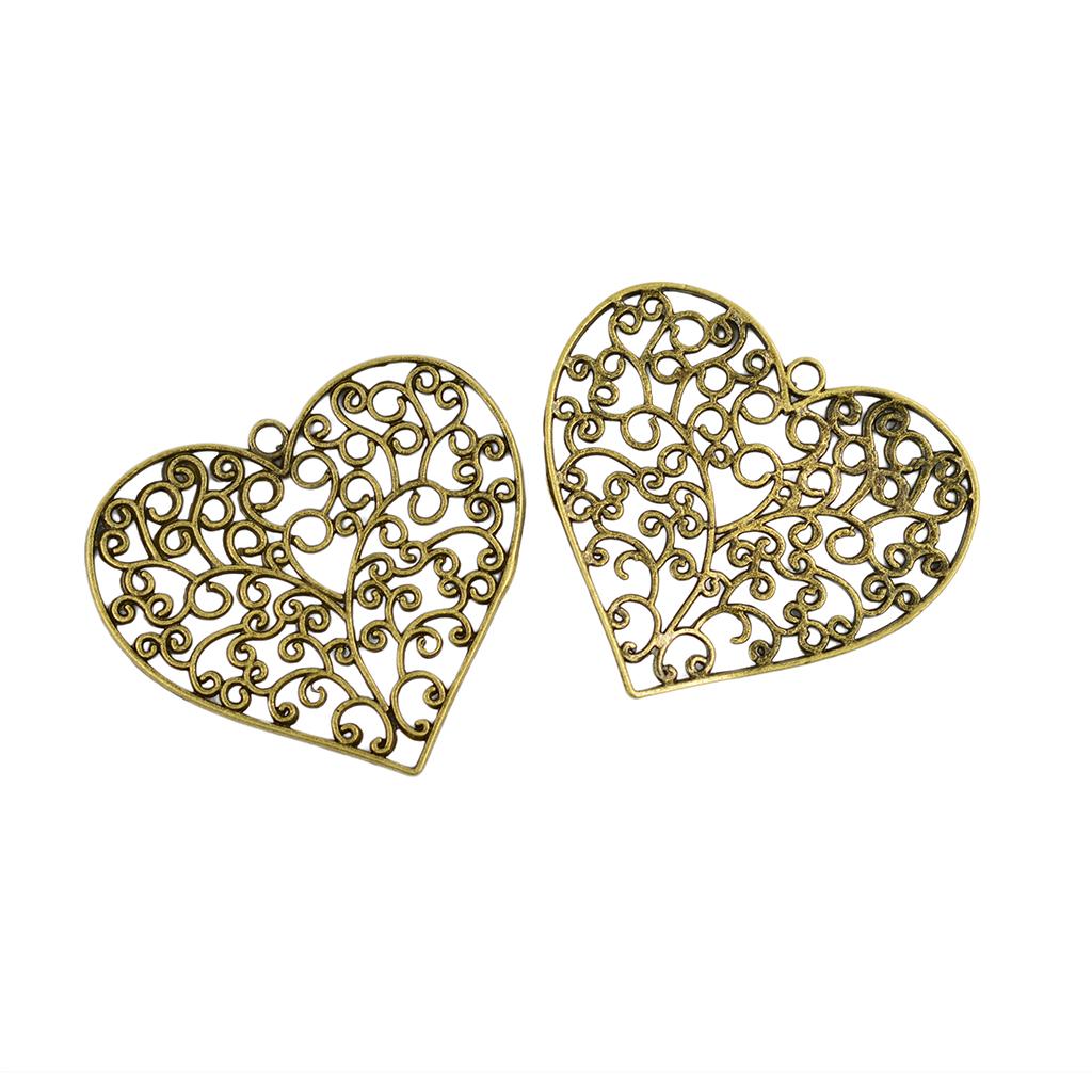 6Pieces Antique Bronze Large Filigree Heart Charms Pendants DIY Necklace