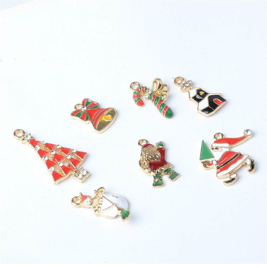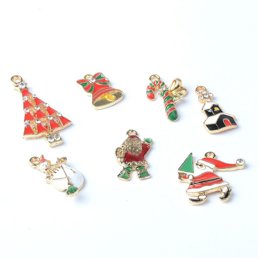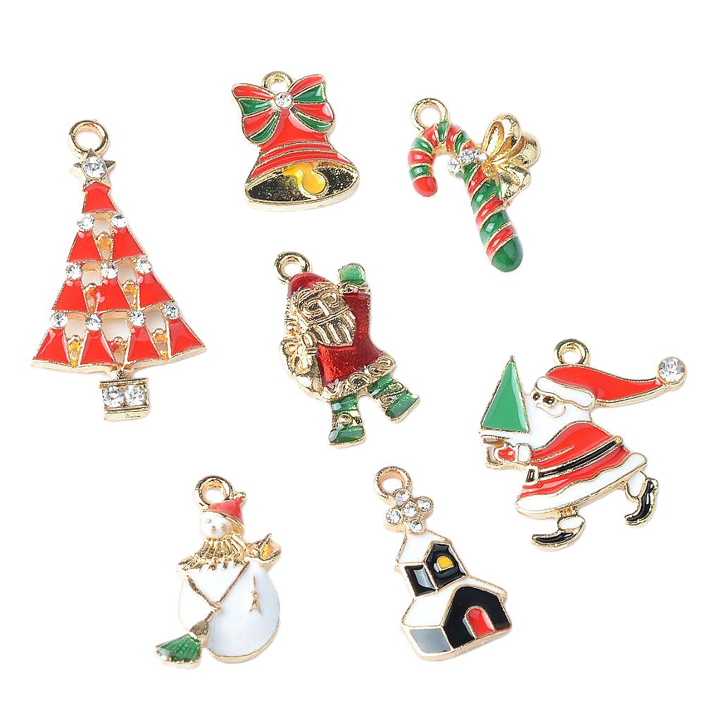 7 Piece Crystal Enamel Christmas Jewelry Making Charms Pendants Findings for DIY Phone Hanging Decoration XMAS Ornament