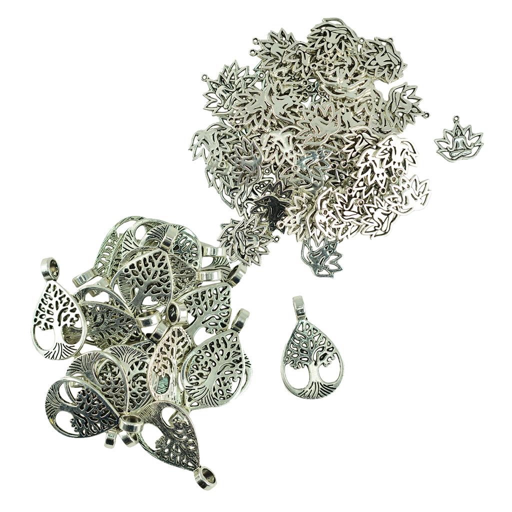 70 Pieces Filigree Yoga Hollow Lotus Flower & Tree of Life Charms Loose Bead