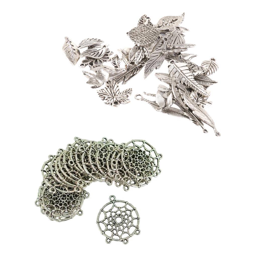 This Item Include 50 Pieces Leaf Charms And 20 Pieces Dream Cather shaped charm pendant connector