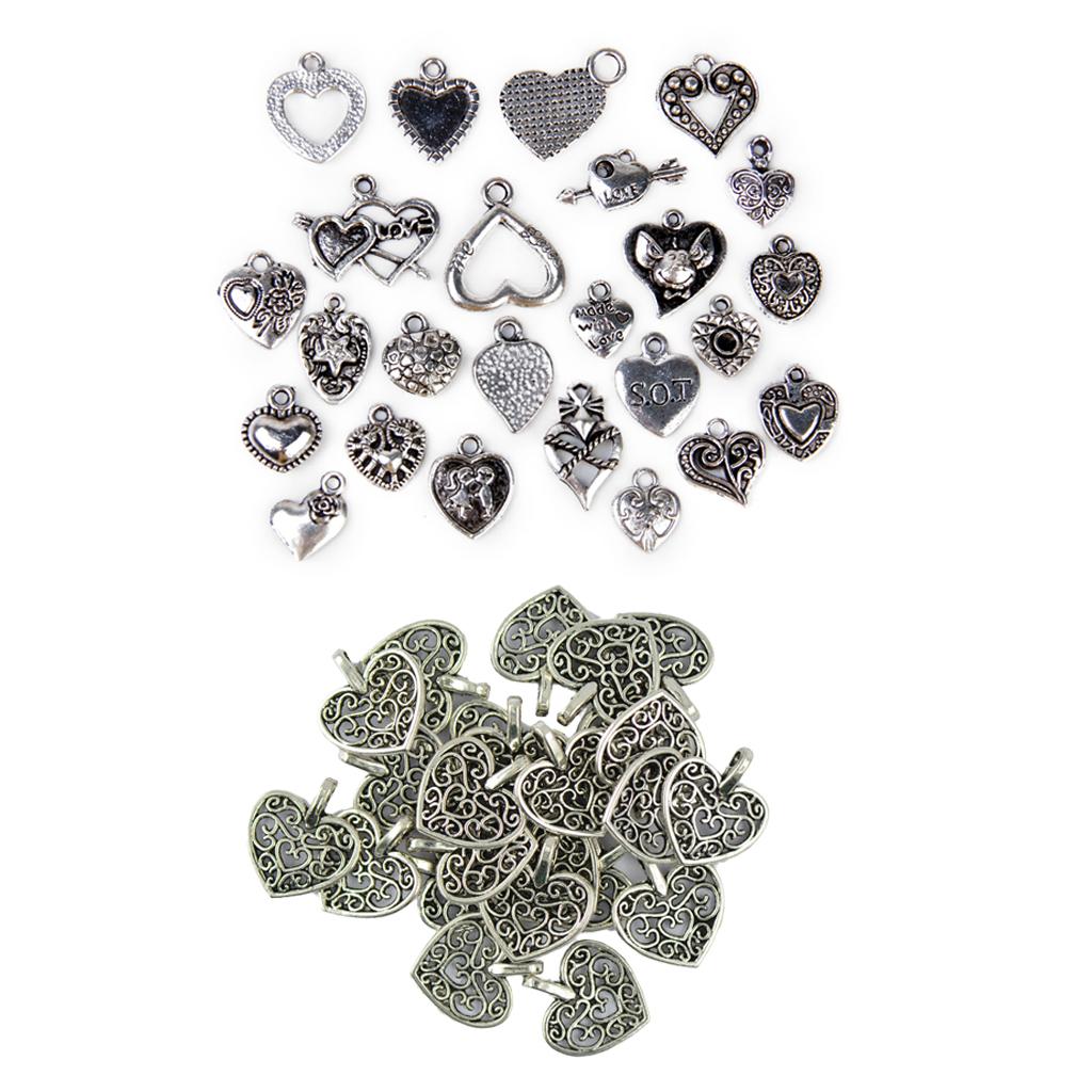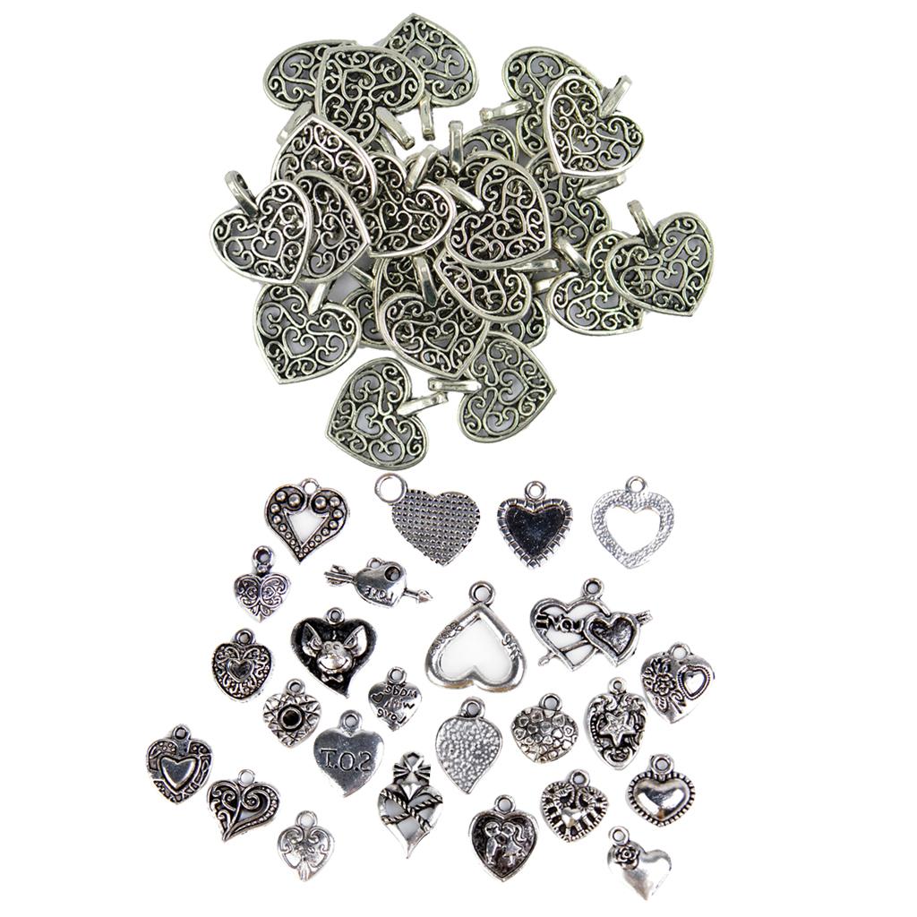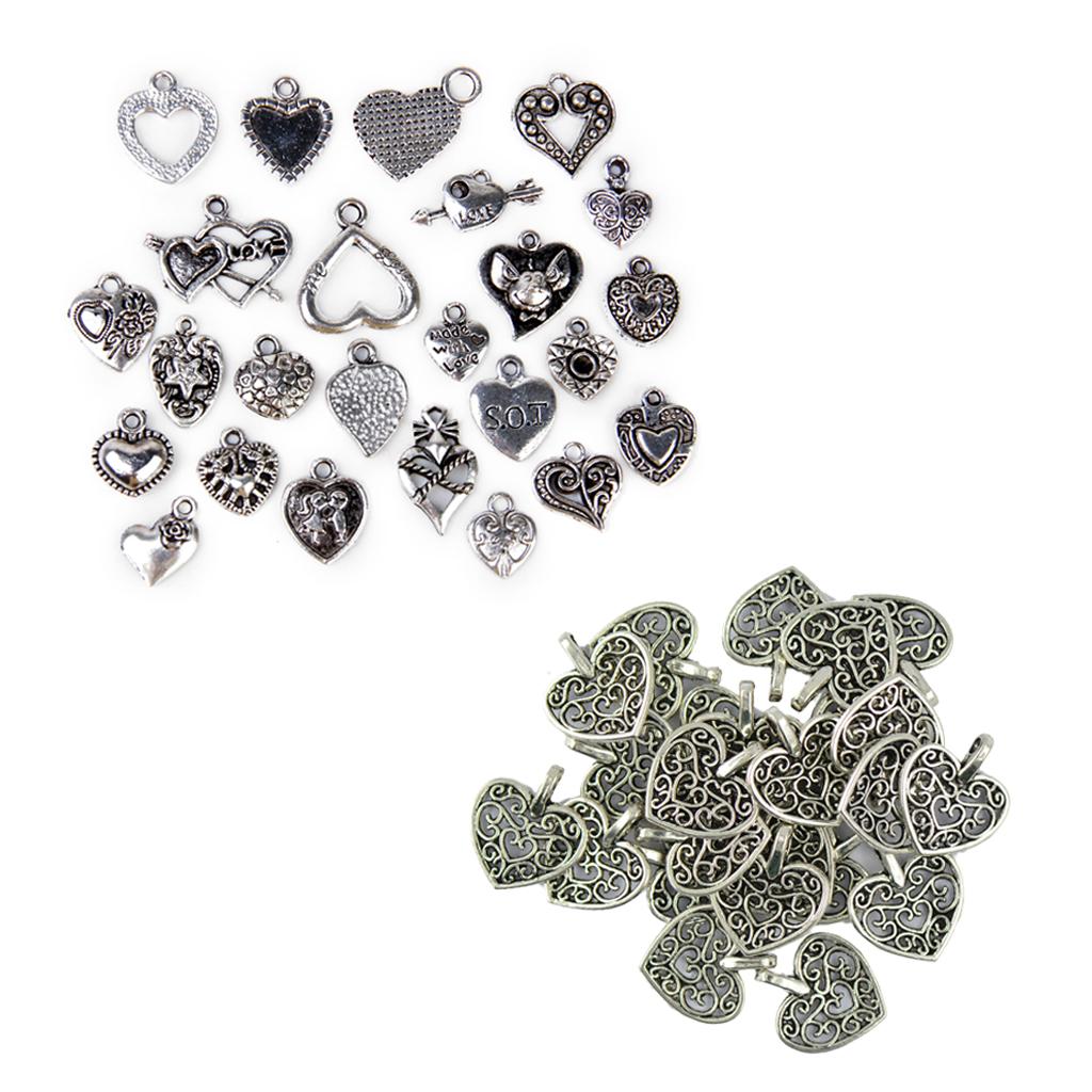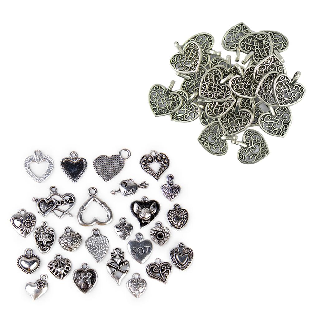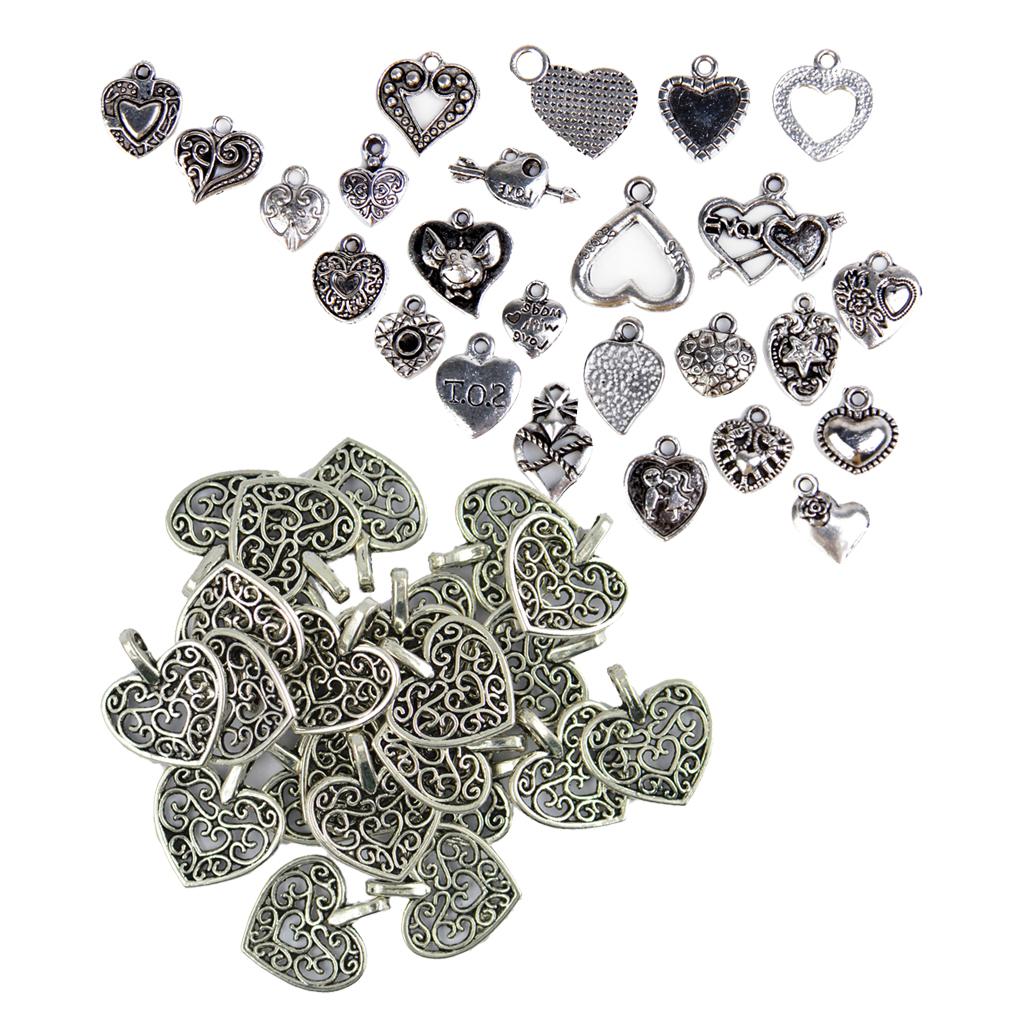 This Item Include 50 Pieces Filigree Heart Charms Pendants and 25 Pieces Various Heart Shapes Charms