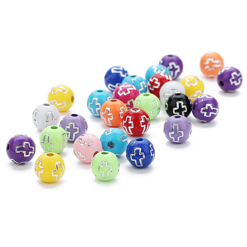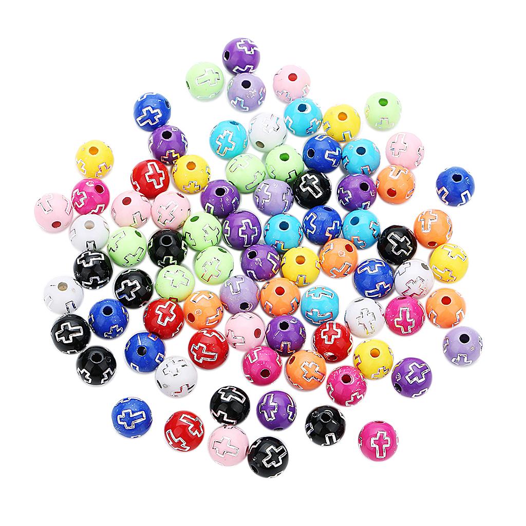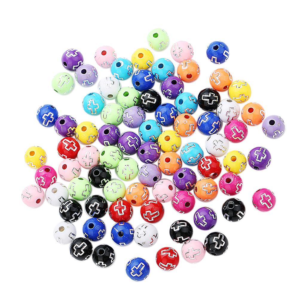 100 Pieces 8 mm Cross Pattern Acrylic Round Beads