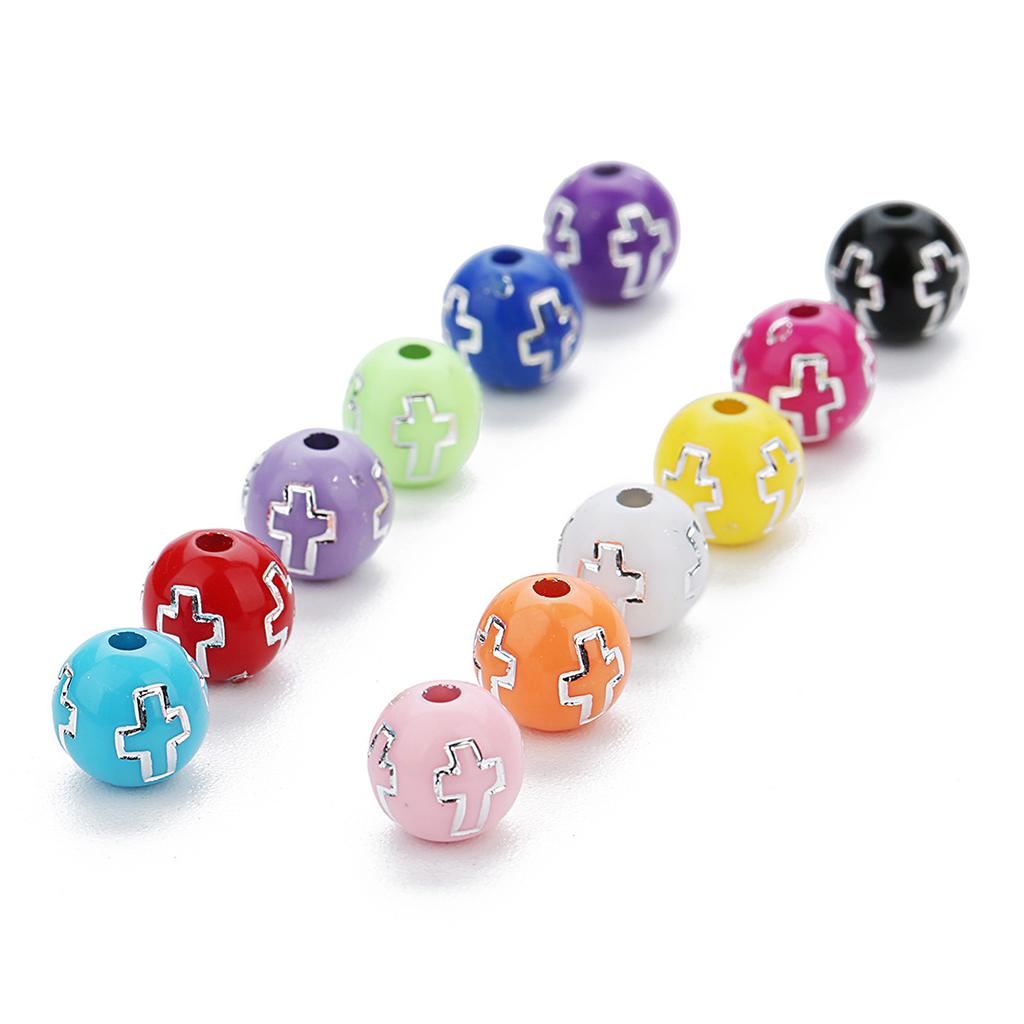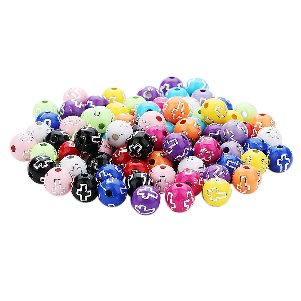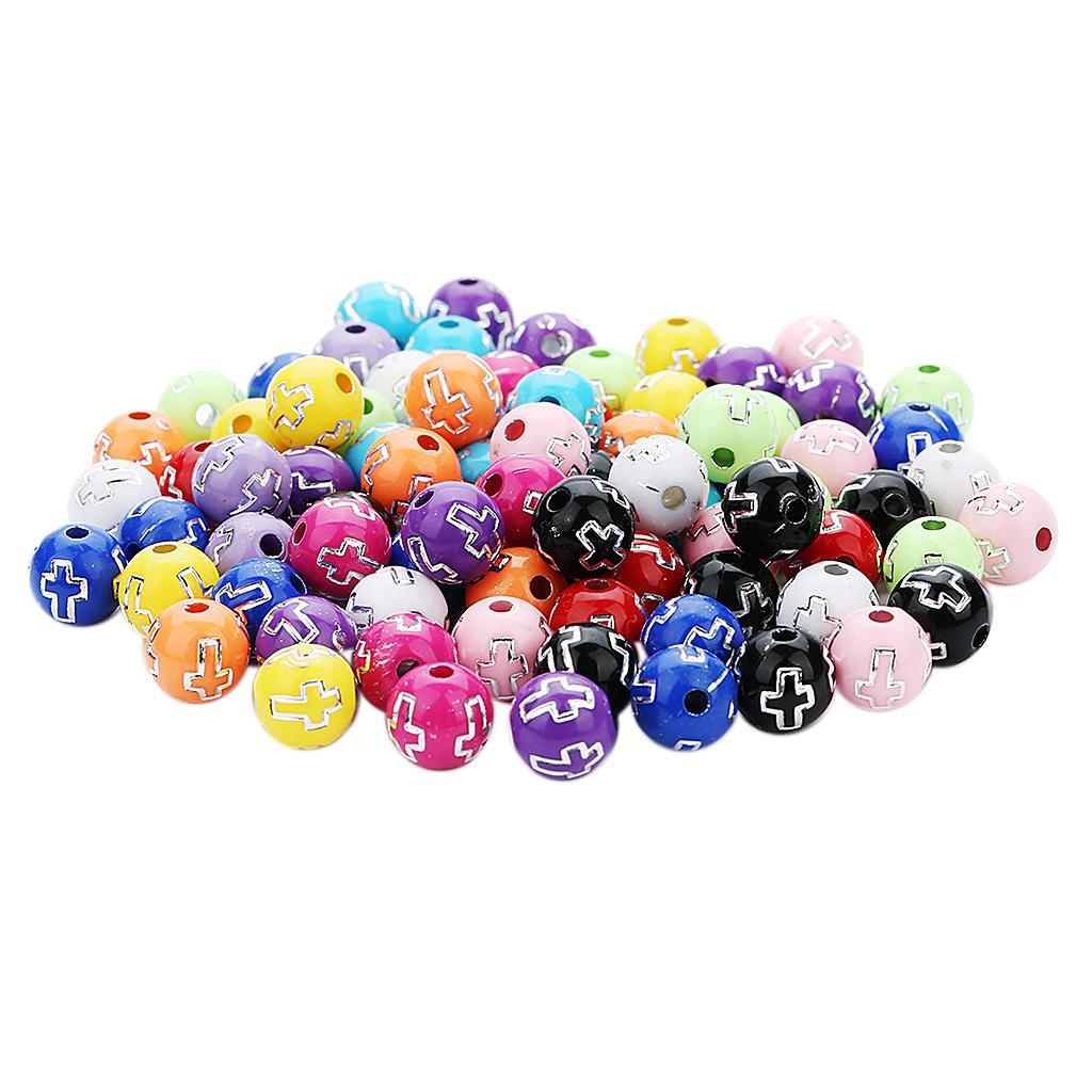 100 Pieces 8 mm Cross Pattern Acrylic Round Beads