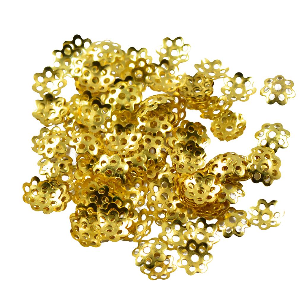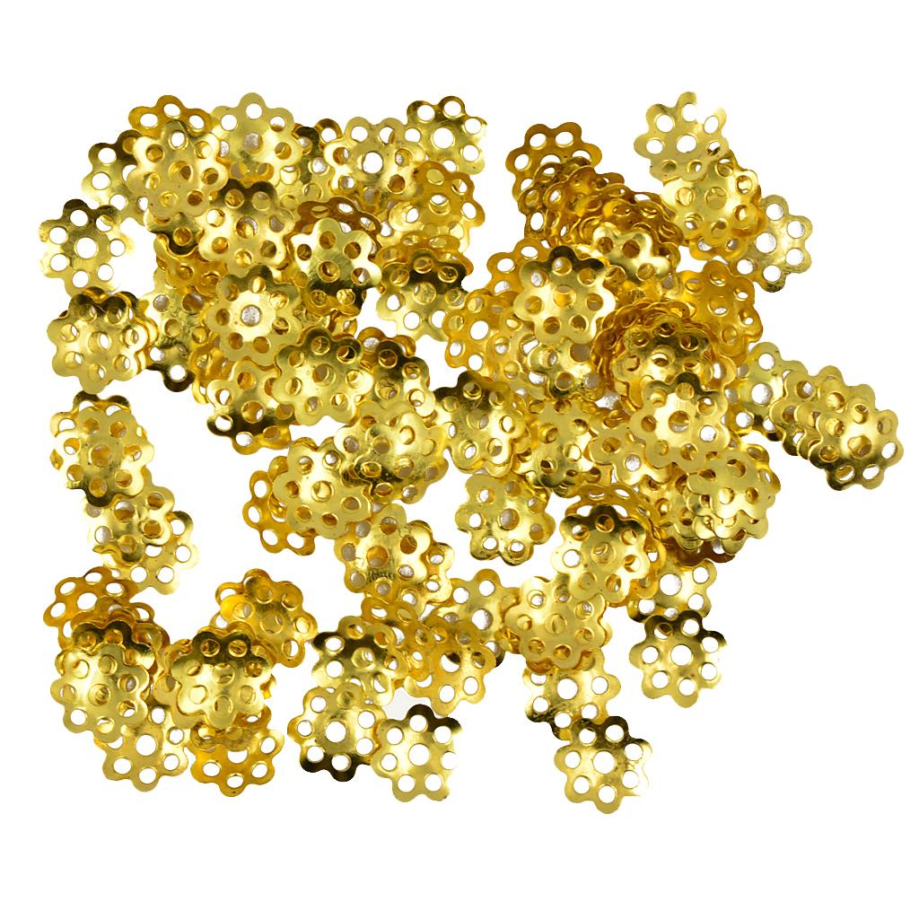 • 100 pcs Gold Plated Metal Flower Bead Caps