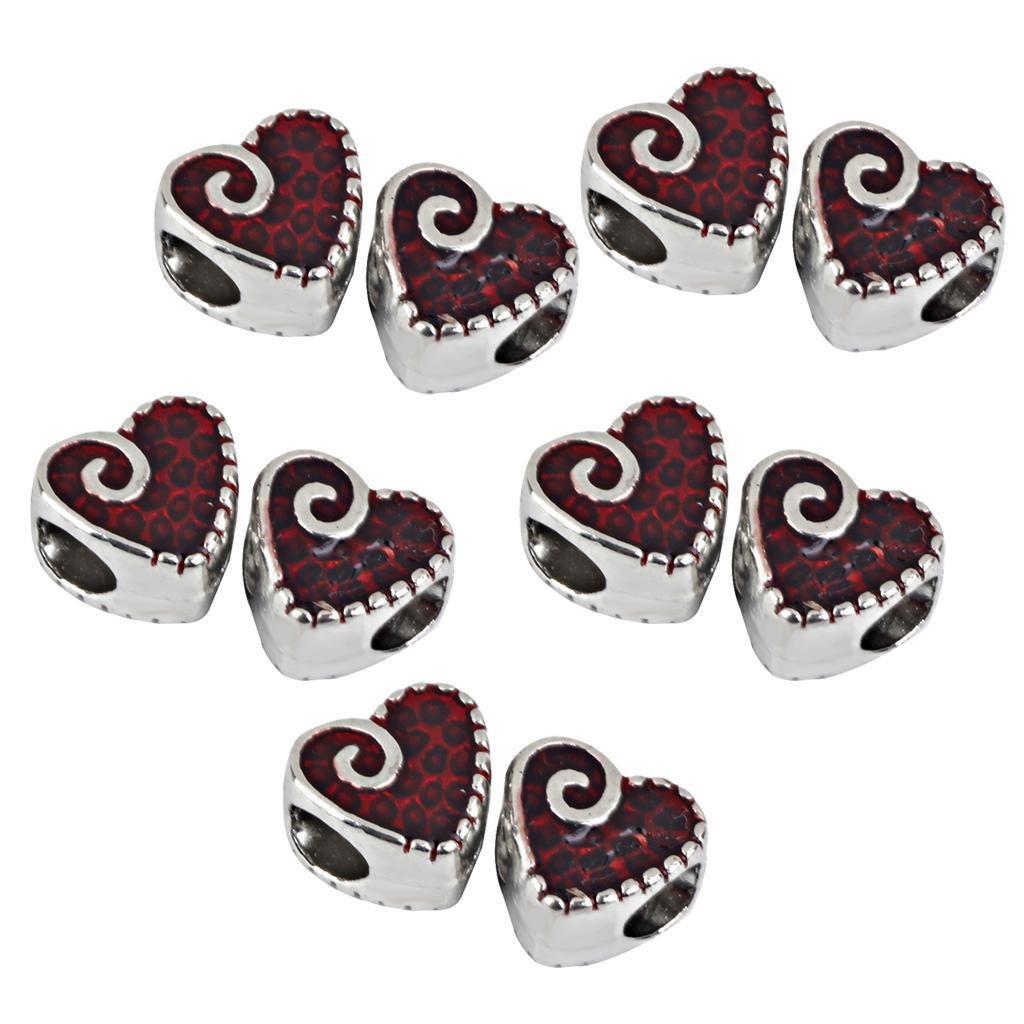 Alloy Heart Pattern Spacer Beads Jewelry Making Pendants Charms 10Pcs Red