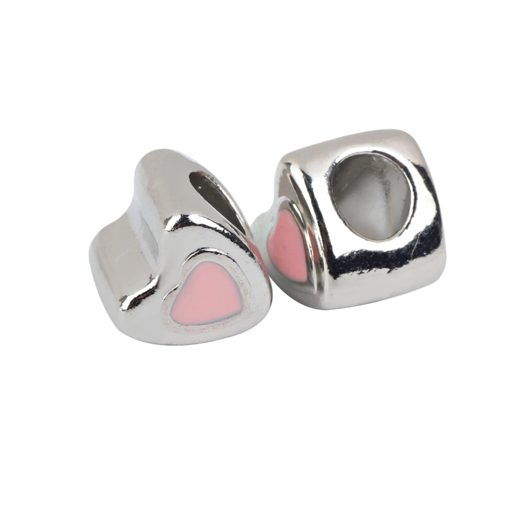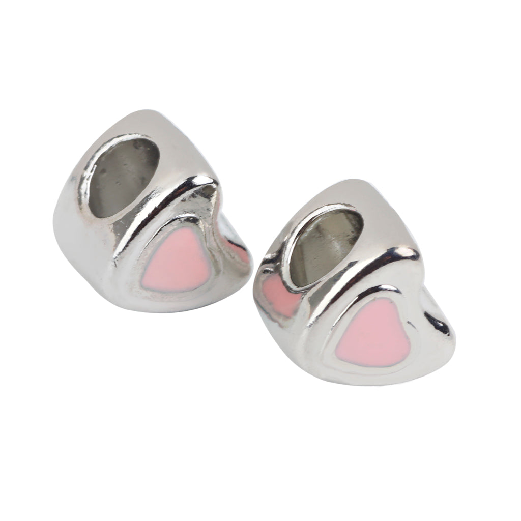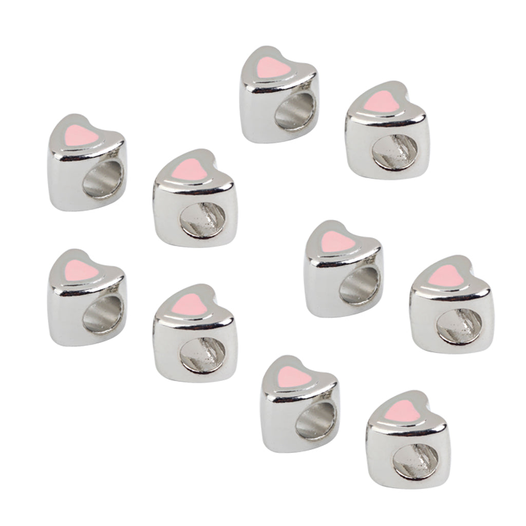 Alloy Heart Spacer Beads Jewelry Making Pendant Charms Findings 10Pcs Pink