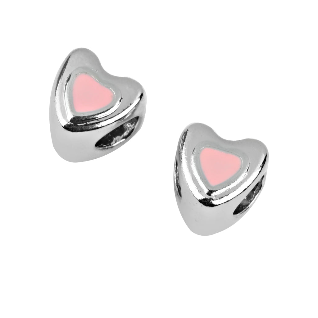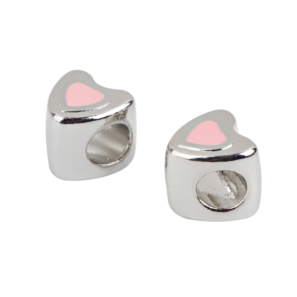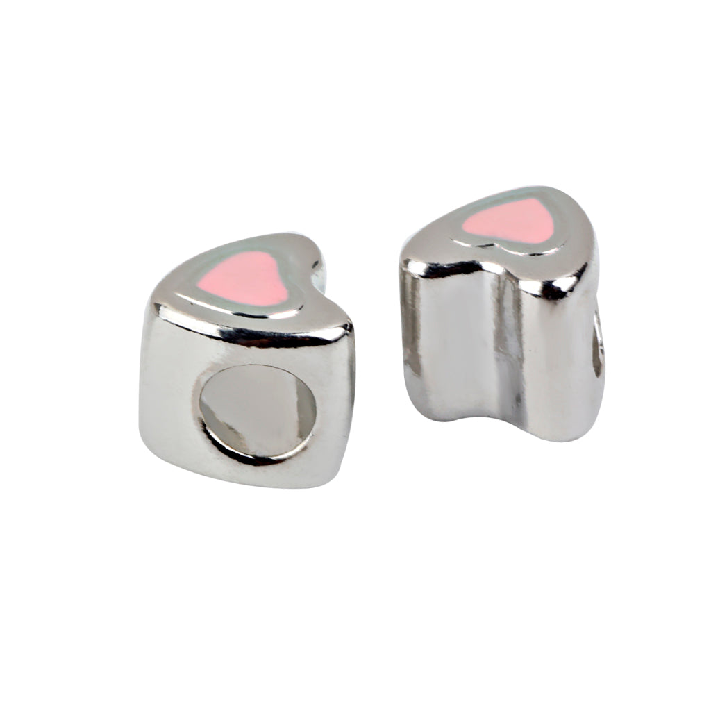 Alloy Heart Spacer Beads Jewelry Making Pendant Charms Findings 10Pcs Pink