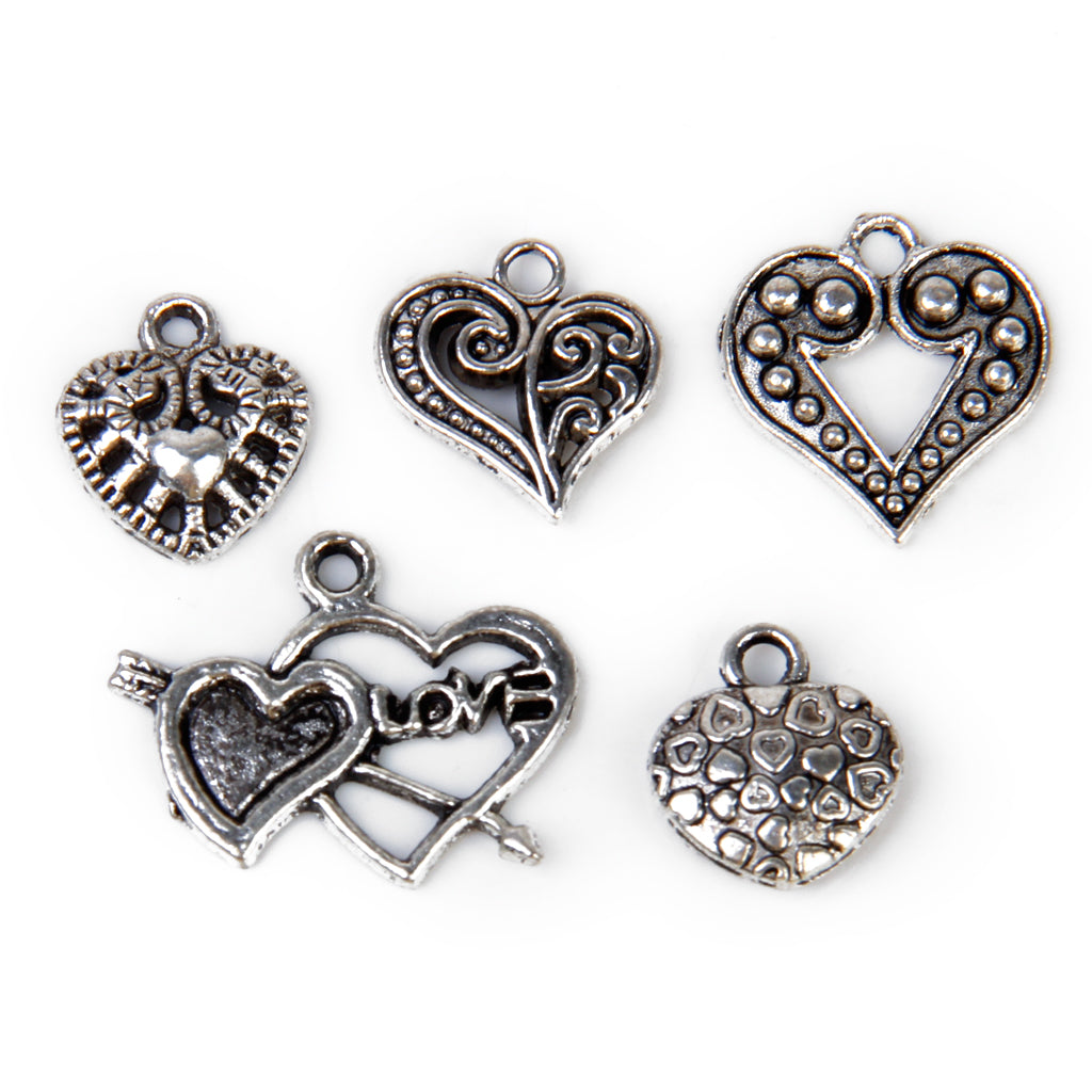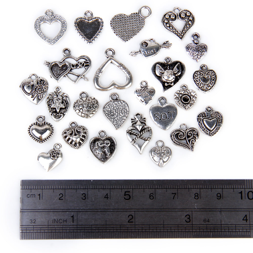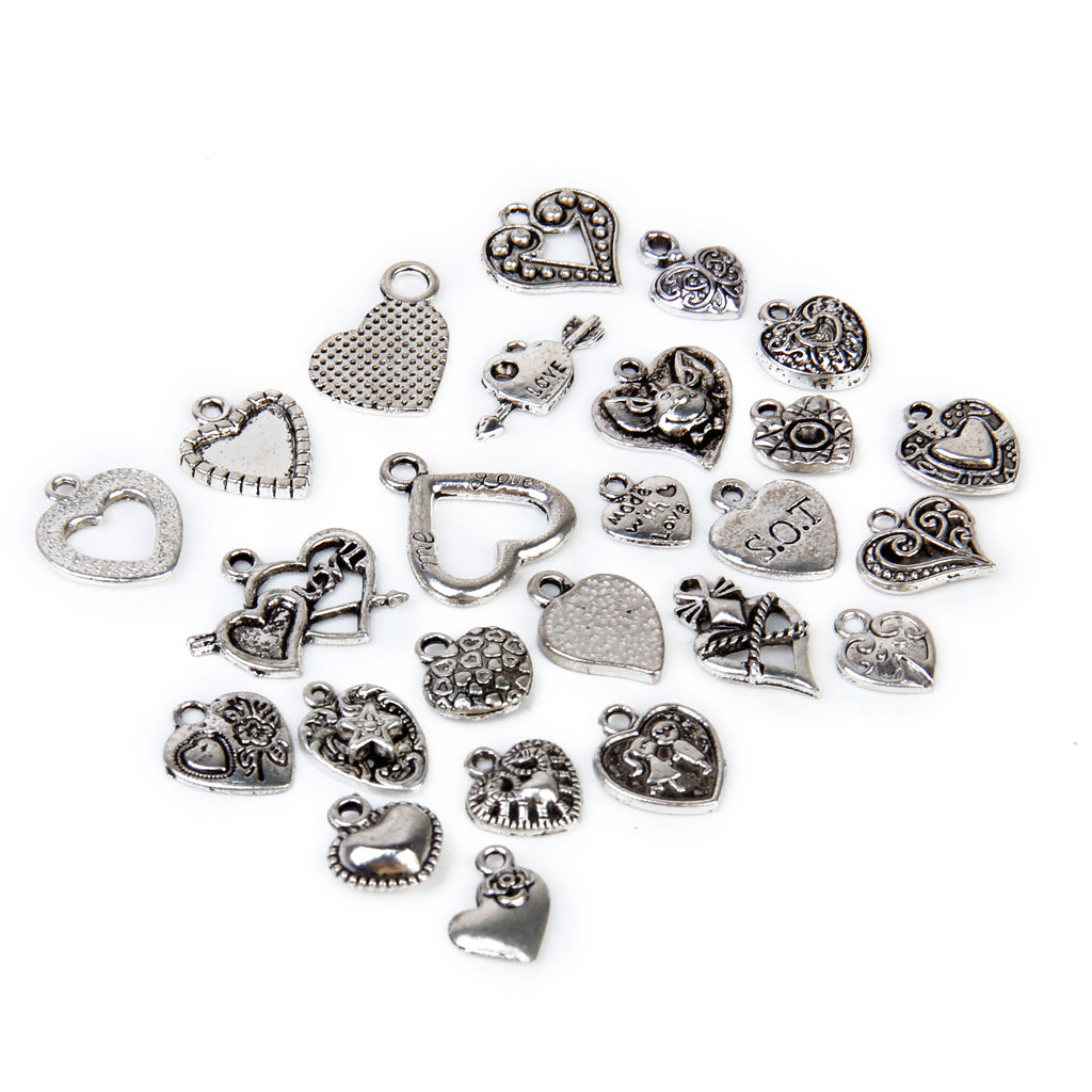 Alloy Silver Assorted Heart Shapes DIY Charms Pendants Beads Bulk Pack of 25