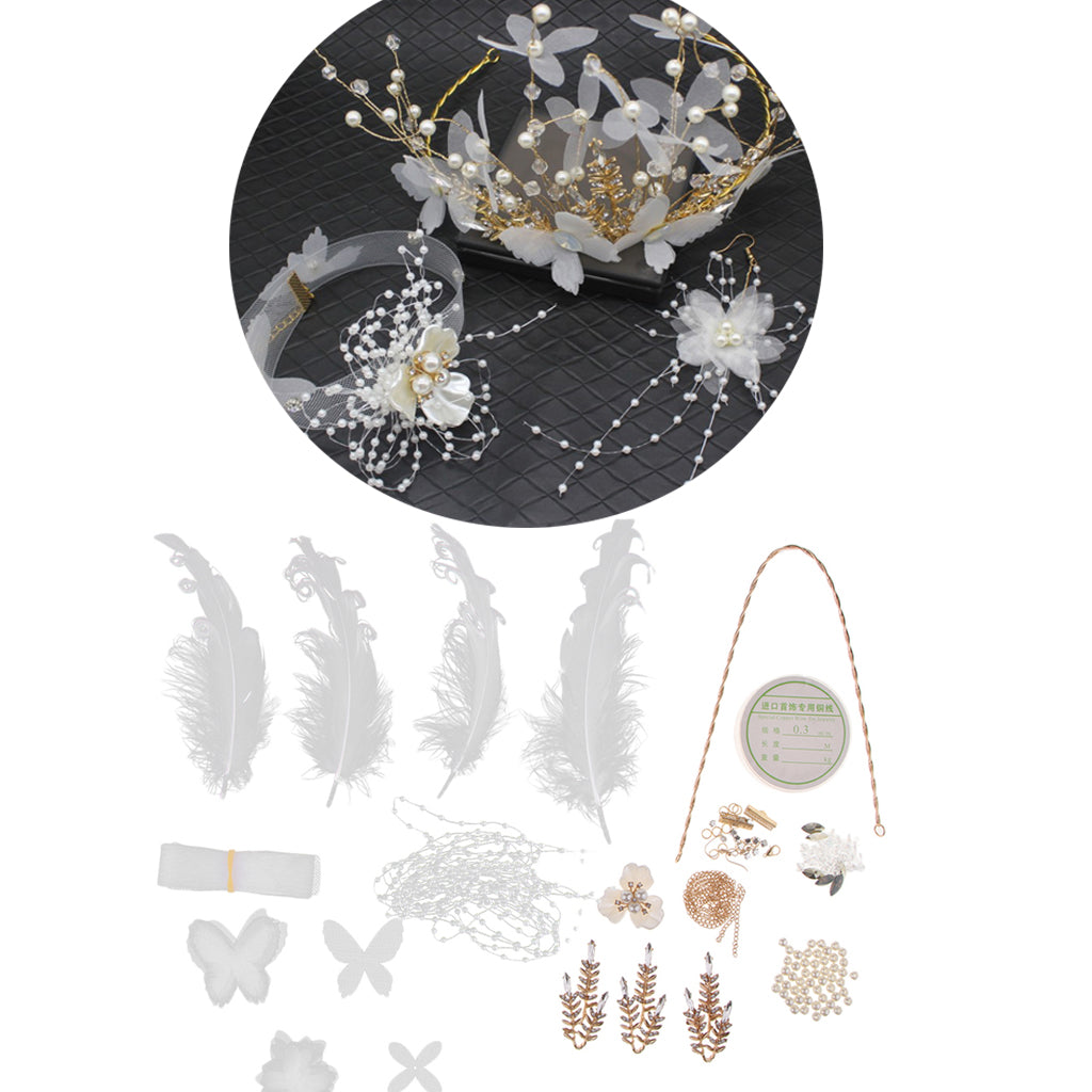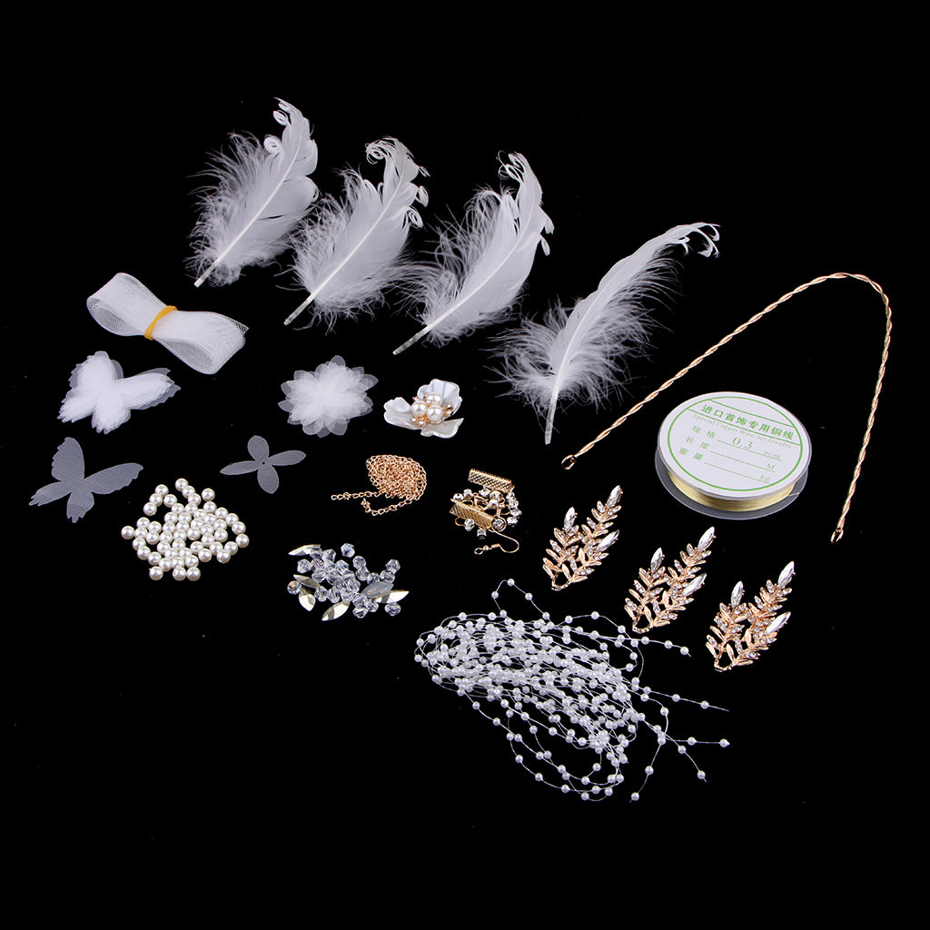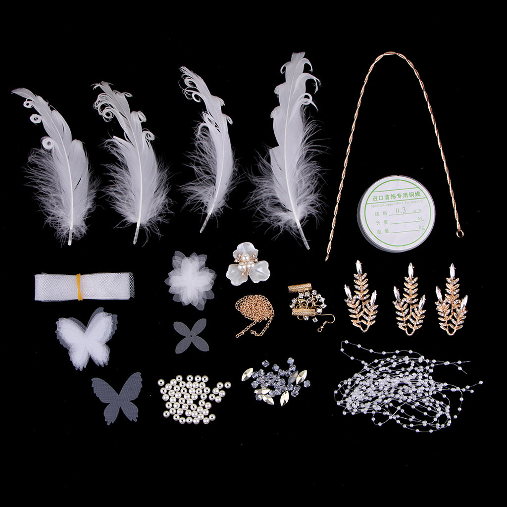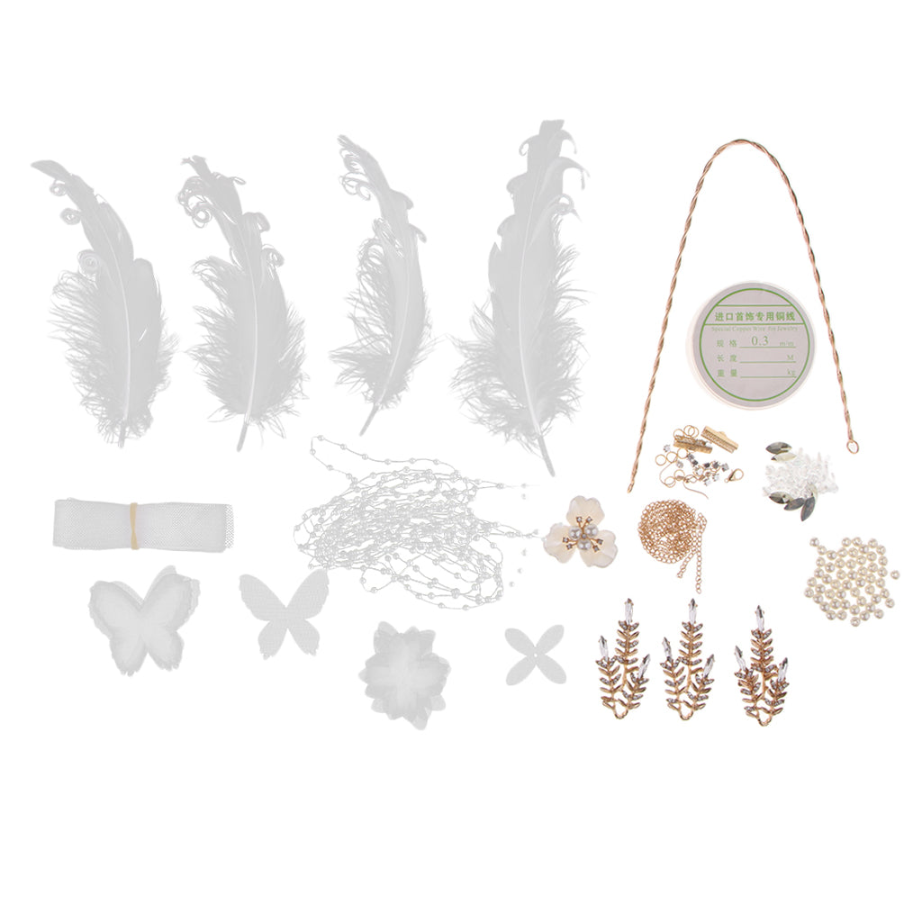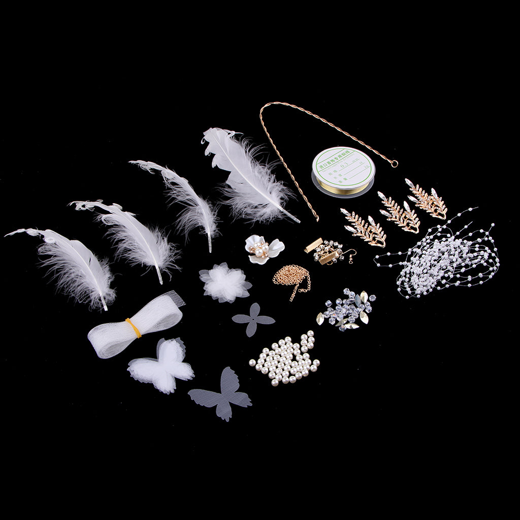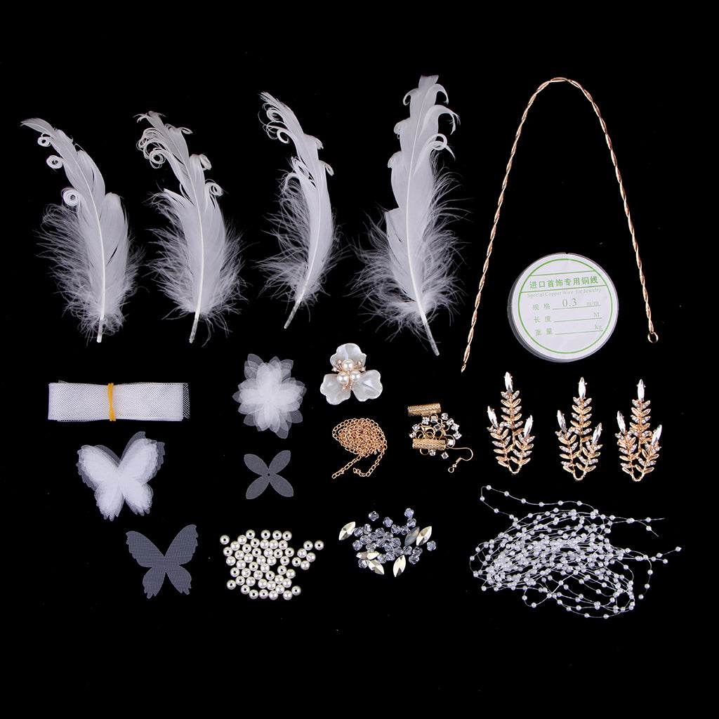 Include: 1 roll of copper wire, 4 pieces feather, many butterfly petals, diy tools and many accessories as pictures shown