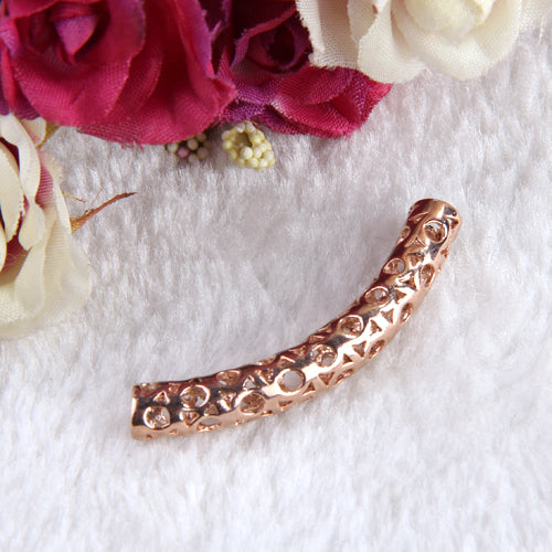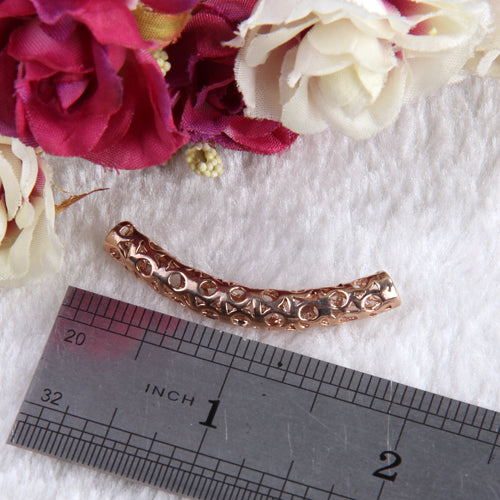 The brass tube beads can be used as bracelet or necklace spacers or focal pendants. The delicately cutout floral design will create a vintage and graceful look to your design project.