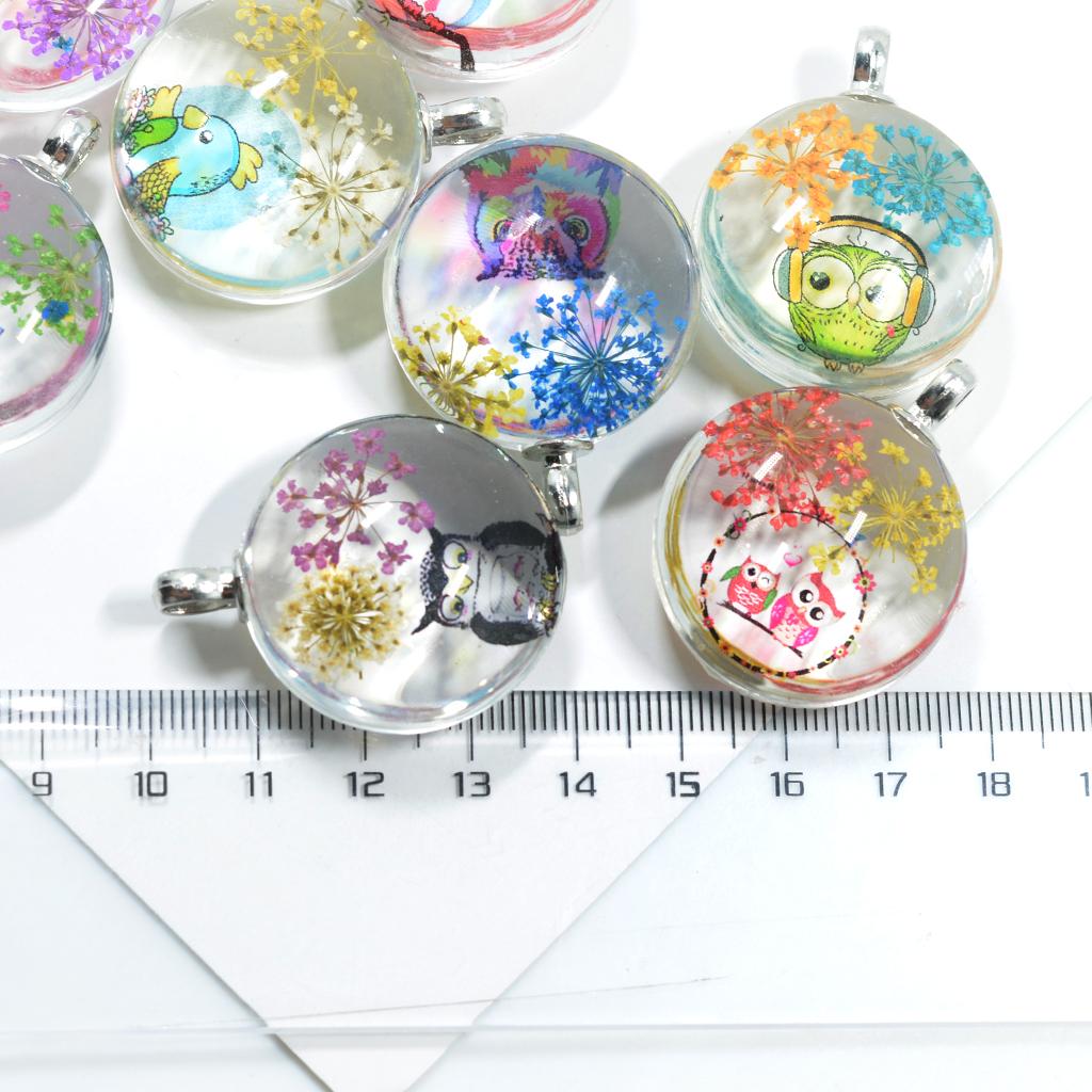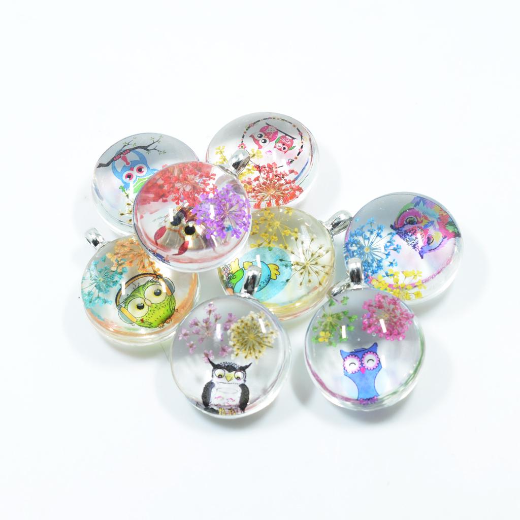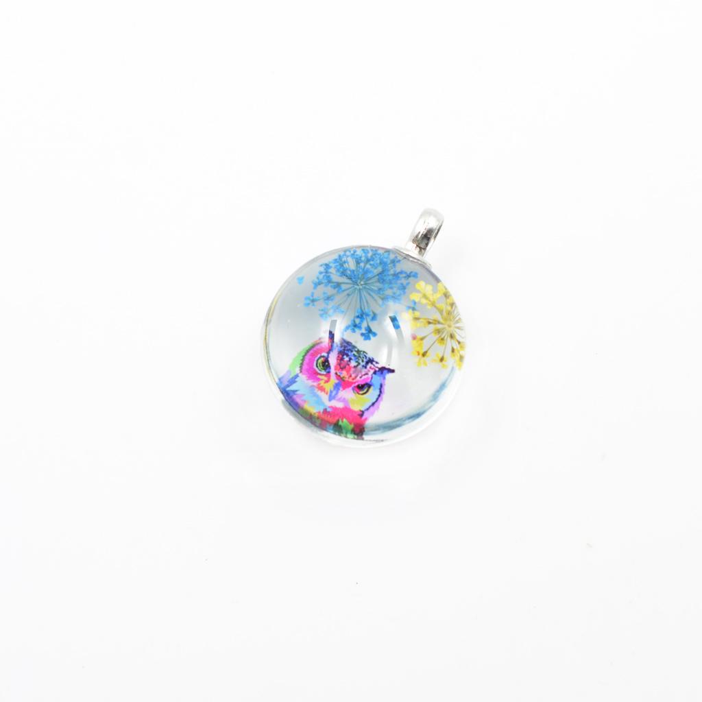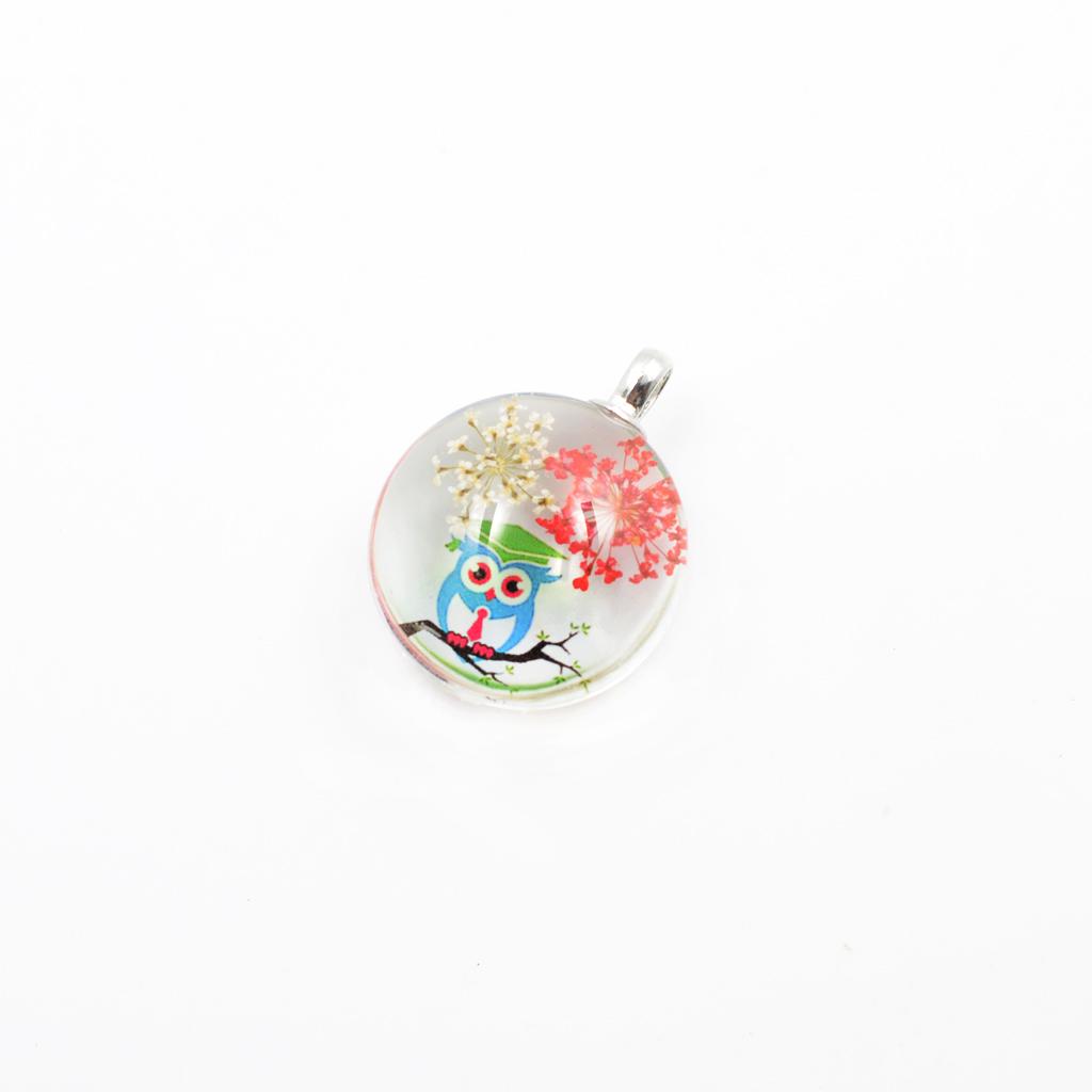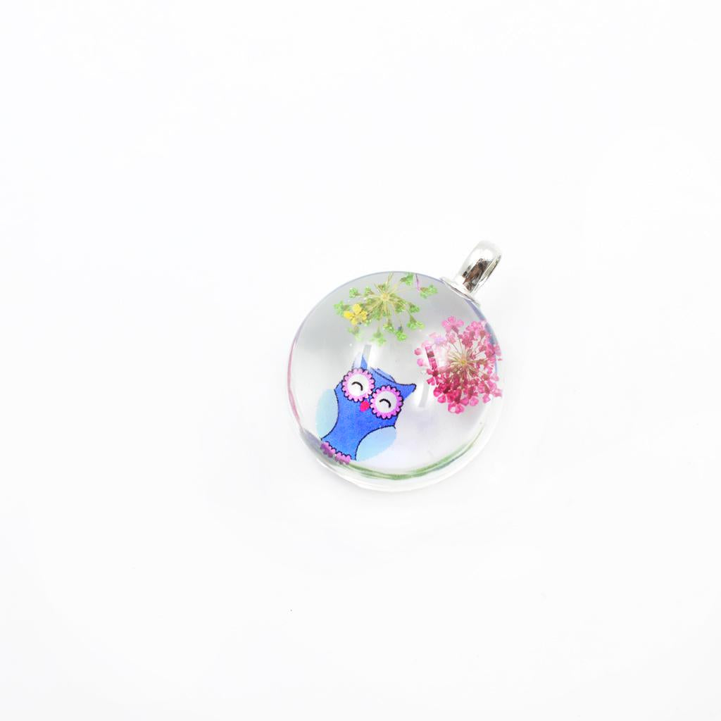 Handmade murano glass work pendants in various designs, natural dried flower, cute owl design