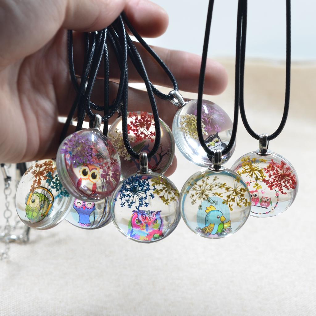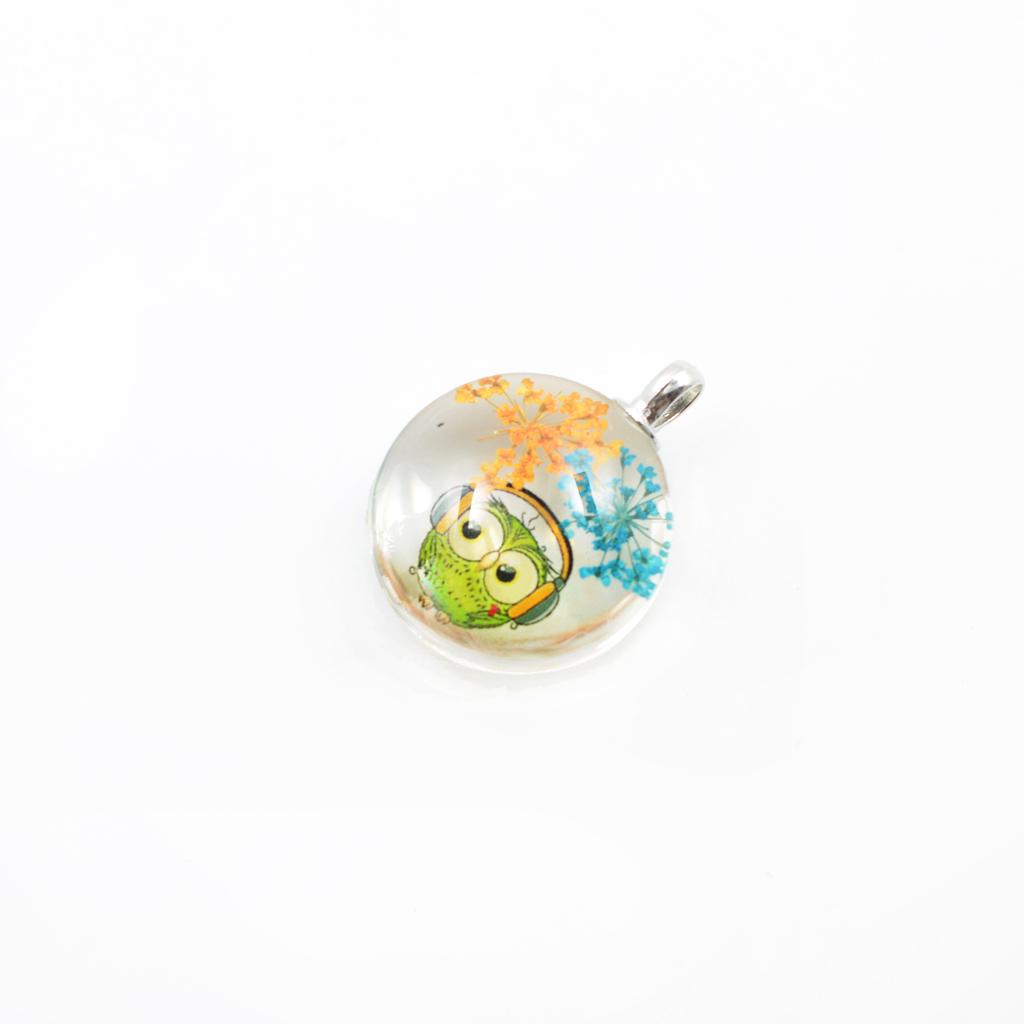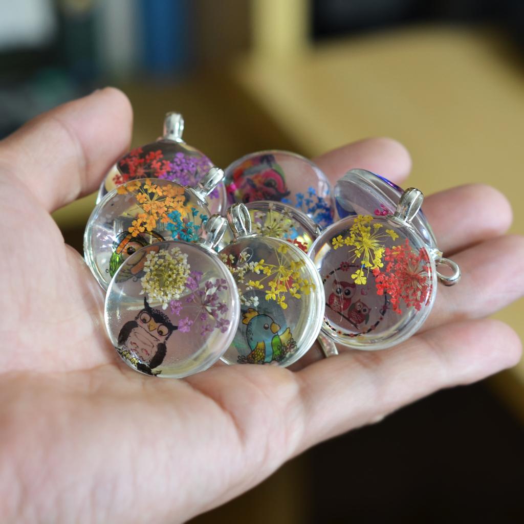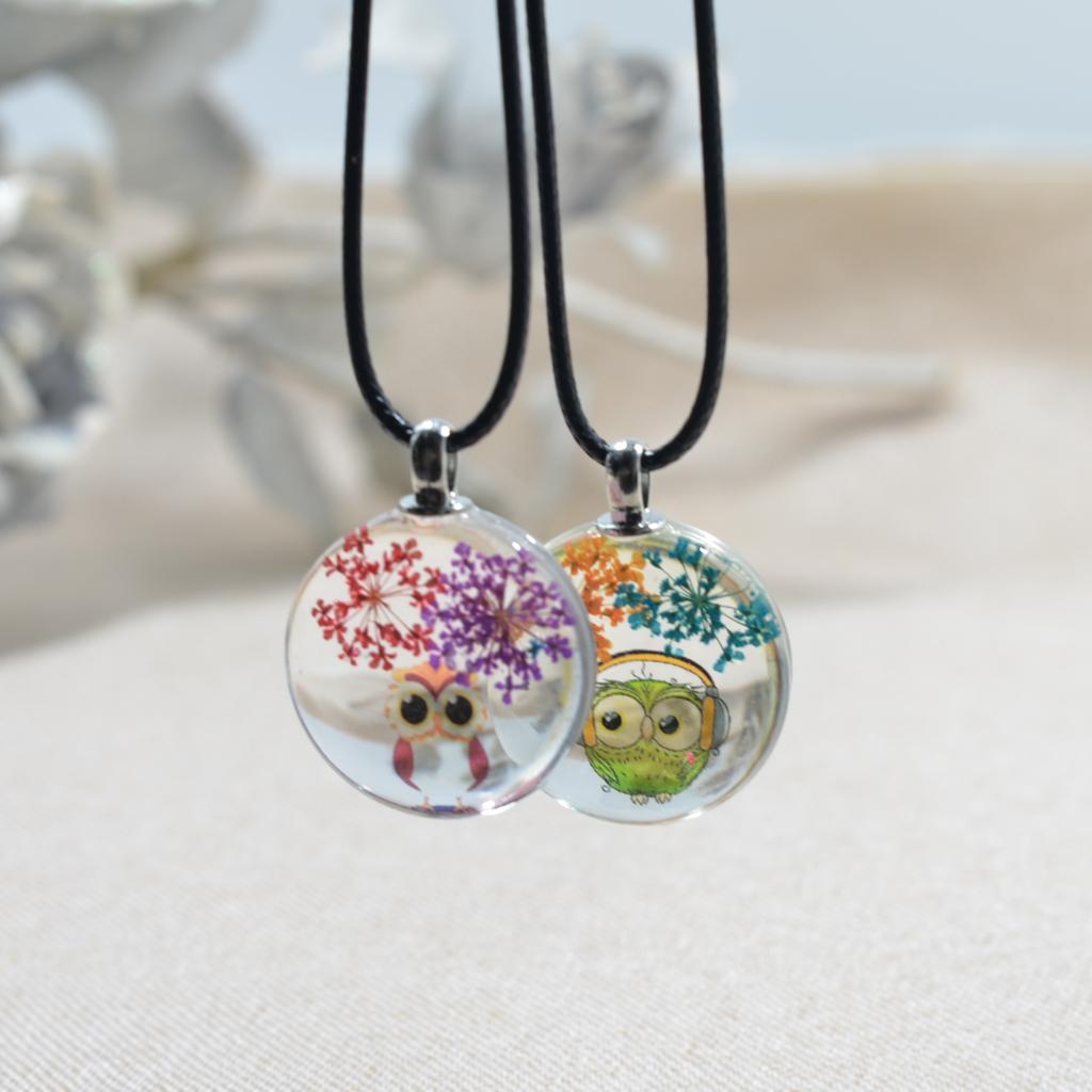 Handmade murano glass work pendants in various designs, natural dried flower, cute owl design