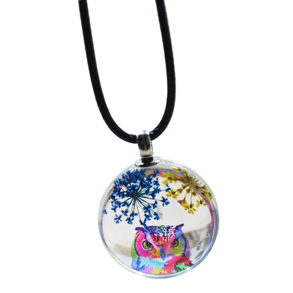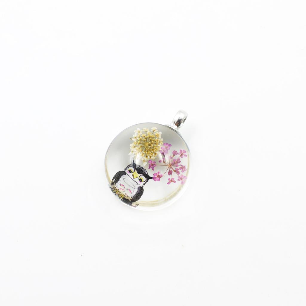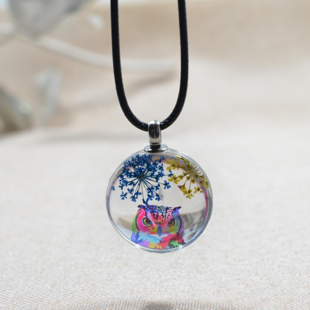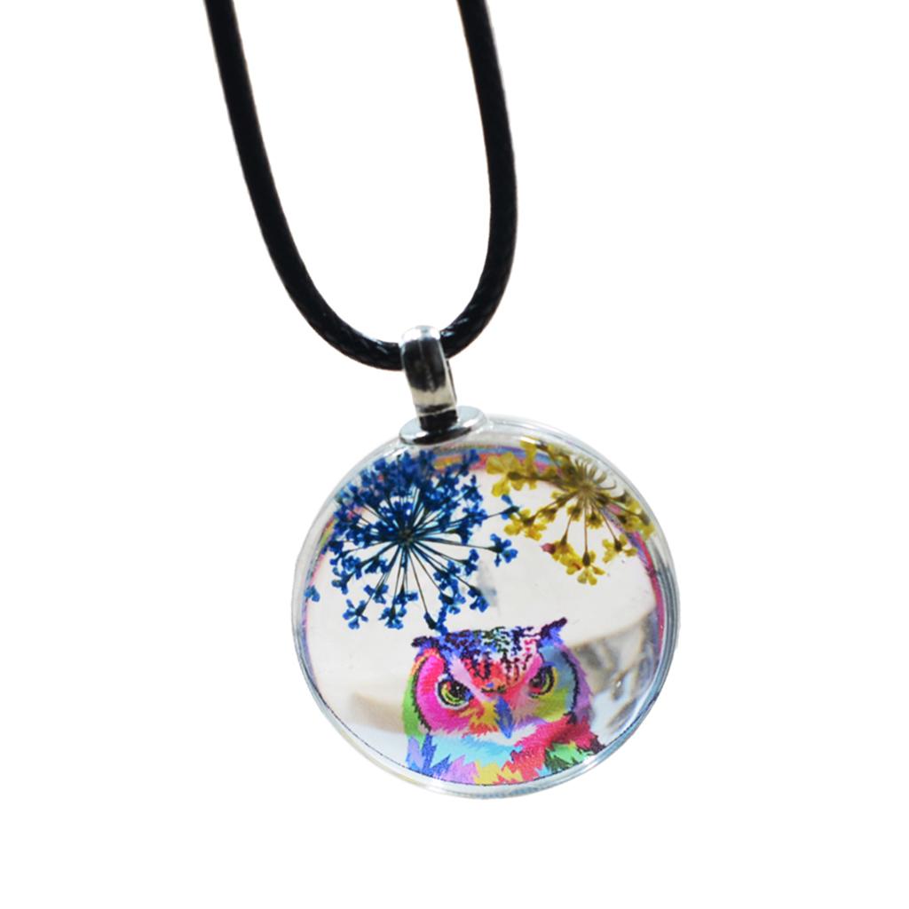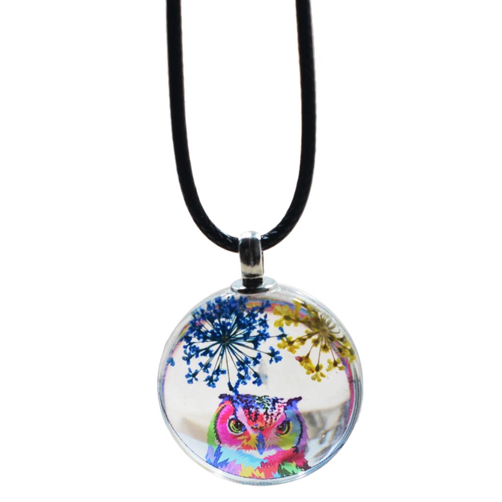 Handmade murano glass work pendants in various designs, natural dried flower, cute owl design