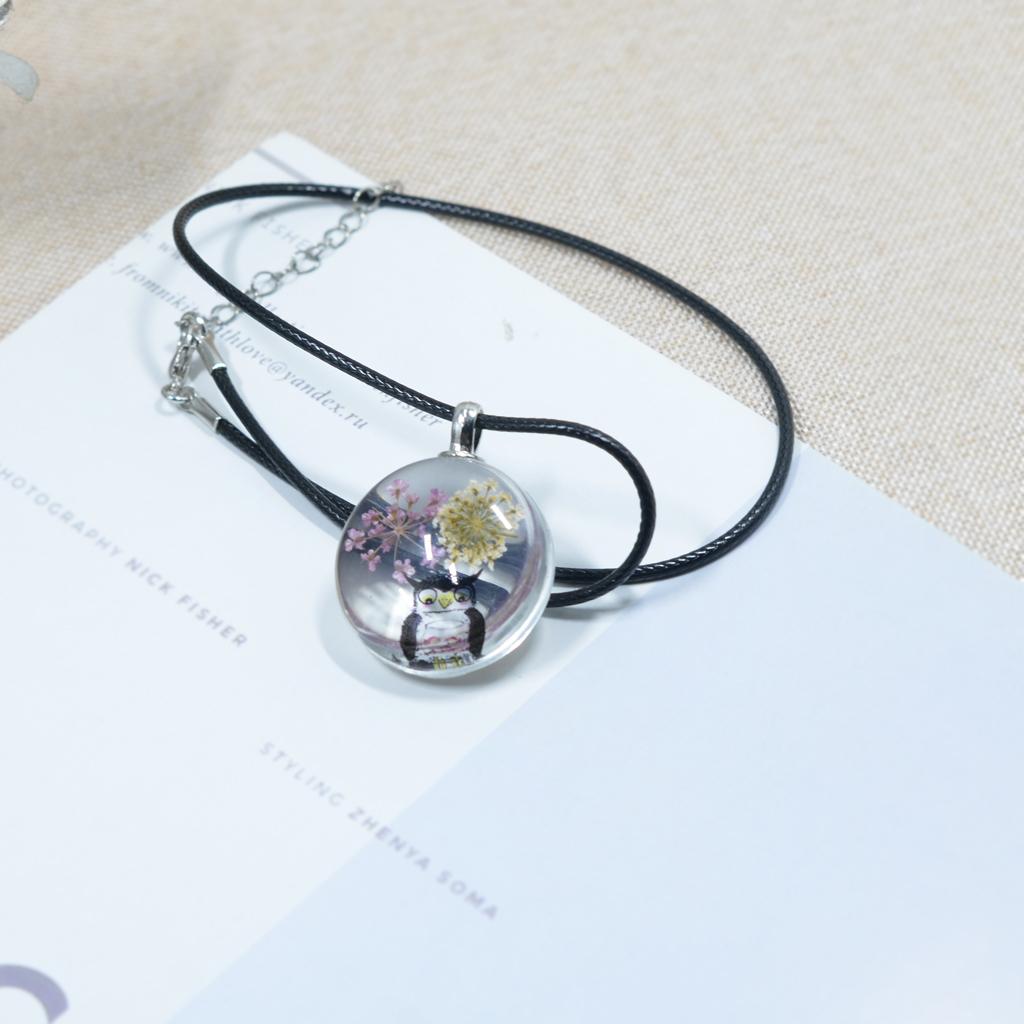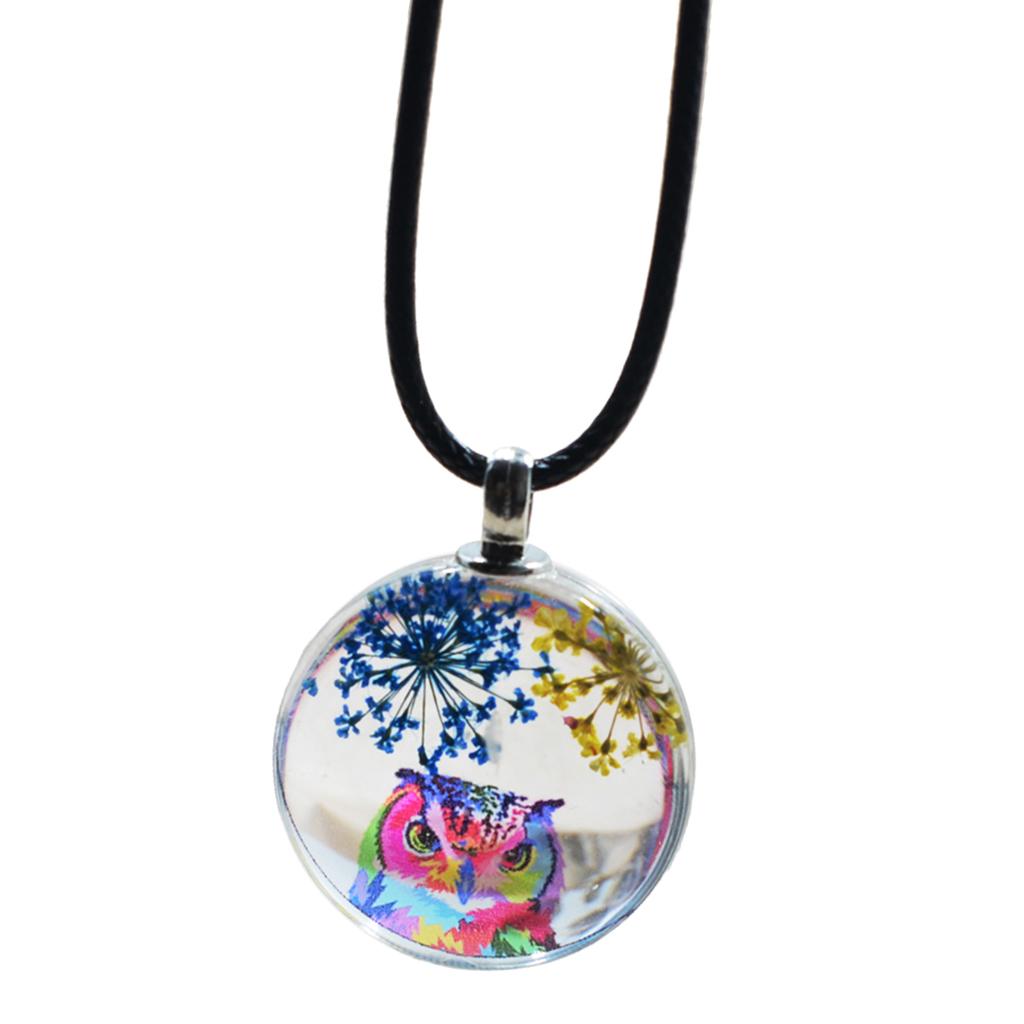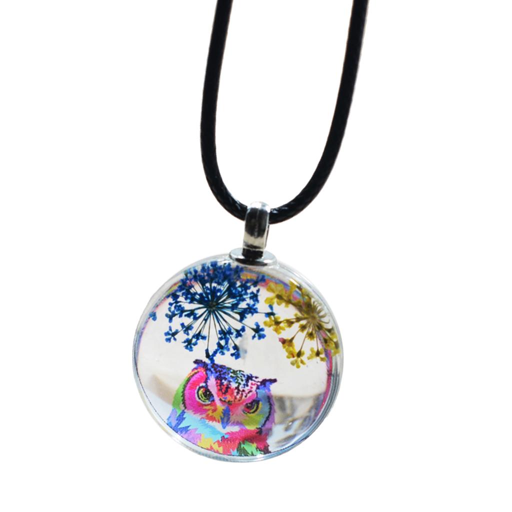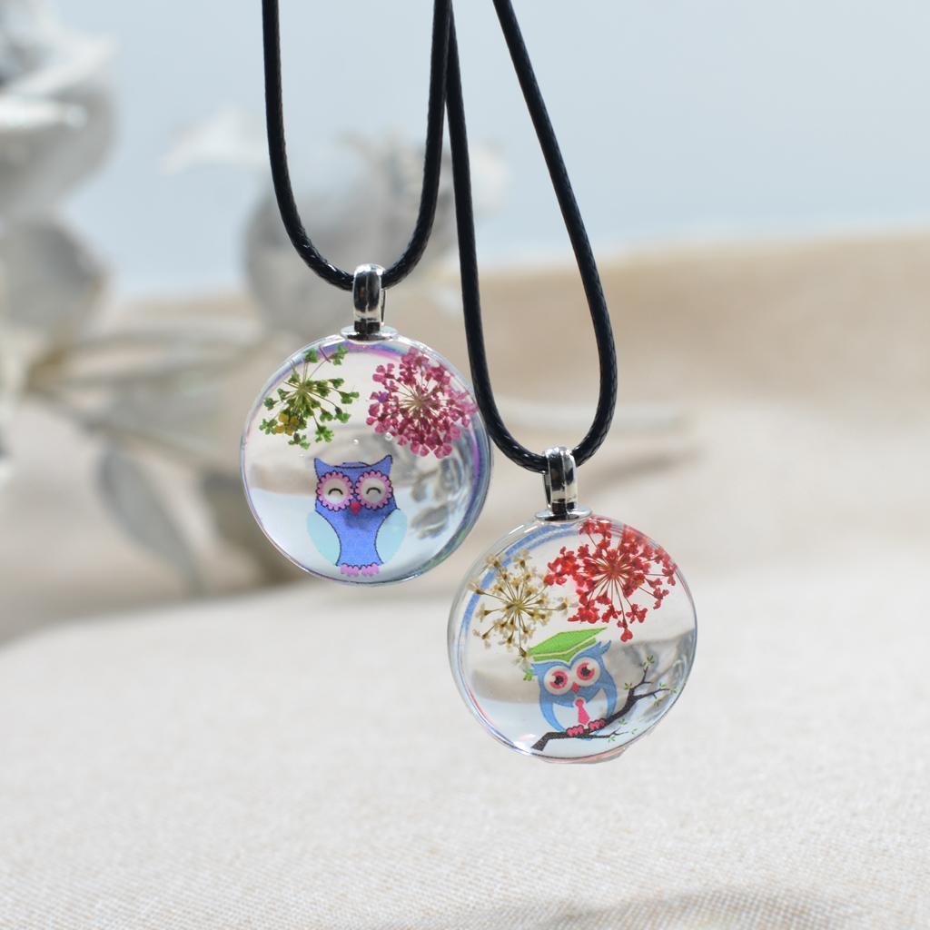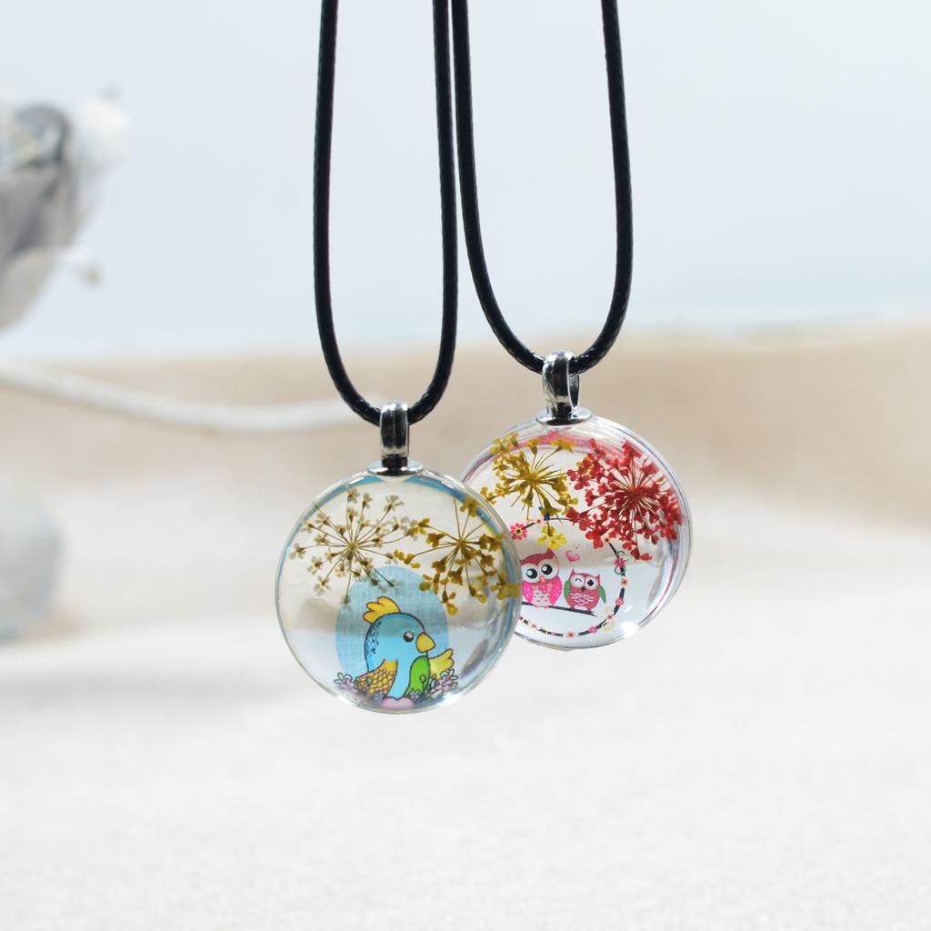 Handmade murano glass work pendants in various designs, natural dried flower, cute owl design