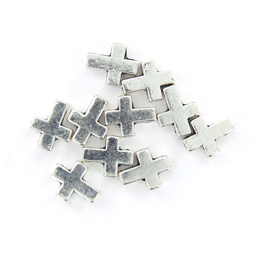 Fashionable Cross Beads for Necklace Bracelet Earrings Jewelry Making Craft DIY Beads Pack of 10PCS Silver