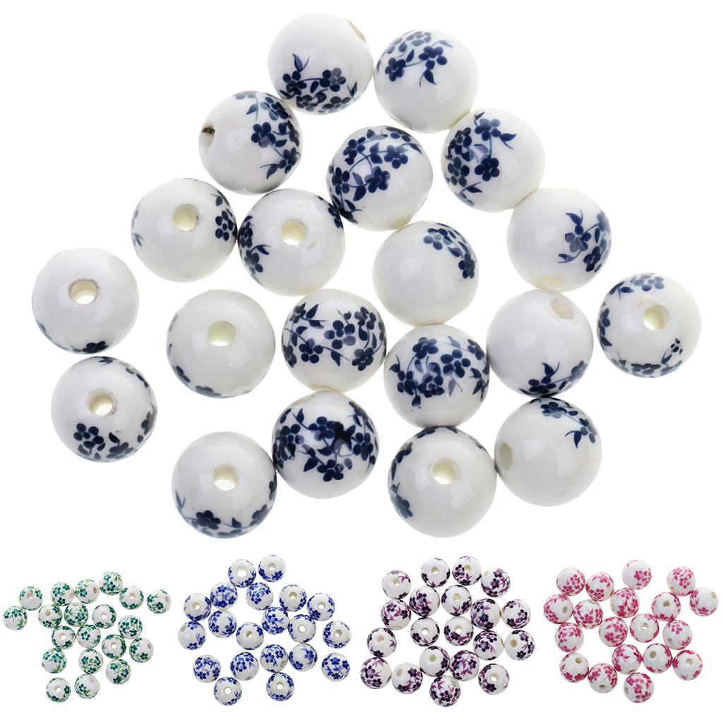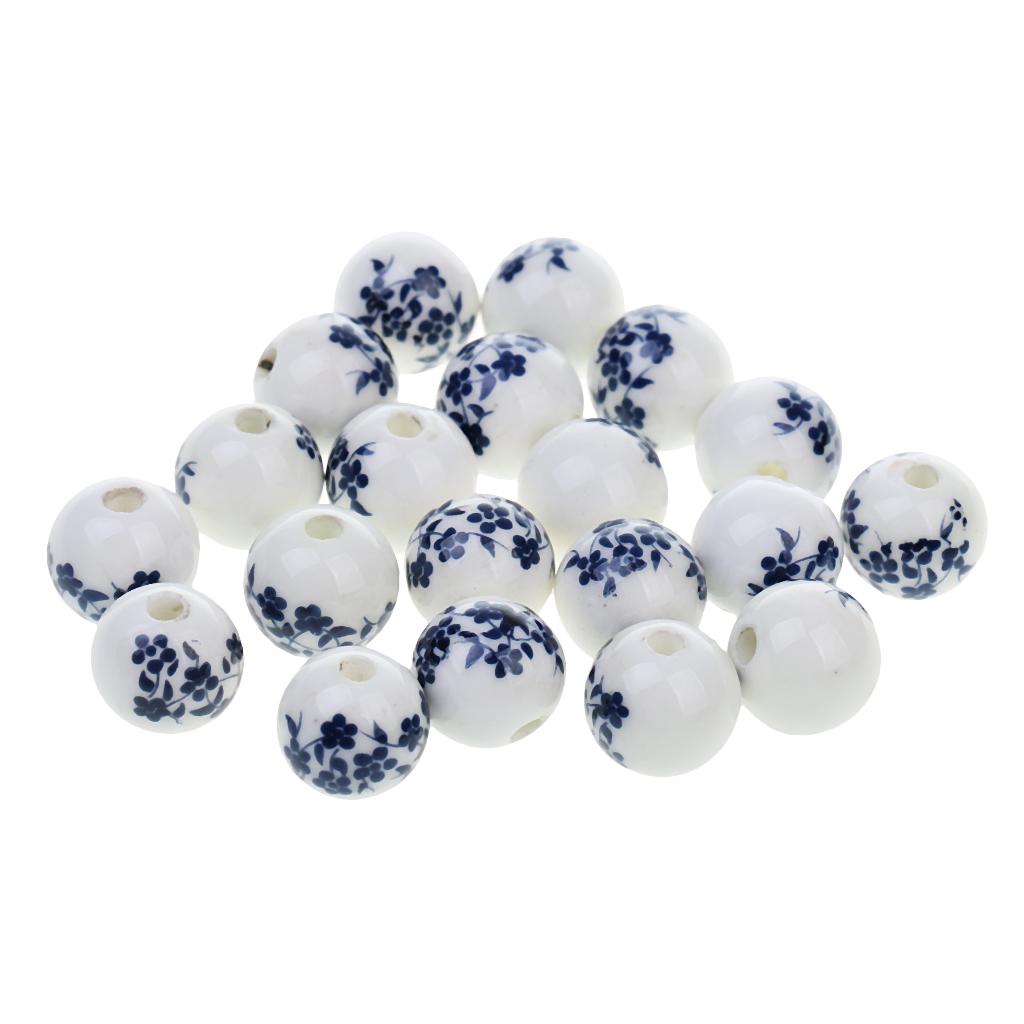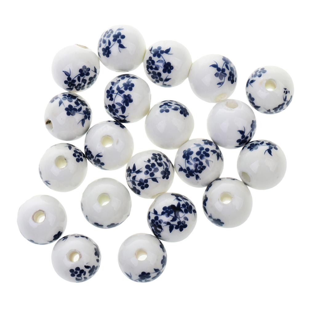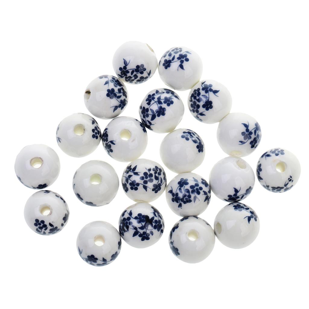 Fashionable Flower Ceramic Porcelain Loose Spacer Beads Charms For Jewelry Making Craft Projects DIY Pack of 20PCS Dark Blue