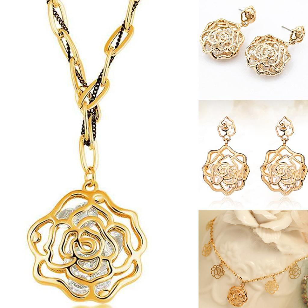 Copper plated insert zircons rose flower necklace pendant bracelet earring DIY jewelry making findings.