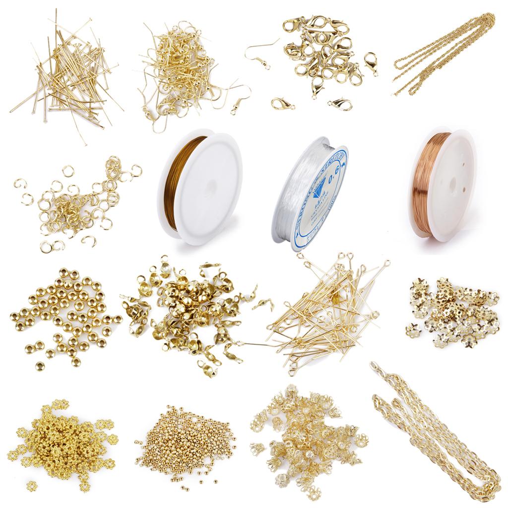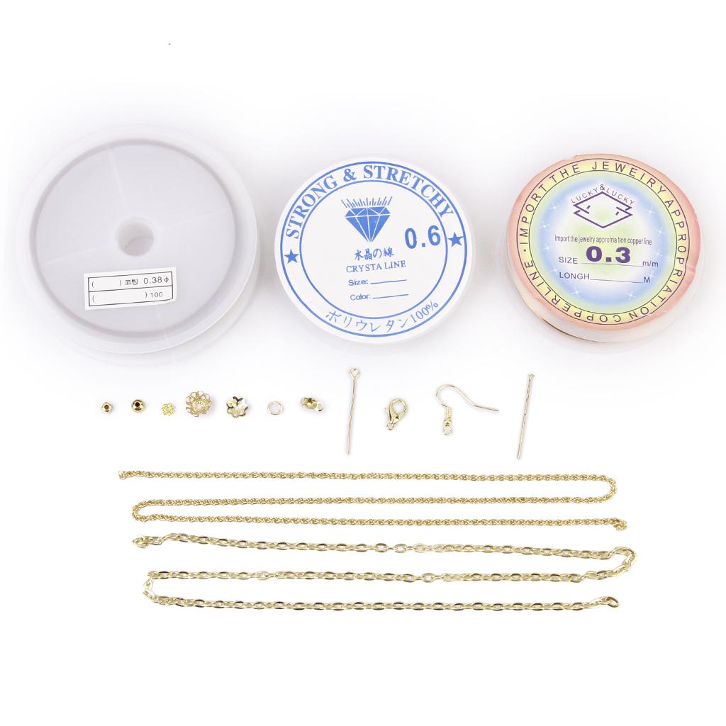 Jewellery Making Starter Kit Findings Elastic Cord Thread Chains Golden
