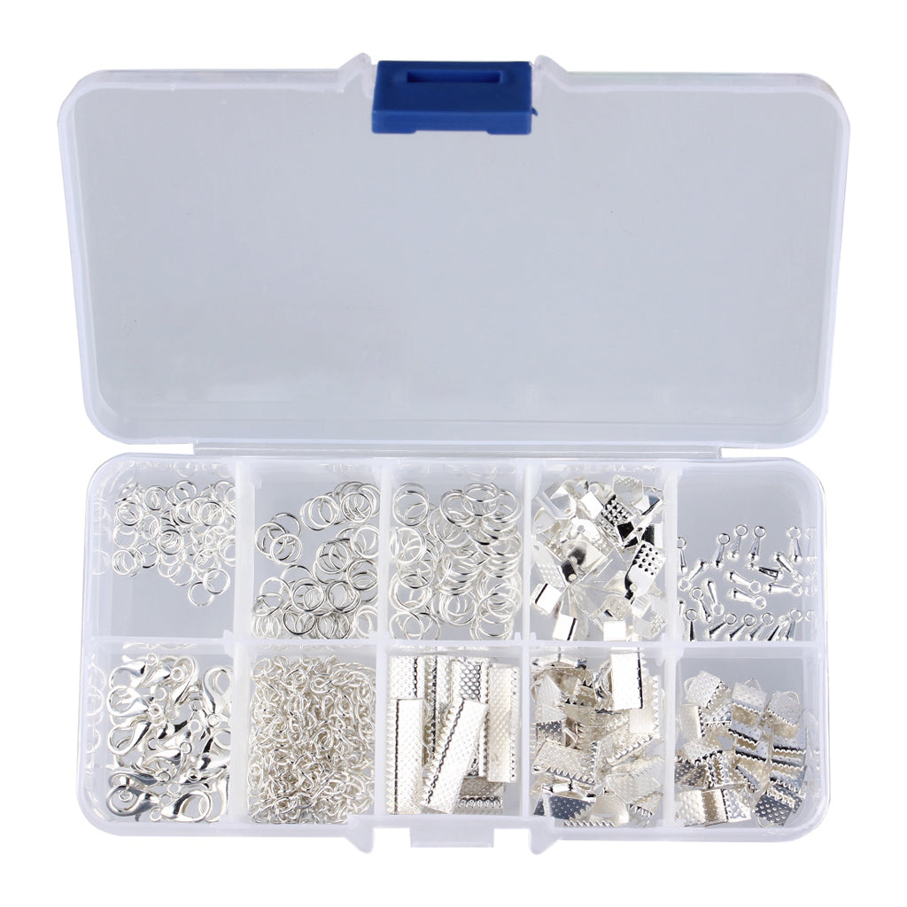 Findings Included: 20pcs Jump Rings: 5mm/0.19inch; 20pcs Jump Rings: 6mm/0.23inch; 20pcs Jump Rings: 8mm/0.31inch; 20pcs Drop End Pieces: 7mm/0.27inch; 20pcs Ribbon Crimps: 6mm/0.23inch; 20pcs Ribbon Crimps: 10mm/0.39inch; 20pcs Ribbon Crimps: 20mm/0.78inch; 20pcs Extender Chain: 5mm/0.19inch; 20pcs Crimp Ends: 5mmx9mm/0.19inchx0.35inch; 20pcs Lobster Clasp: 12mmx6mm/0.47inchx0.23inch