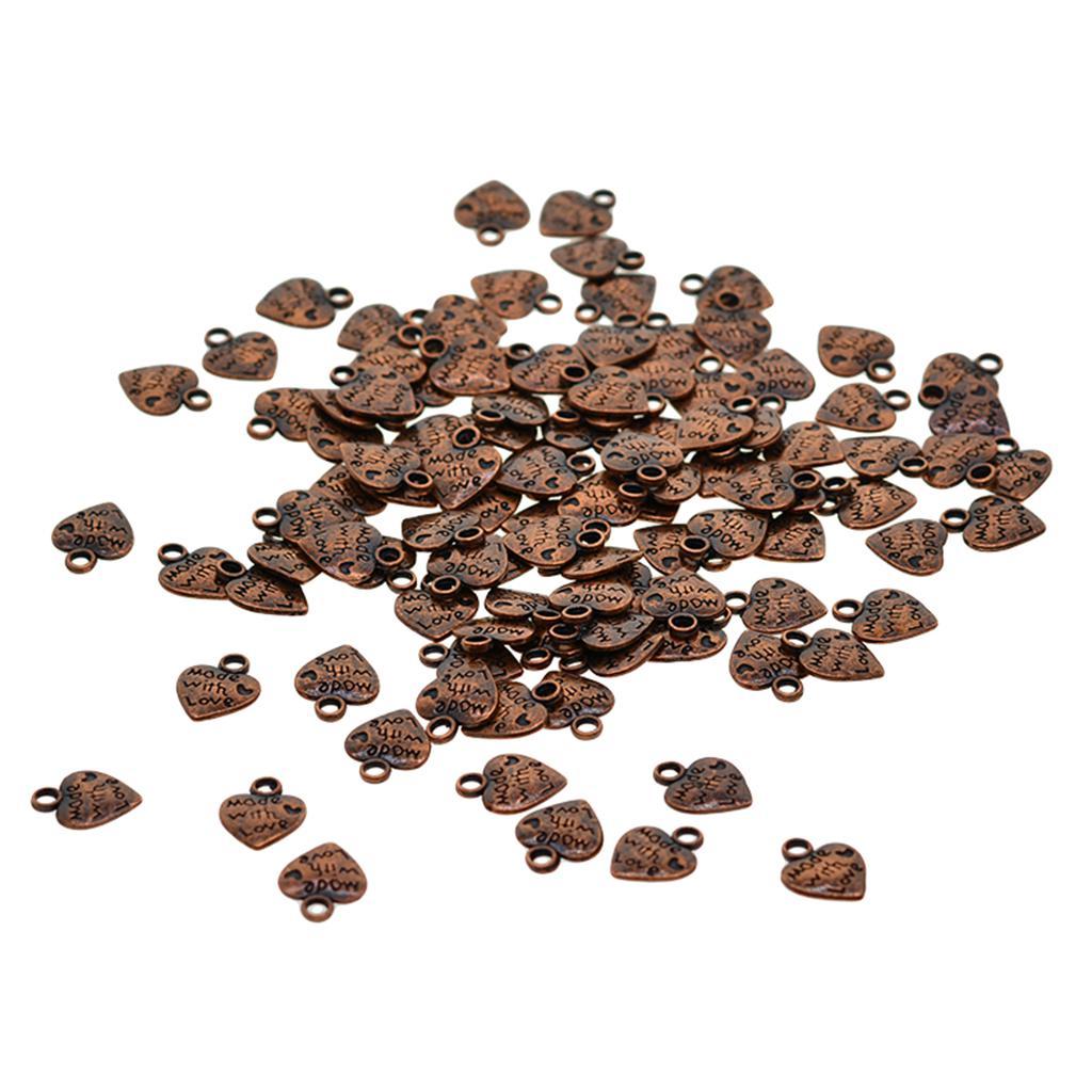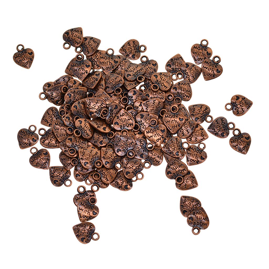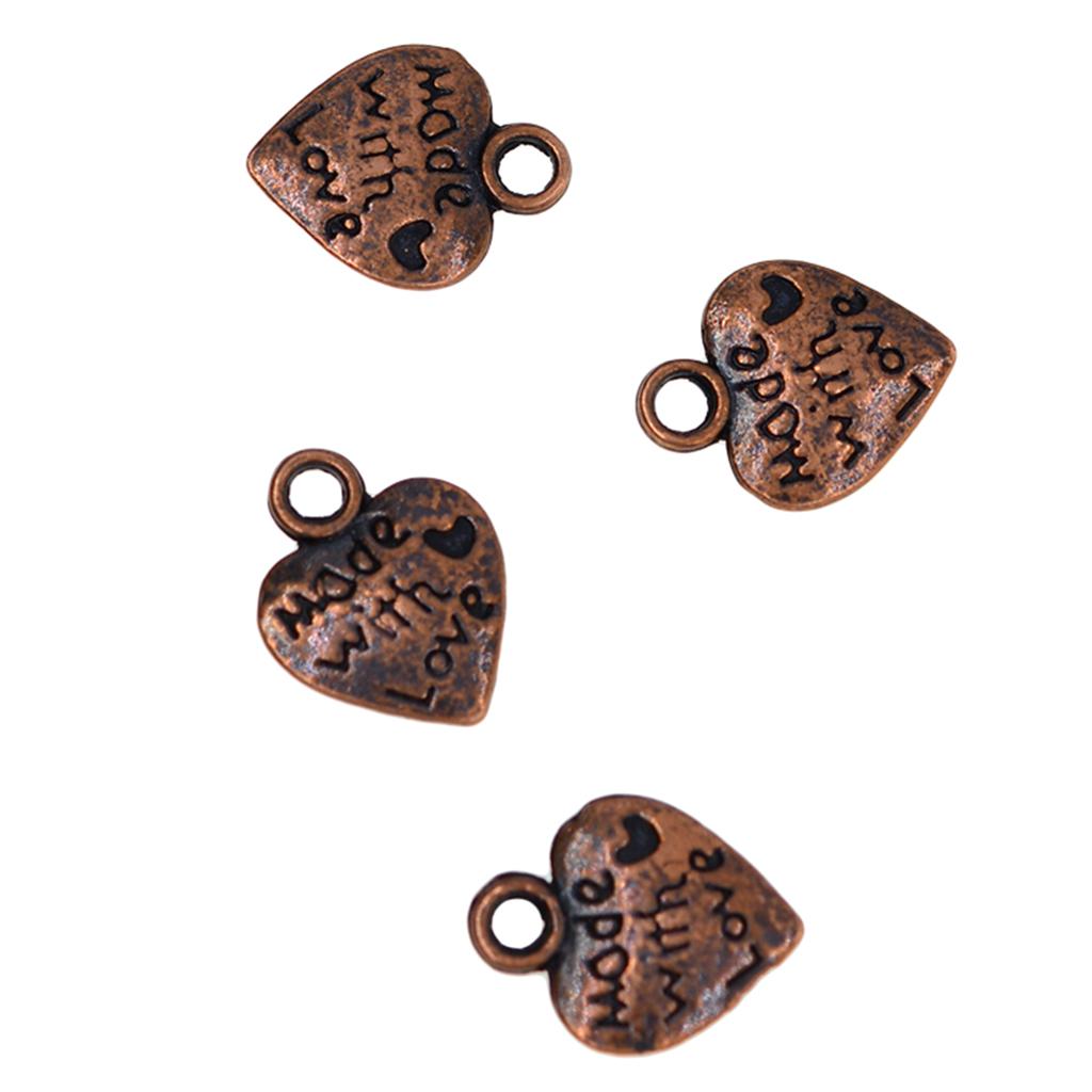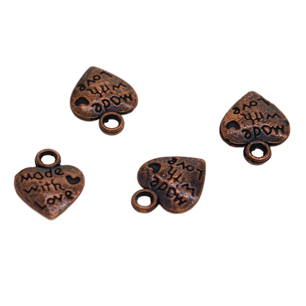 Antique vintage copper alloy heart "Made with love "Jewelry DIY Making Label Tags charms pendant