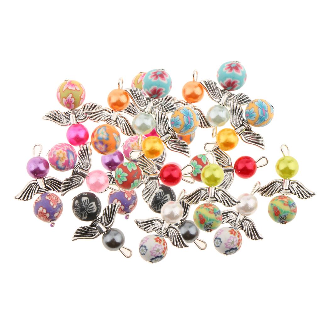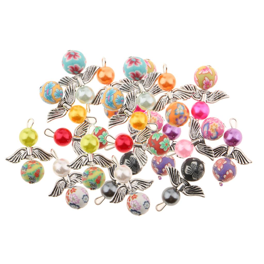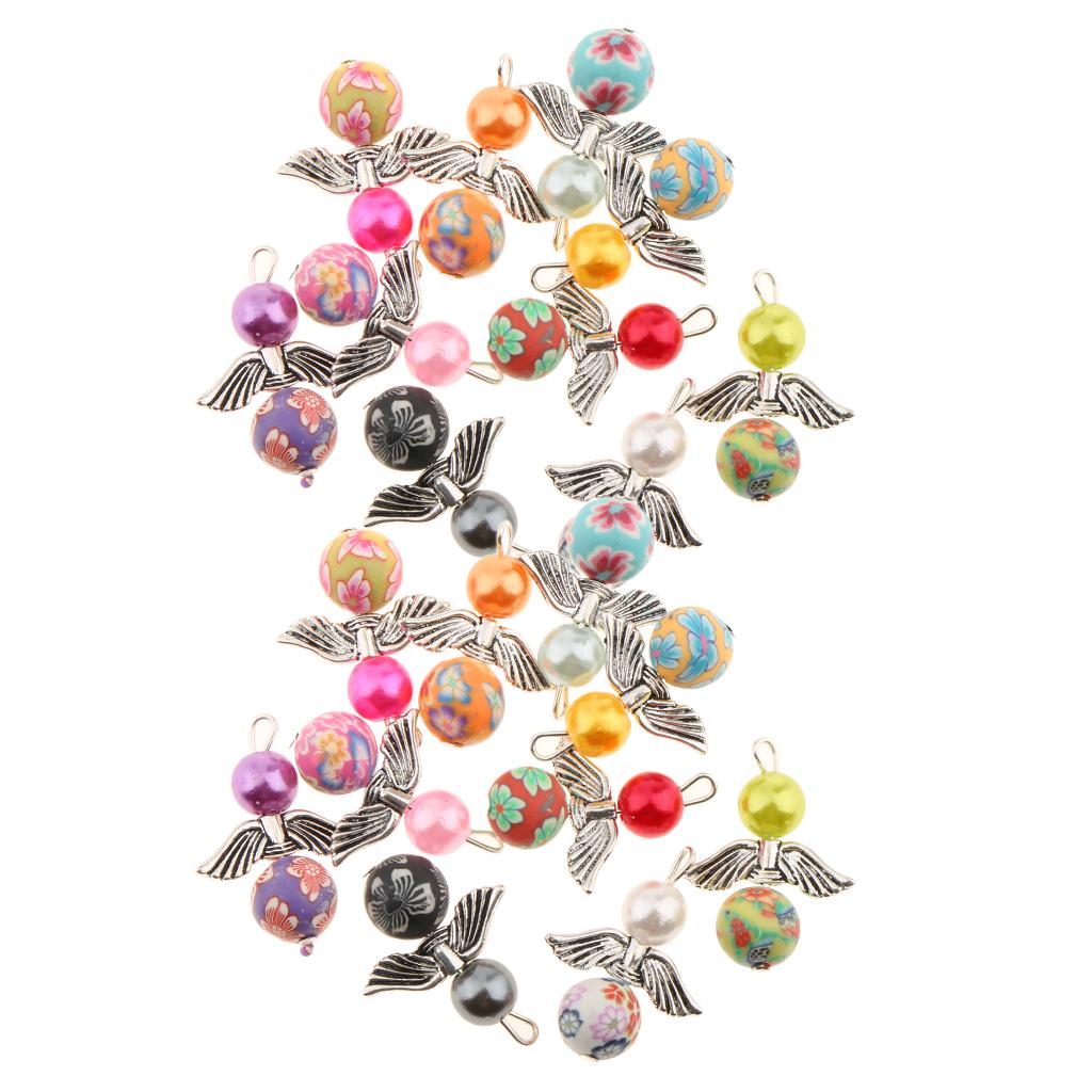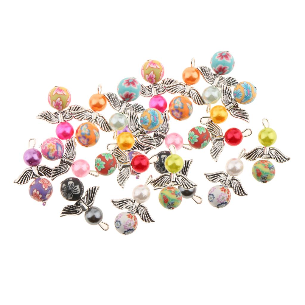 Made using pearl and polymer clay beads, tibetan silver angel wings.