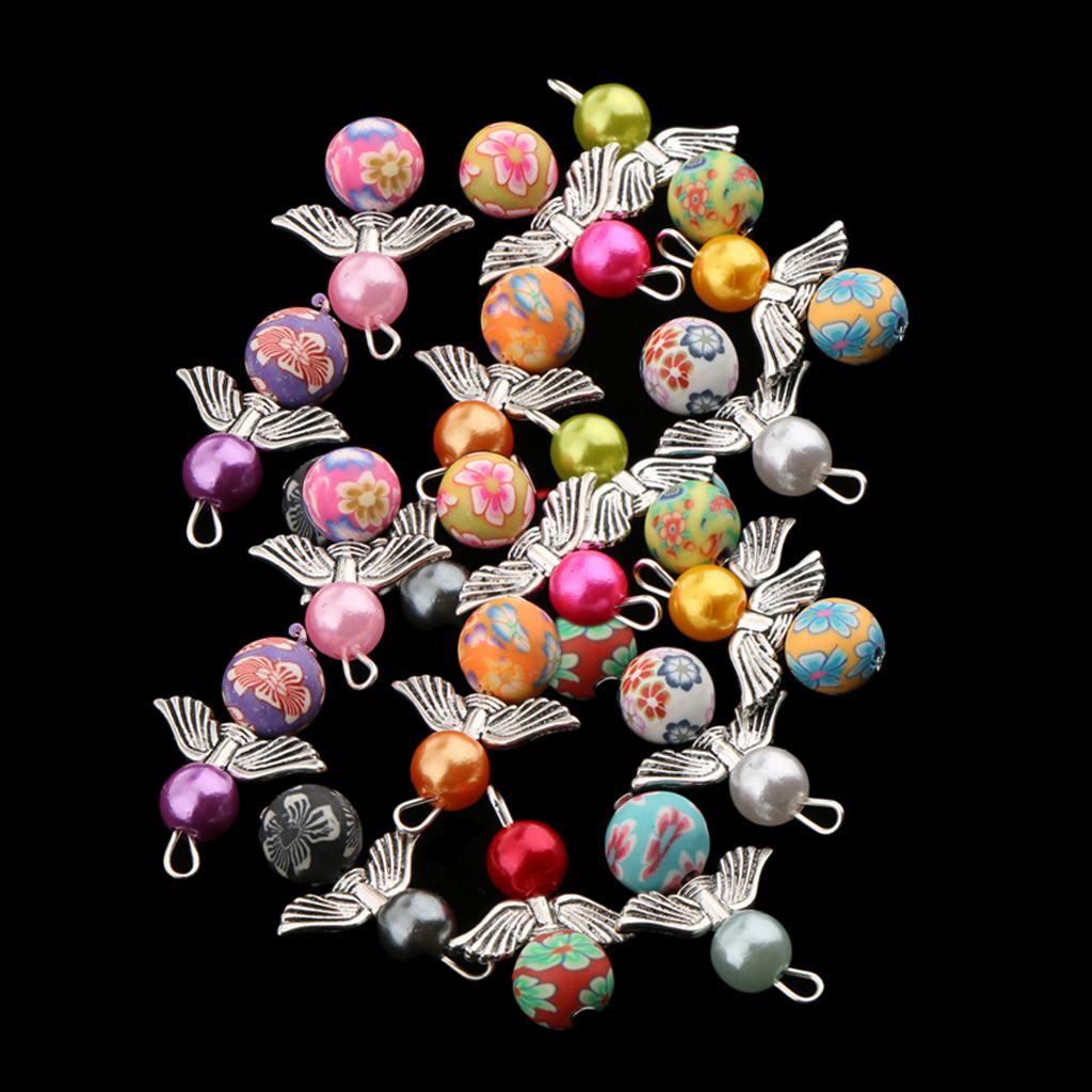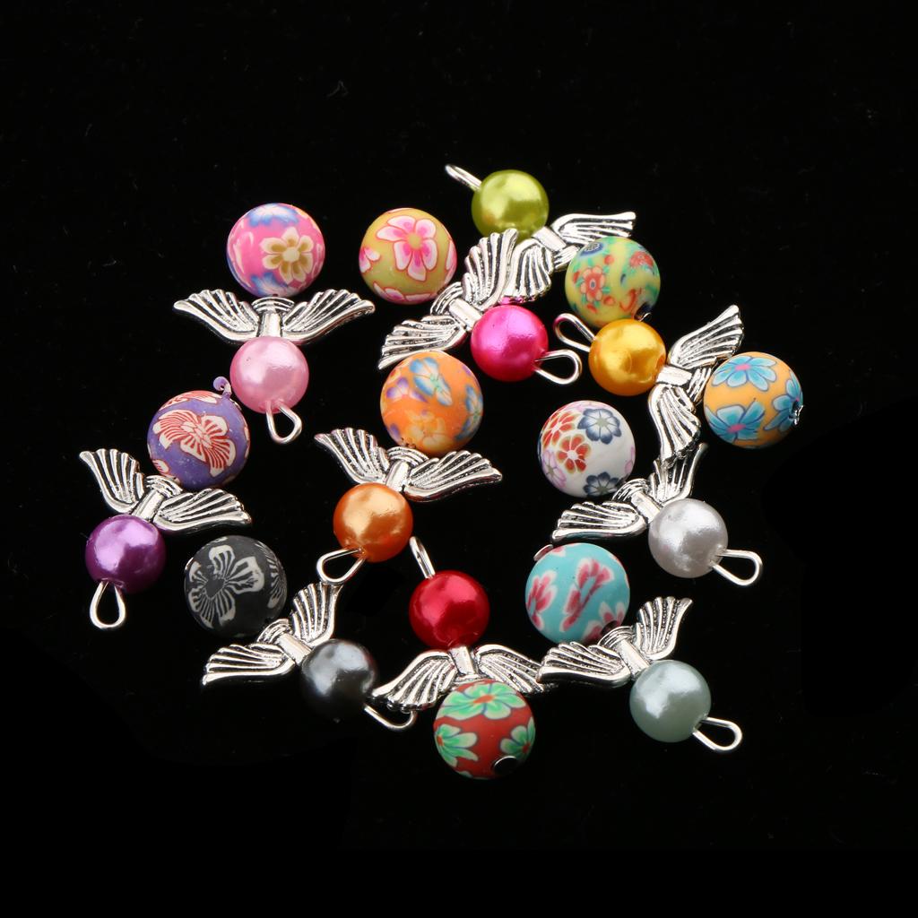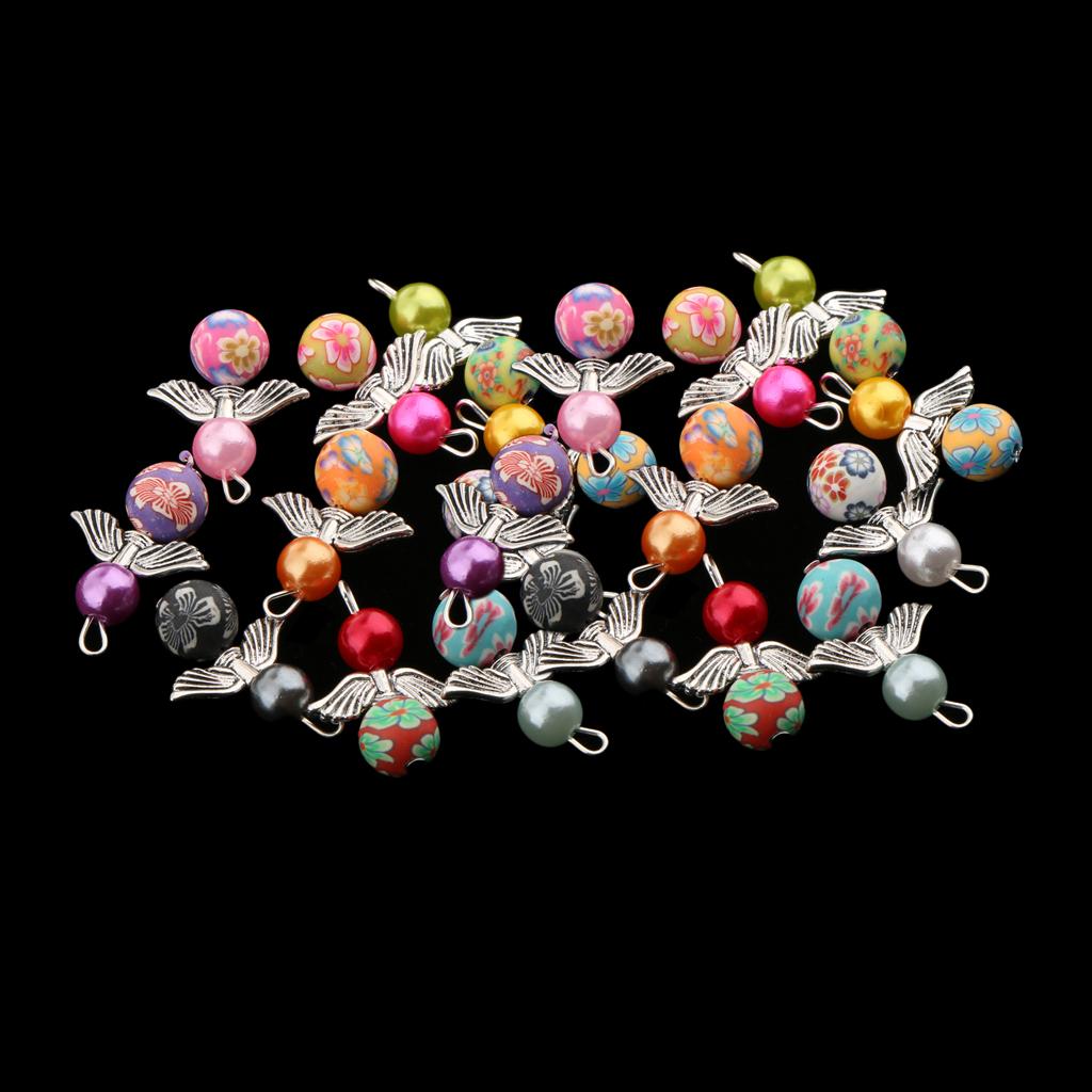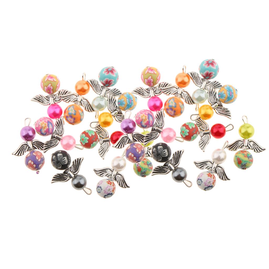 Made using pearl and polymer clay beads, tibetan silver angel wings.