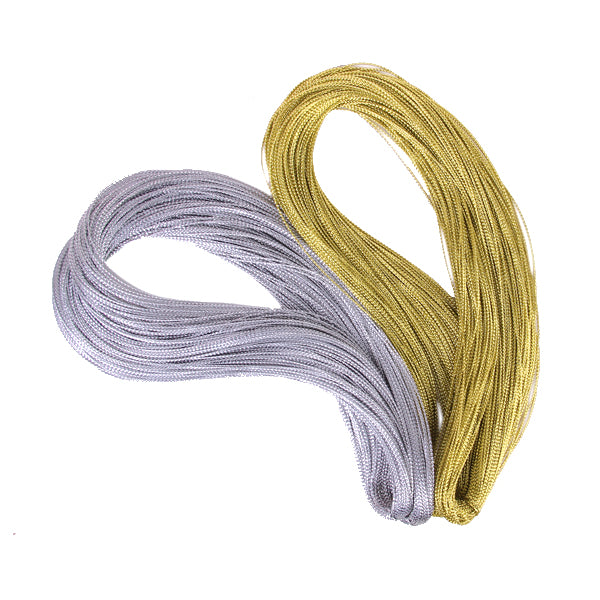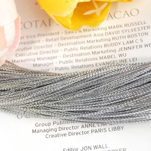 Multifunctional metallic cord, ideal for stringing beads, stones, pendants to make necklace, bracelet, etc., or used on trimming cards, menu cards, invitation cards, scrapbooking and all kinds of craft projects, or used to put on presents, balloons, tables, and flowers, etc..