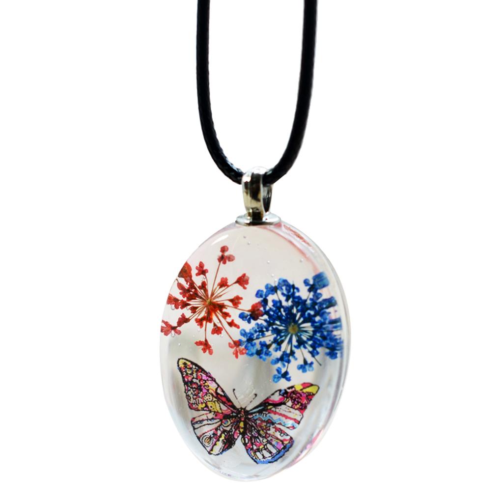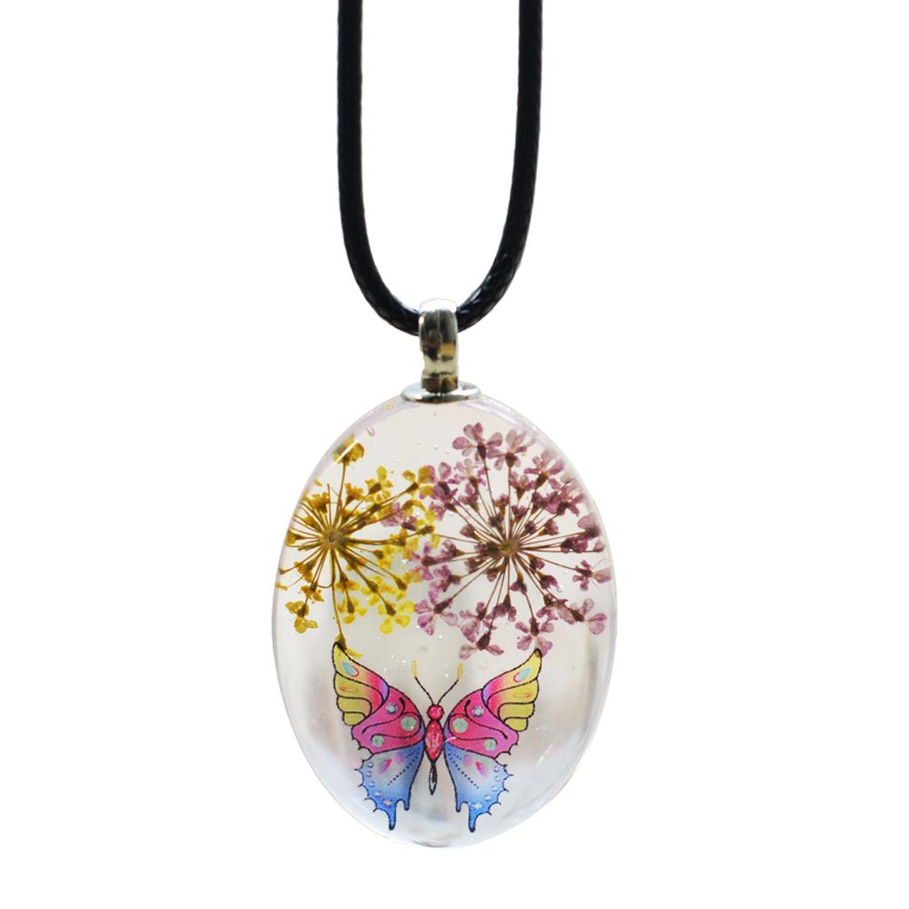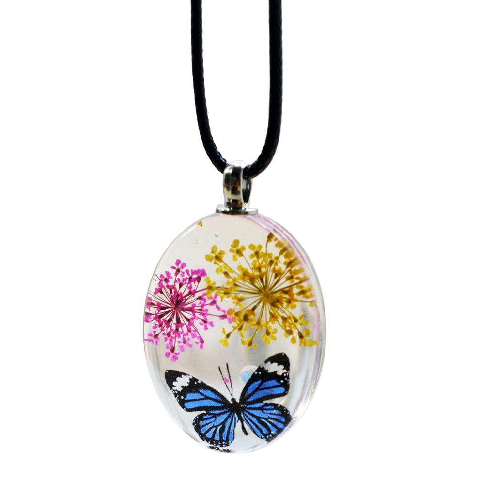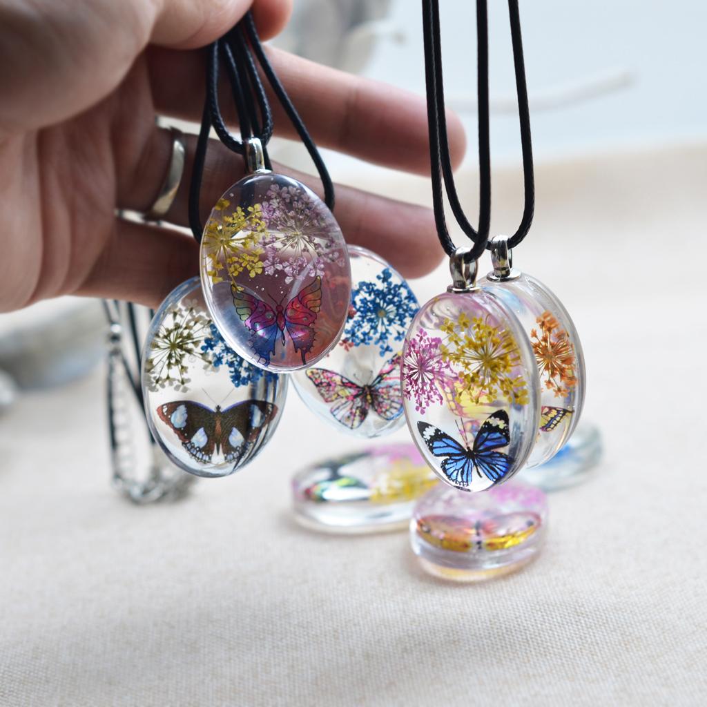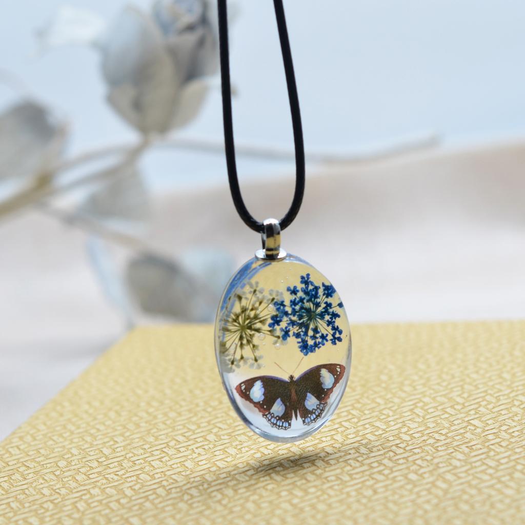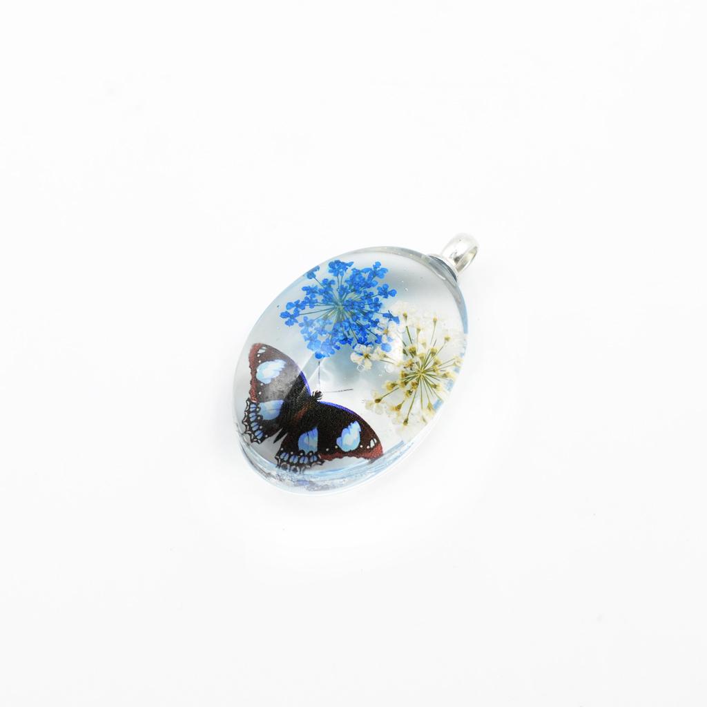 Unique transparent oval pendant featuring real dried flowers preserved in pendants