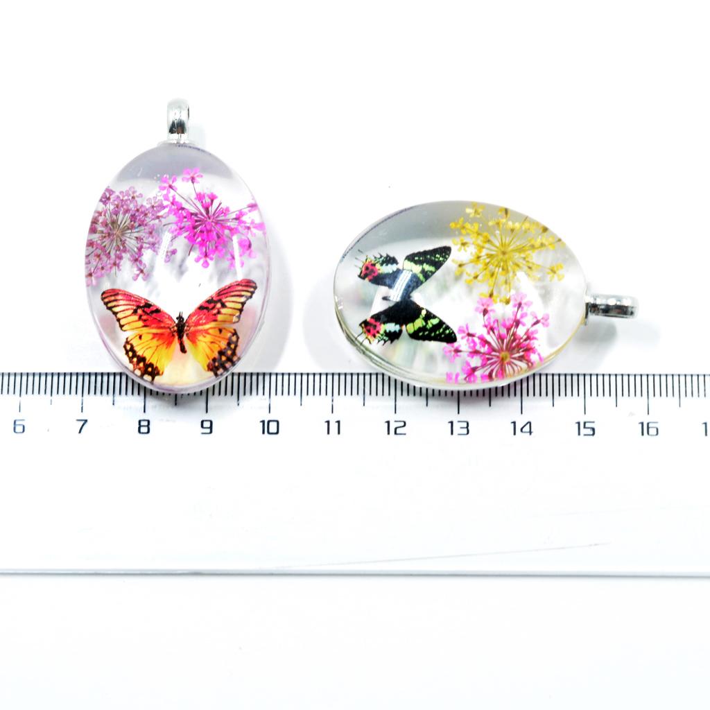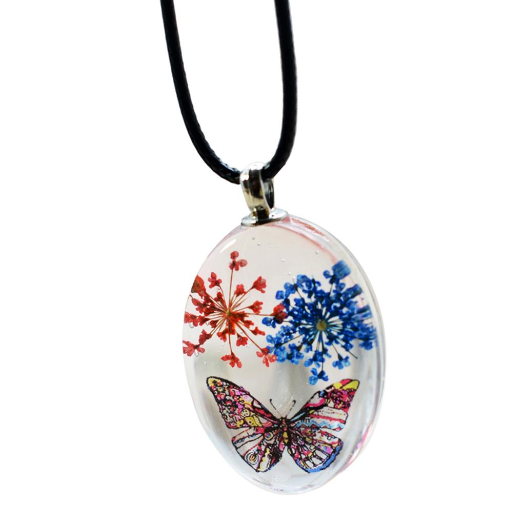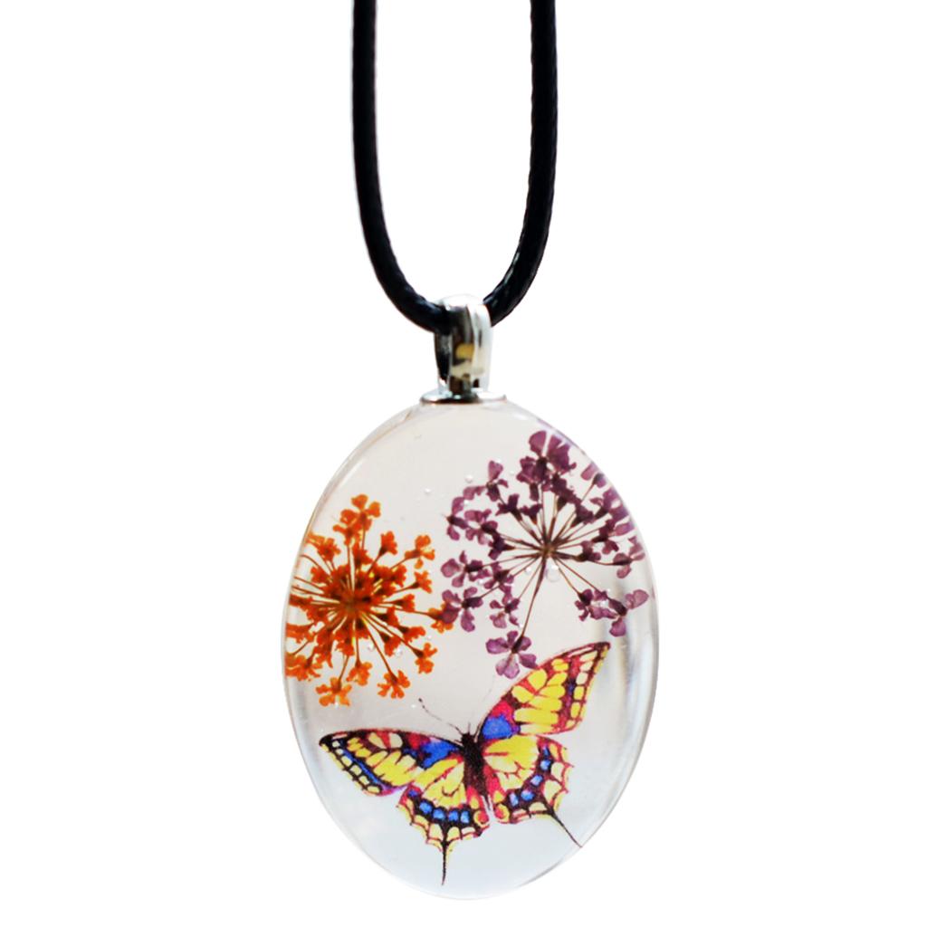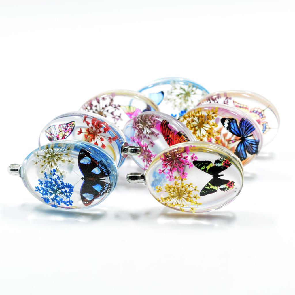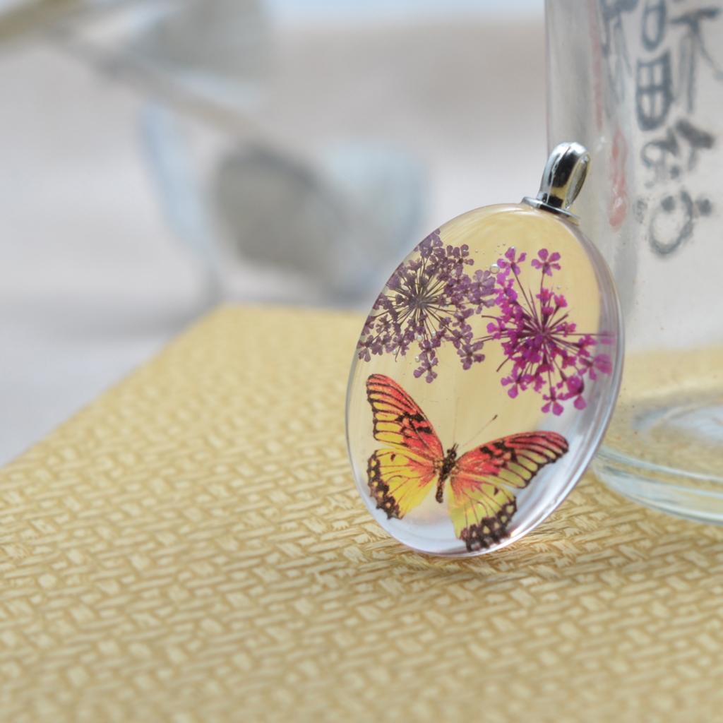 Unique transparent oval pendant featuring real dried flowers preserved in pendants