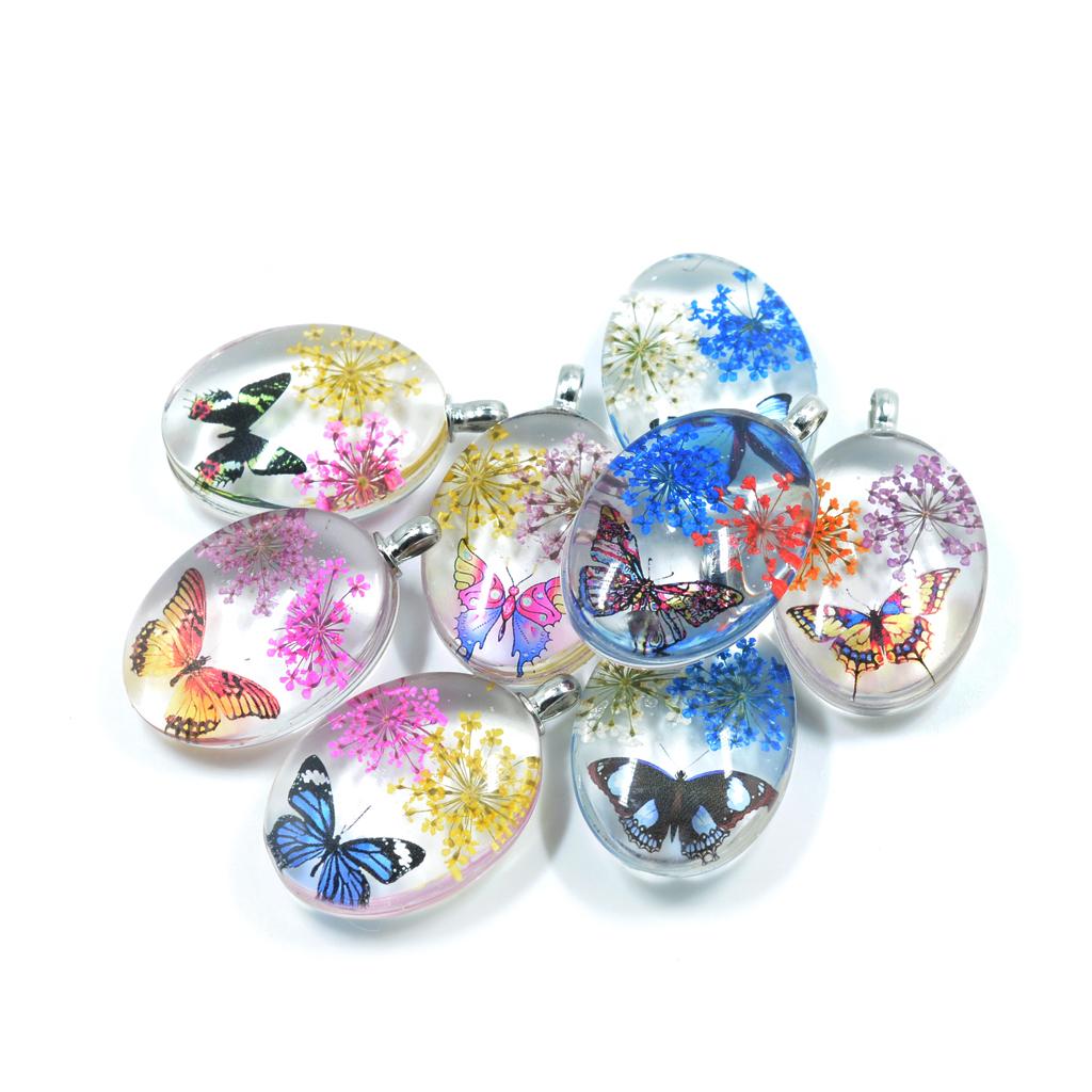 Oval Shape Glass Necklace Pendants With Dried Flowers Design Time Gem Jewelry Making Supply Clear