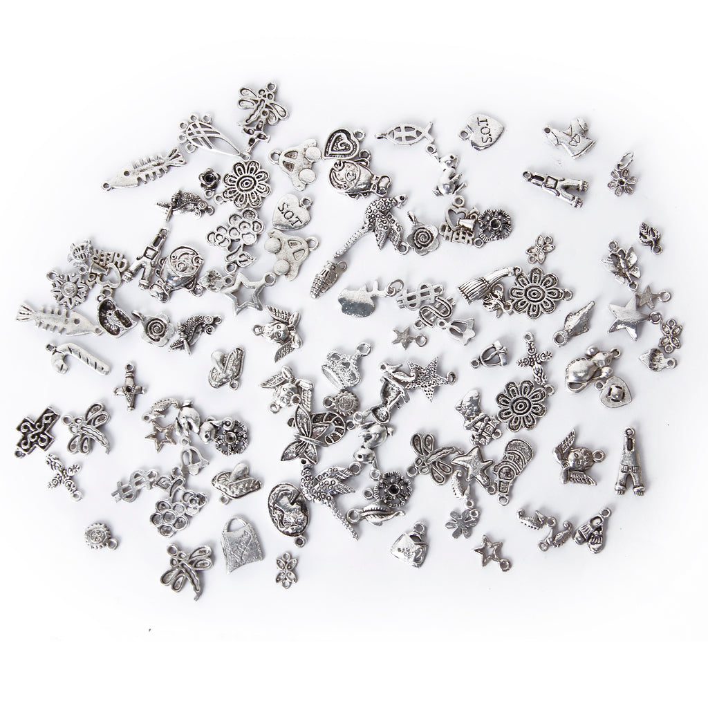 Pack 100 pcs Assorted Shape Alloy Pendant Charm