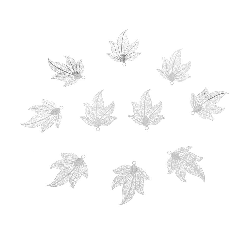 Pack of 10 Maple Leaf Shape Motif Jewelry Accessories for Decorations-Sliver