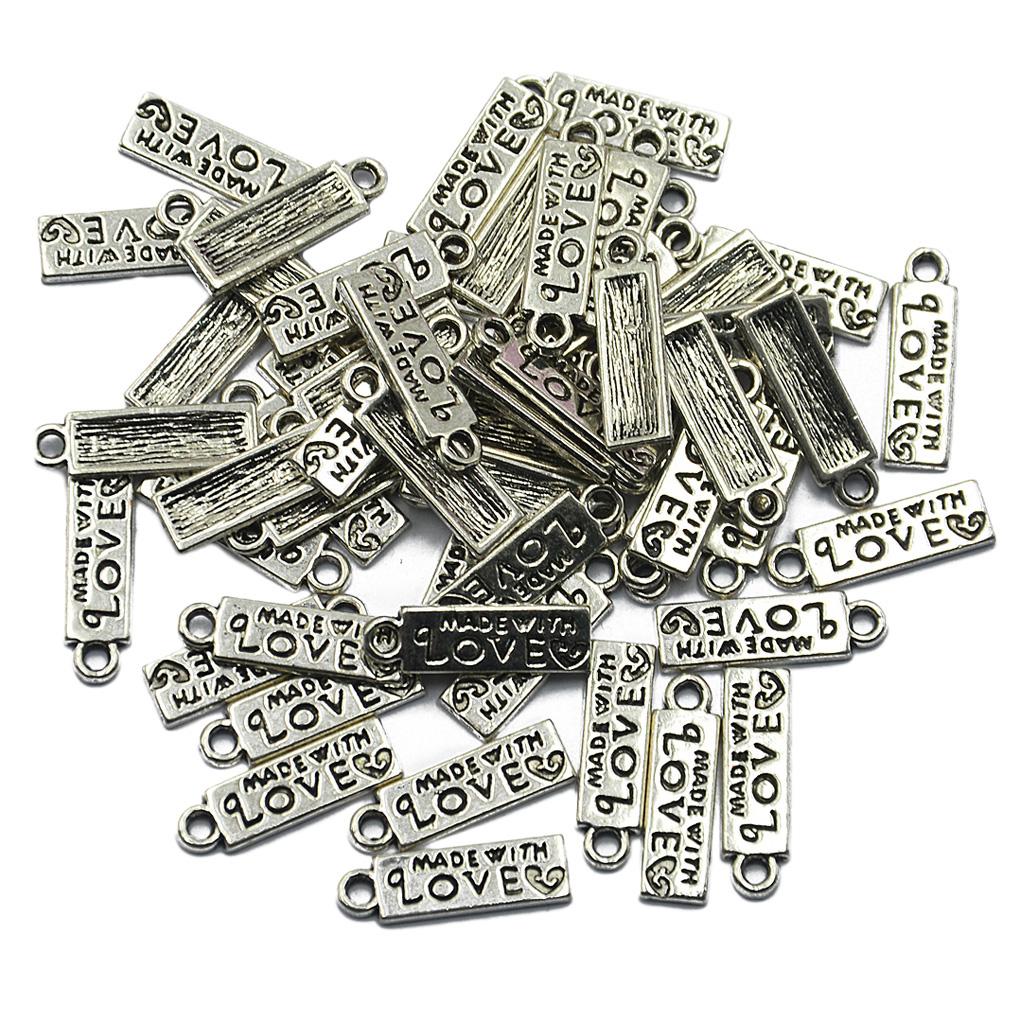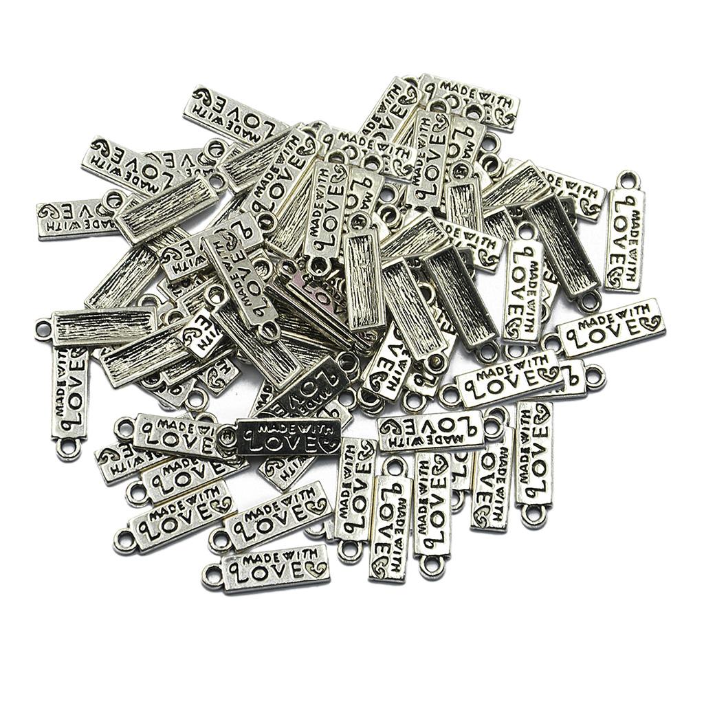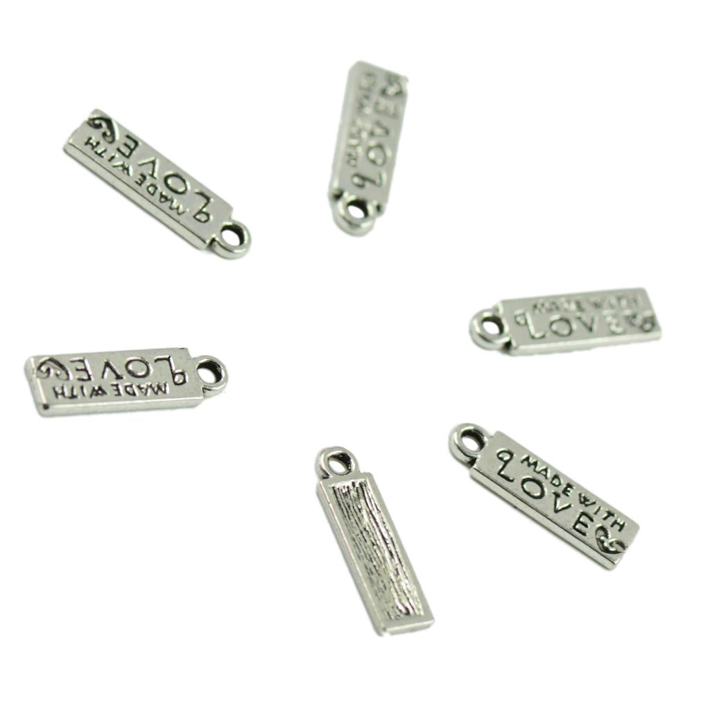 Antique Tibet Silver Alloy Rectangle “Made with love” and heart Jewelry Making charms pendant