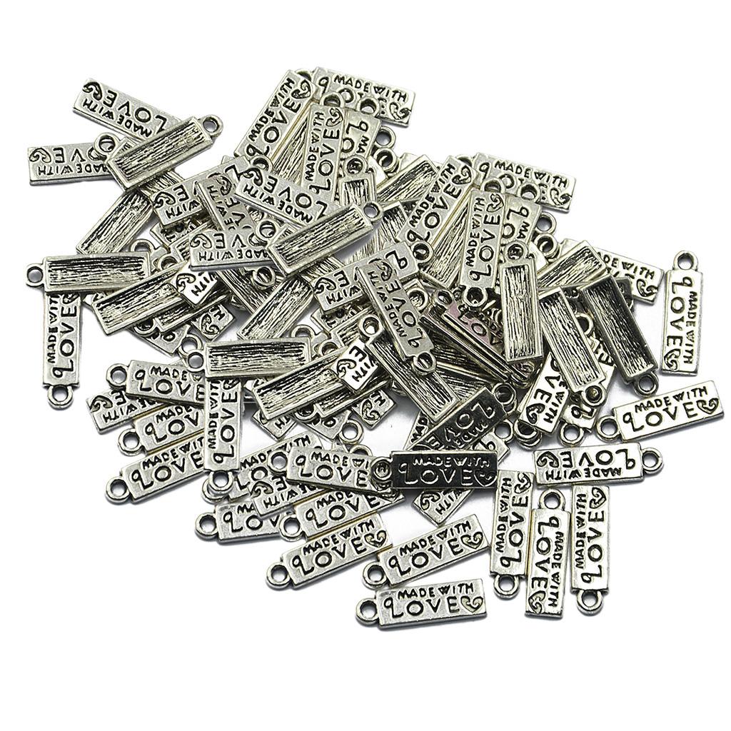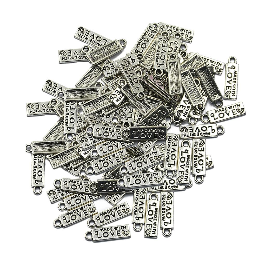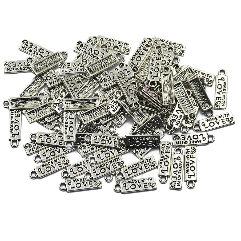 Antique Tibet Silver Alloy Rectangle “Made with love” and heart Jewelry Making charms pendant