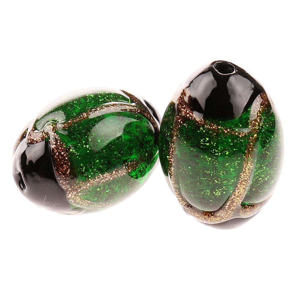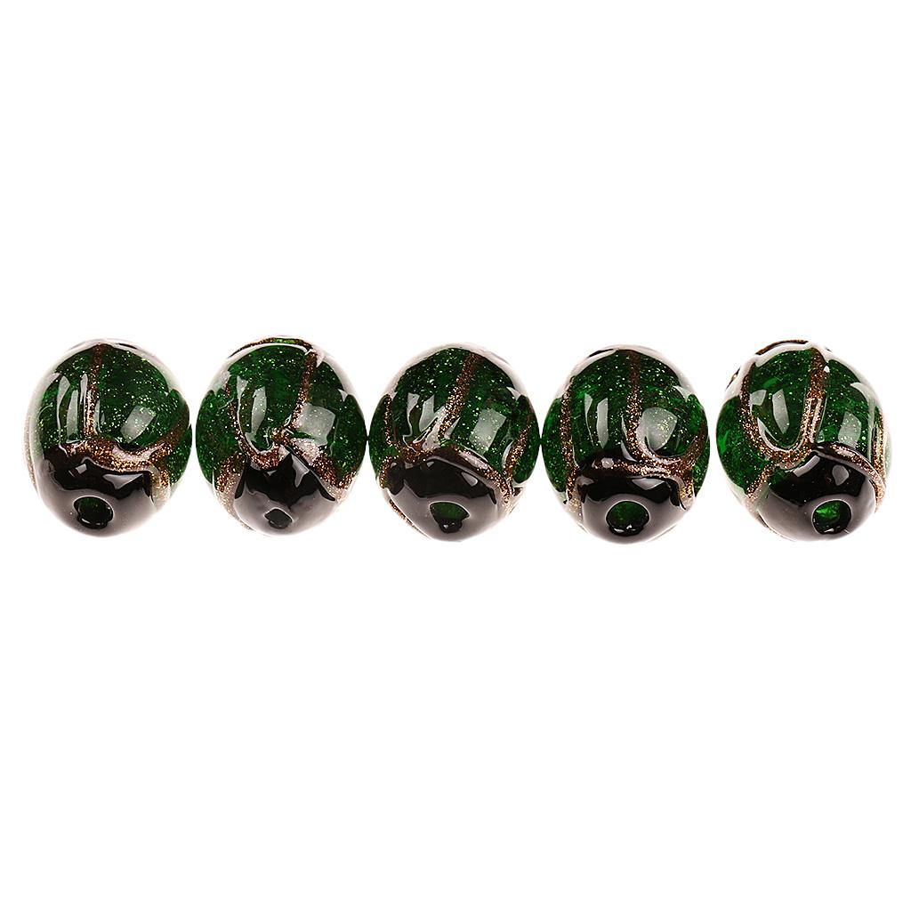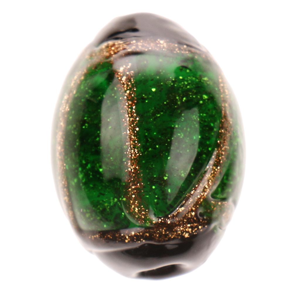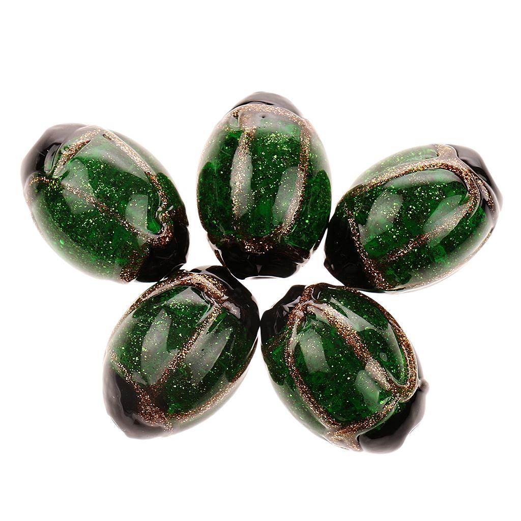 Phenovo 5 pcs Oval Handmade Lampwork Gold Sand Beads Jewelry Making-Green