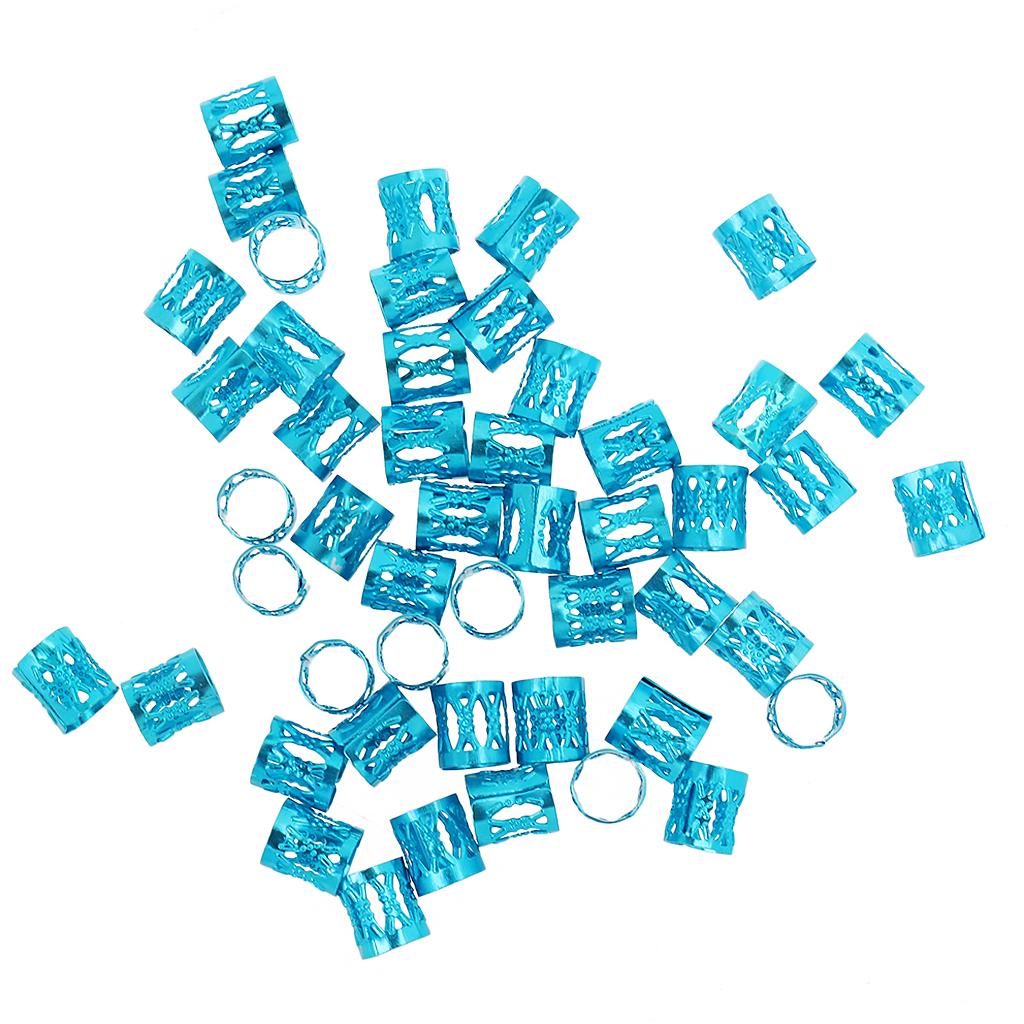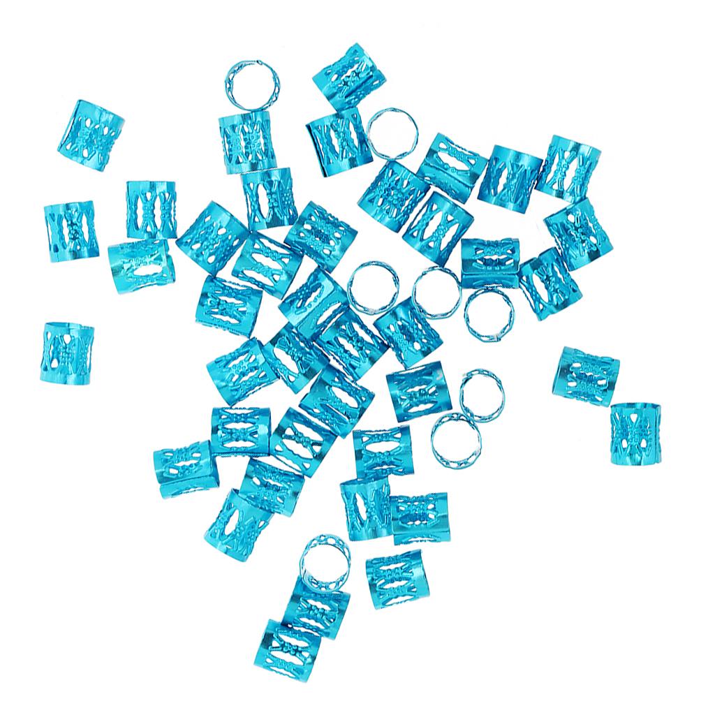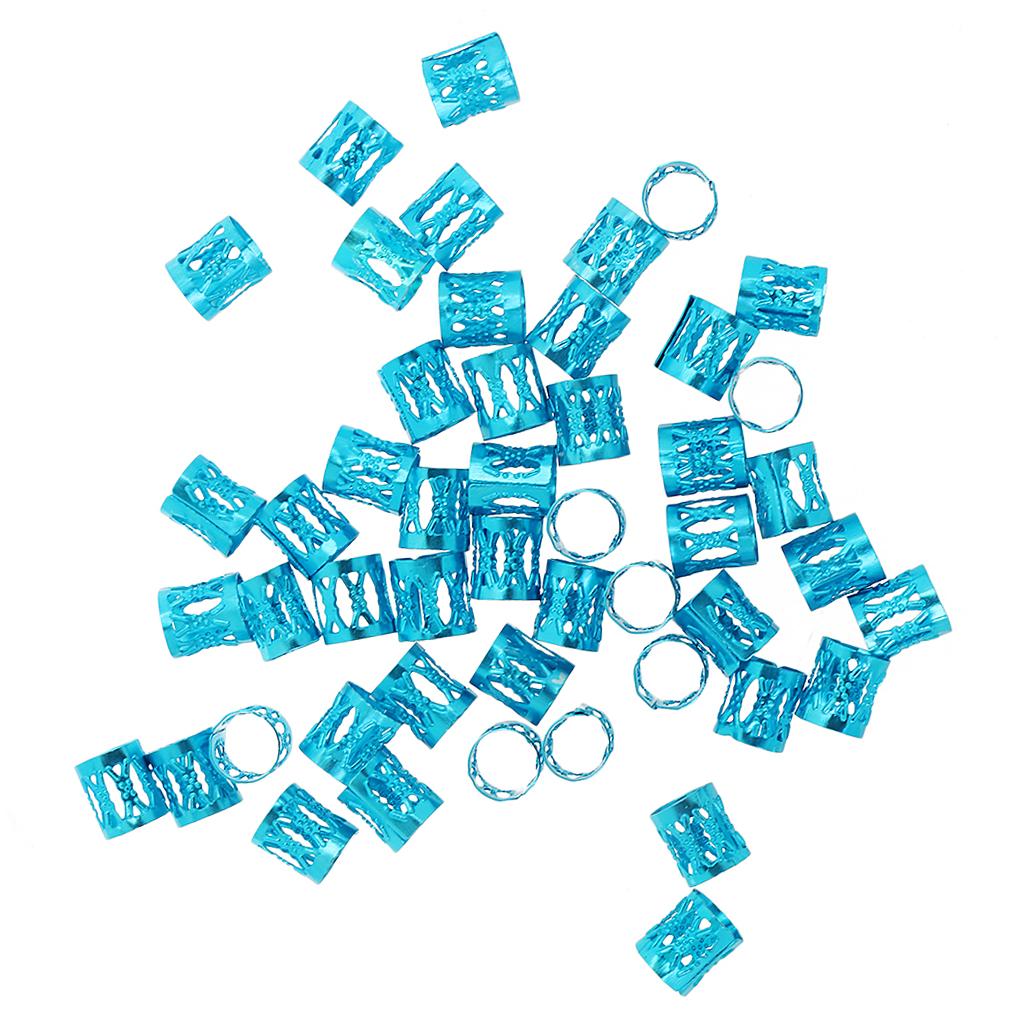 Phenovo 50pcs/Pack Hair Braid Cuff Adjustable Hair Dreadlock Beads Azure