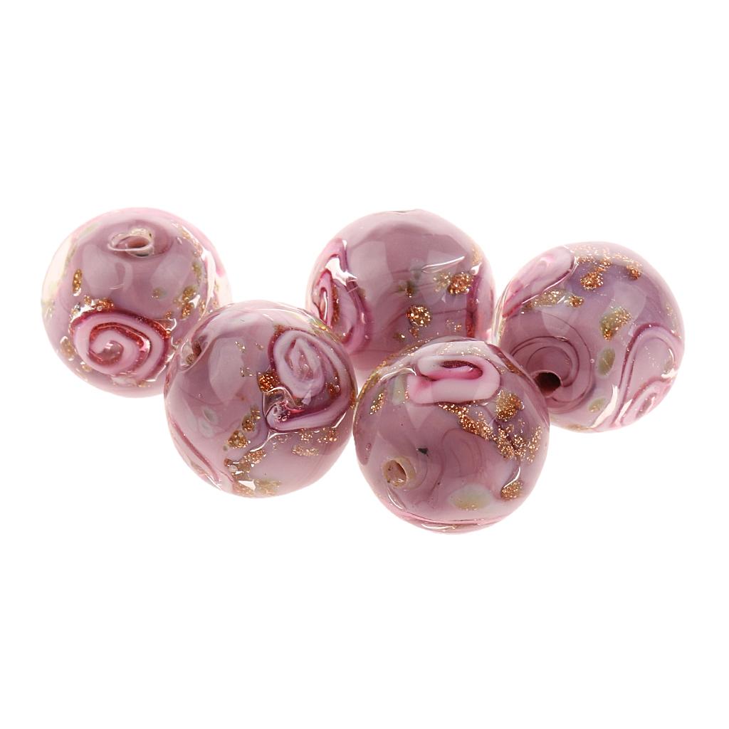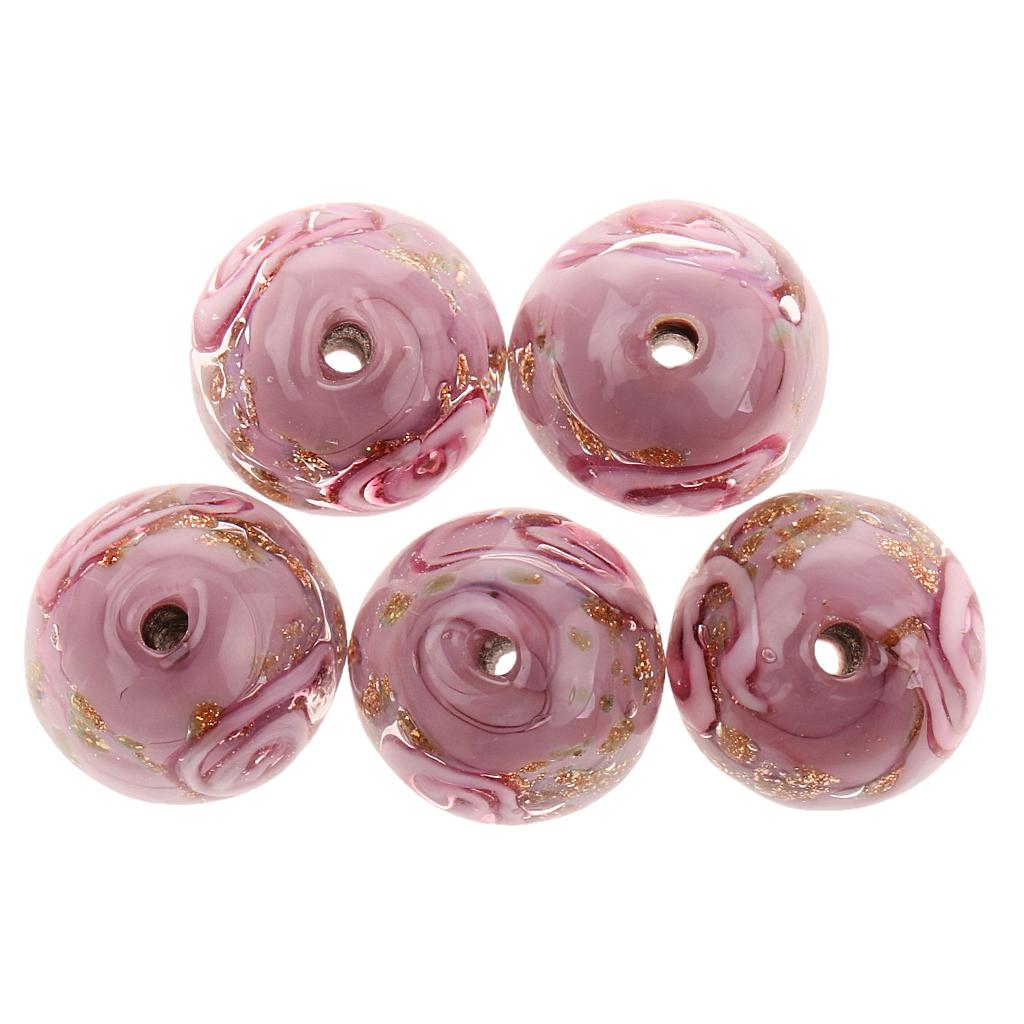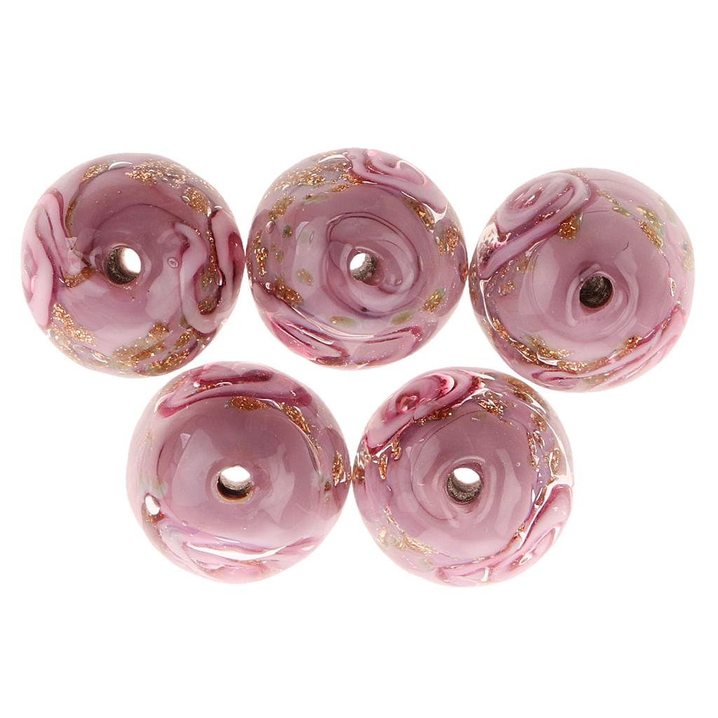 Phenovo 5x Flower Handmade Lampwork Gold Sand Beads Jewelry Making-Purple