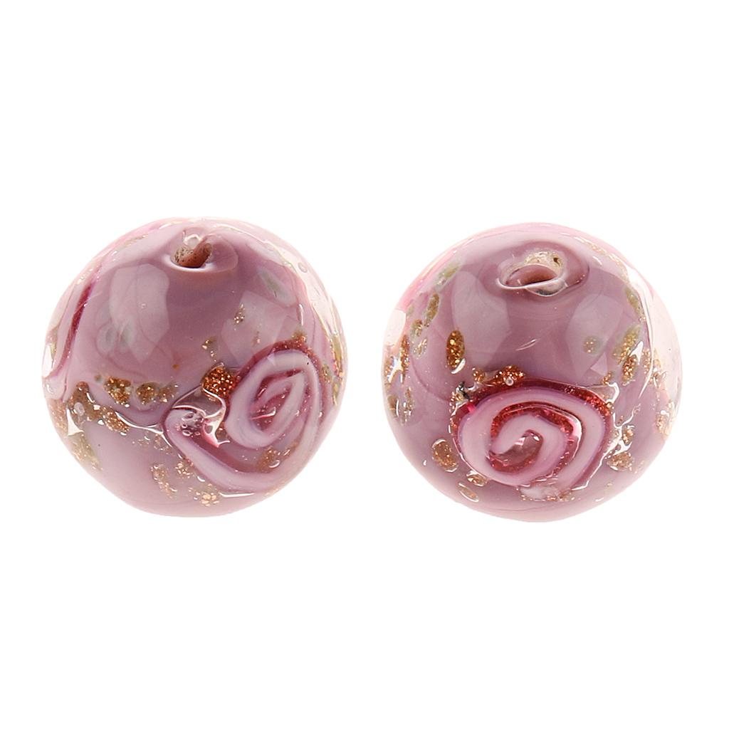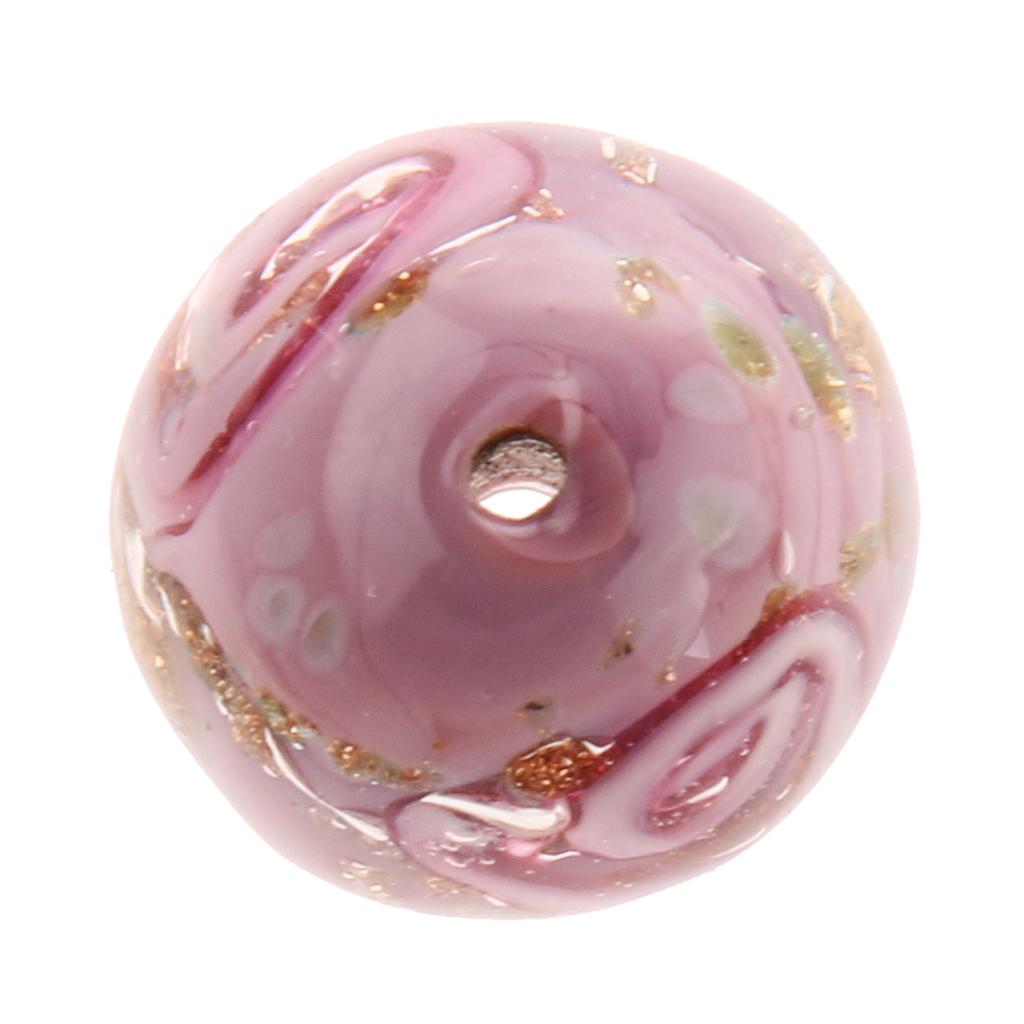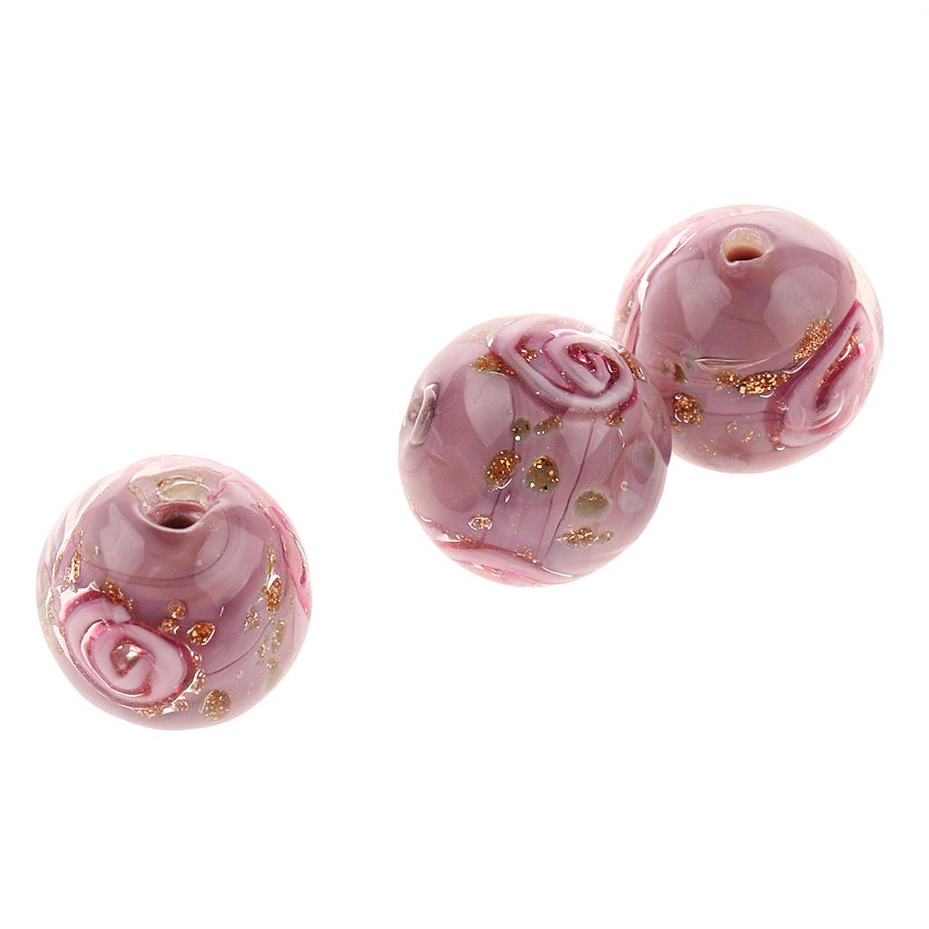 Phenovo 5x Flower Handmade Lampwork Gold Sand Beads Jewelry Making-Purple