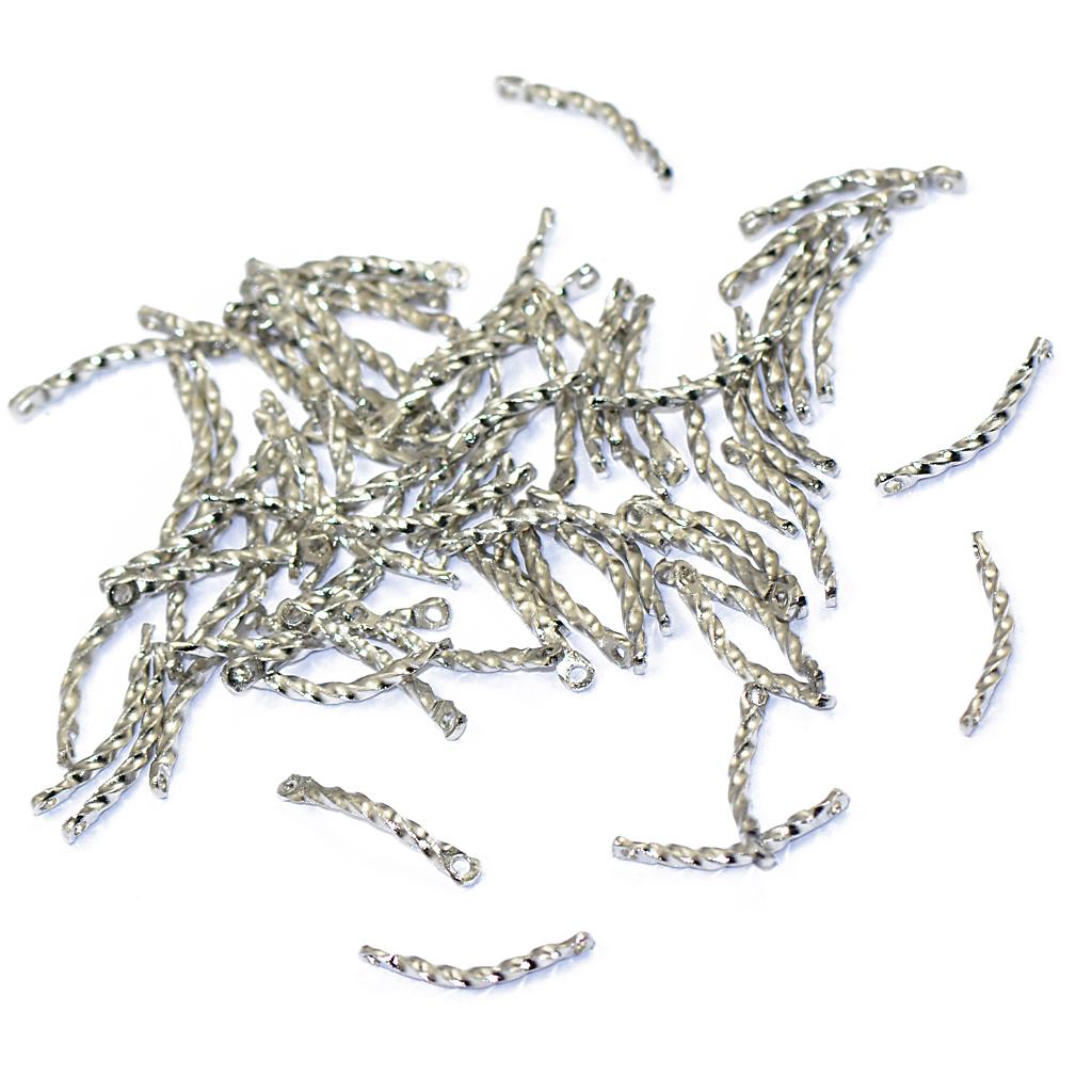 Silver Brass Curved Twist Bar Connector Jewelry Making Findings 100 pcs
