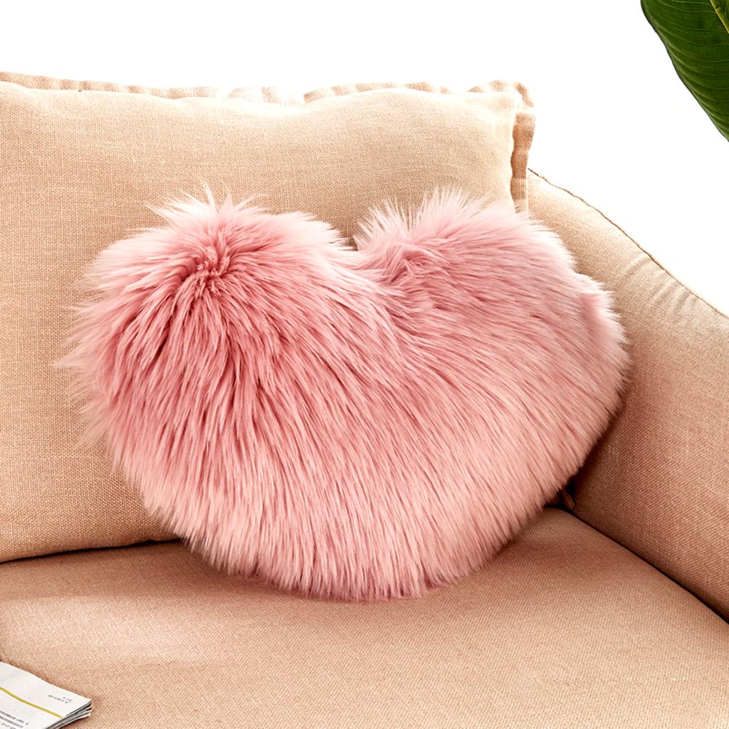 Artificial Wool Soft Plush Sofa Pillow Case Cushion Cover Light Pink