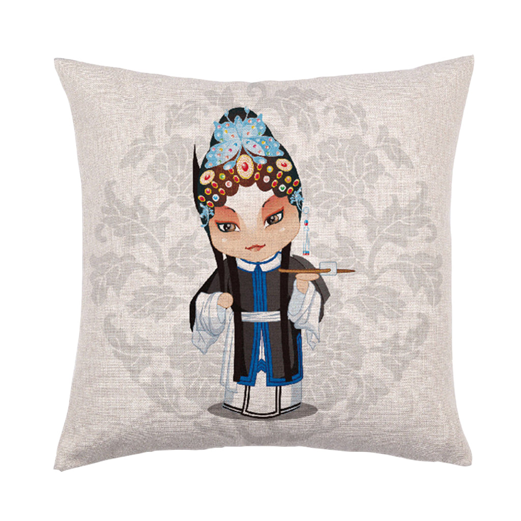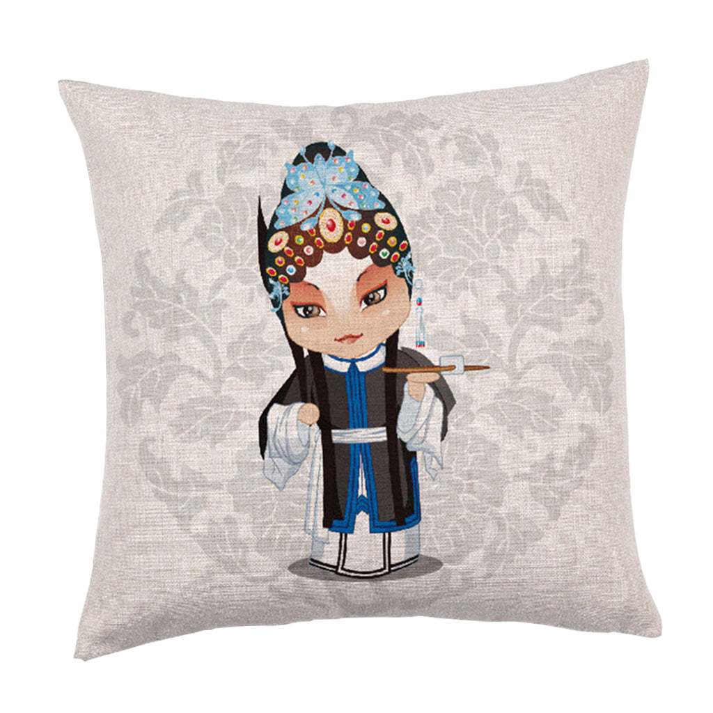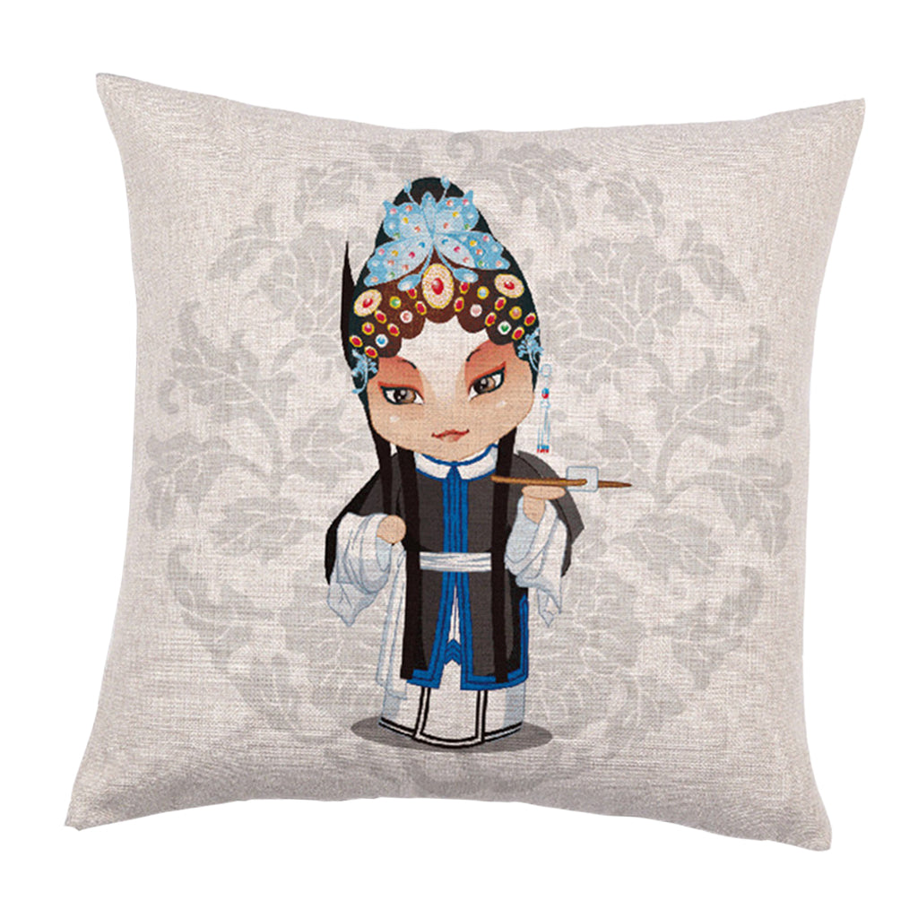 Chinese Wind Square Cushion Cover Pillowcase Linen Sofa Seat Cover Decor B
