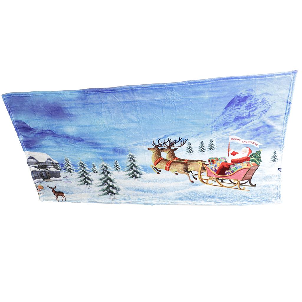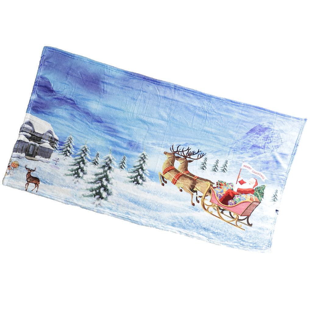 Christmas Blanket Double Fleece w/ Xmas Print Soft Warm Sofa Throw Blanket 3#